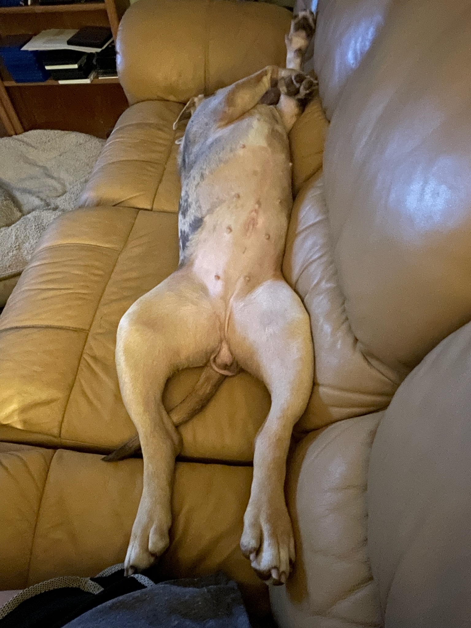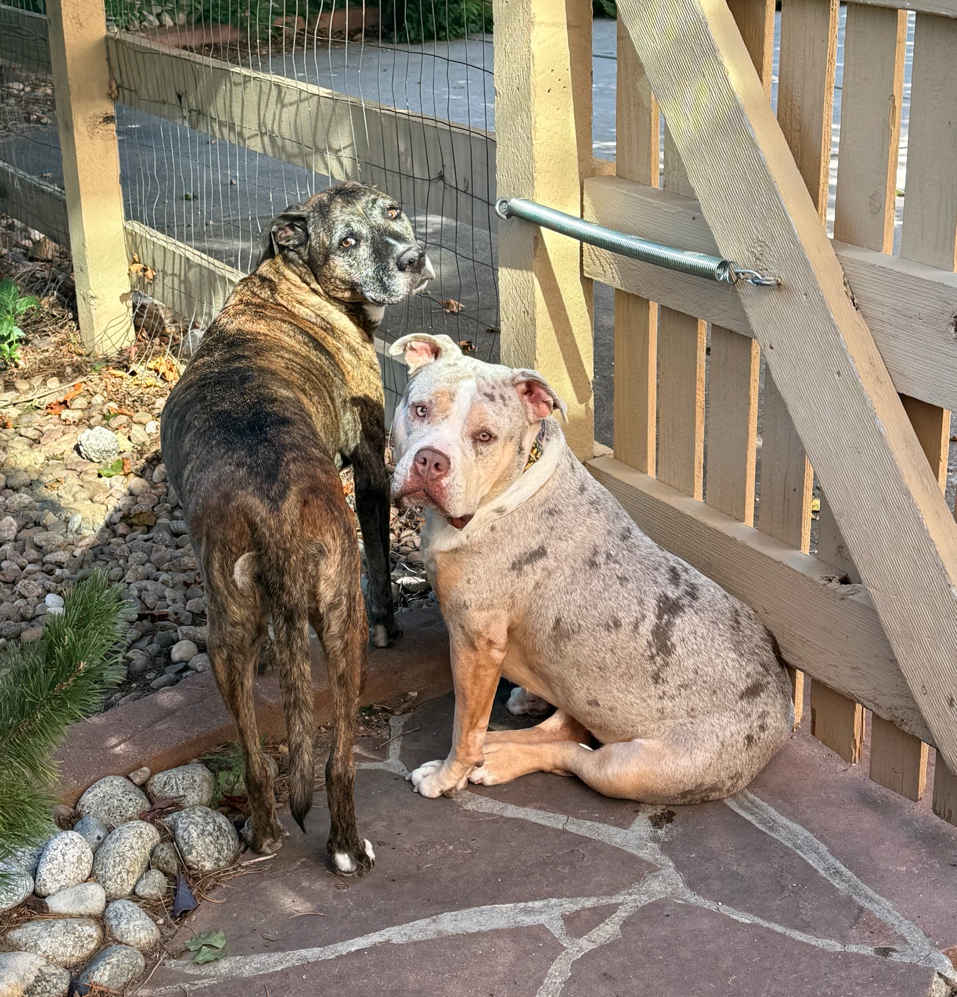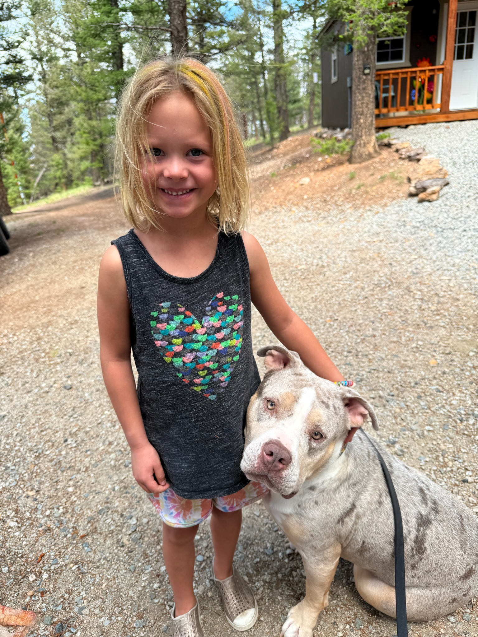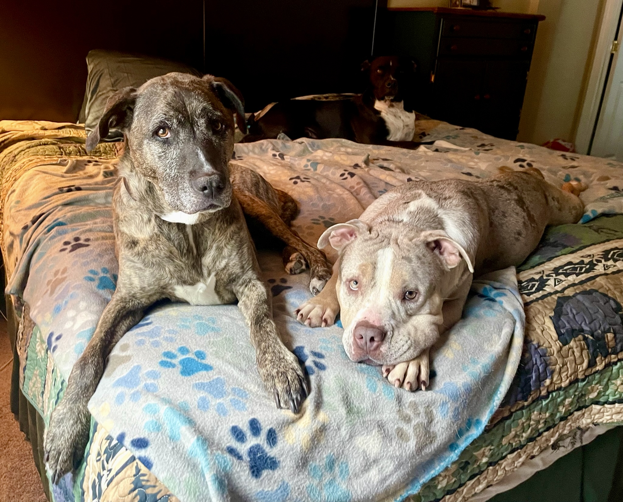 Alex is a 2 year old, female, pittie mix! She’s short and stout weighing in around 55 lbs. Alex had a long list of things she loves: water, car rides, hikes, attention, sunbathing, stuffed animals, and dog friends! She loves to play but she isn’t a high energy girl. She knows how to chill and cuddle for a nap sesh, too. Alex is house and crate trained, walks well on a leash, and is trustworthy free roam at her foster home. She can be a bit shy when meeting new people but she warms up and becomes social and affectionate. Alex is a little piggie and will need humans that can carefully monitor her calorie intake — she had a TPLO surgery and gained some lbs right under our noses! Alex is low heartworm positive and has had treatment. She is due for a retest in approx 6 months.