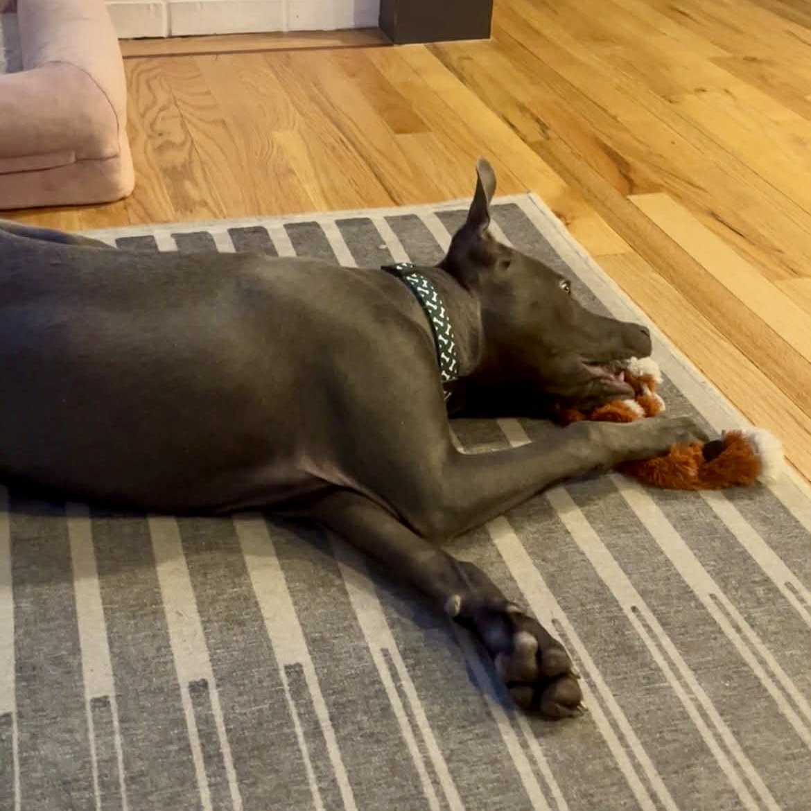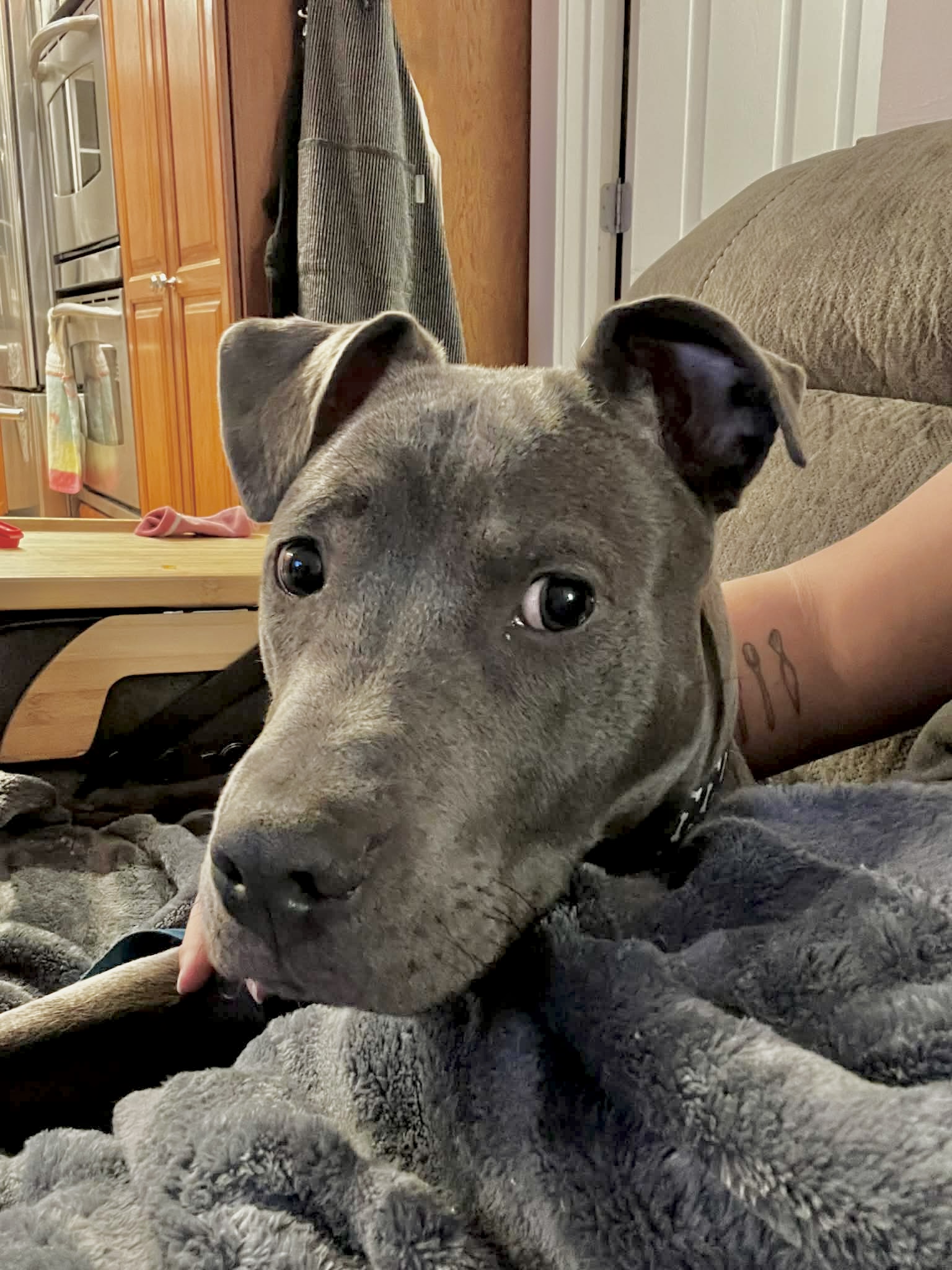 When it comes to manners, Ash is doing great! He does well in a crate and appears to be potty trained, as he hasn’t had any accidents indoors. He’s working on his leash manners, knows how to sit, and is trying to understand how fetch works. He’s eager to please and continues to learn every day.