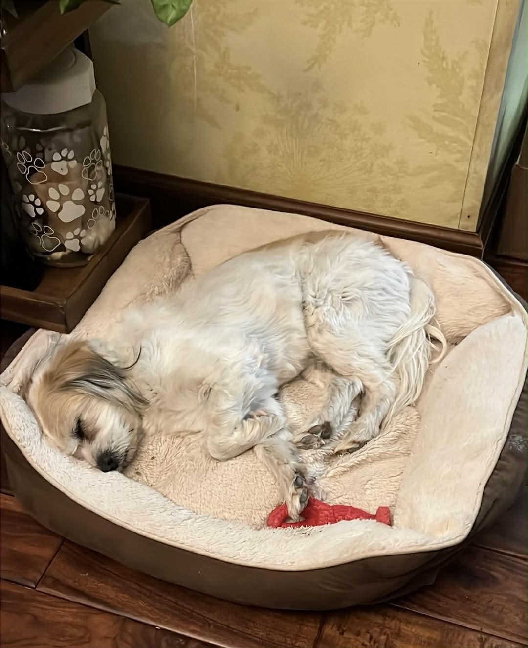 Meet Baylee, a 6-year-old “distinguished gentleman” who has officially retired from the hustle and bustle of puppyhood to pursue a full-time career in Professional Napping. Baylee is a fluffy, 20-pounds, cloud of maturity who believes that life is best lived at a pace of approximately two miles per hour—unless there’s a sunny patch on the carpet, in which case, the speed limit is zero.