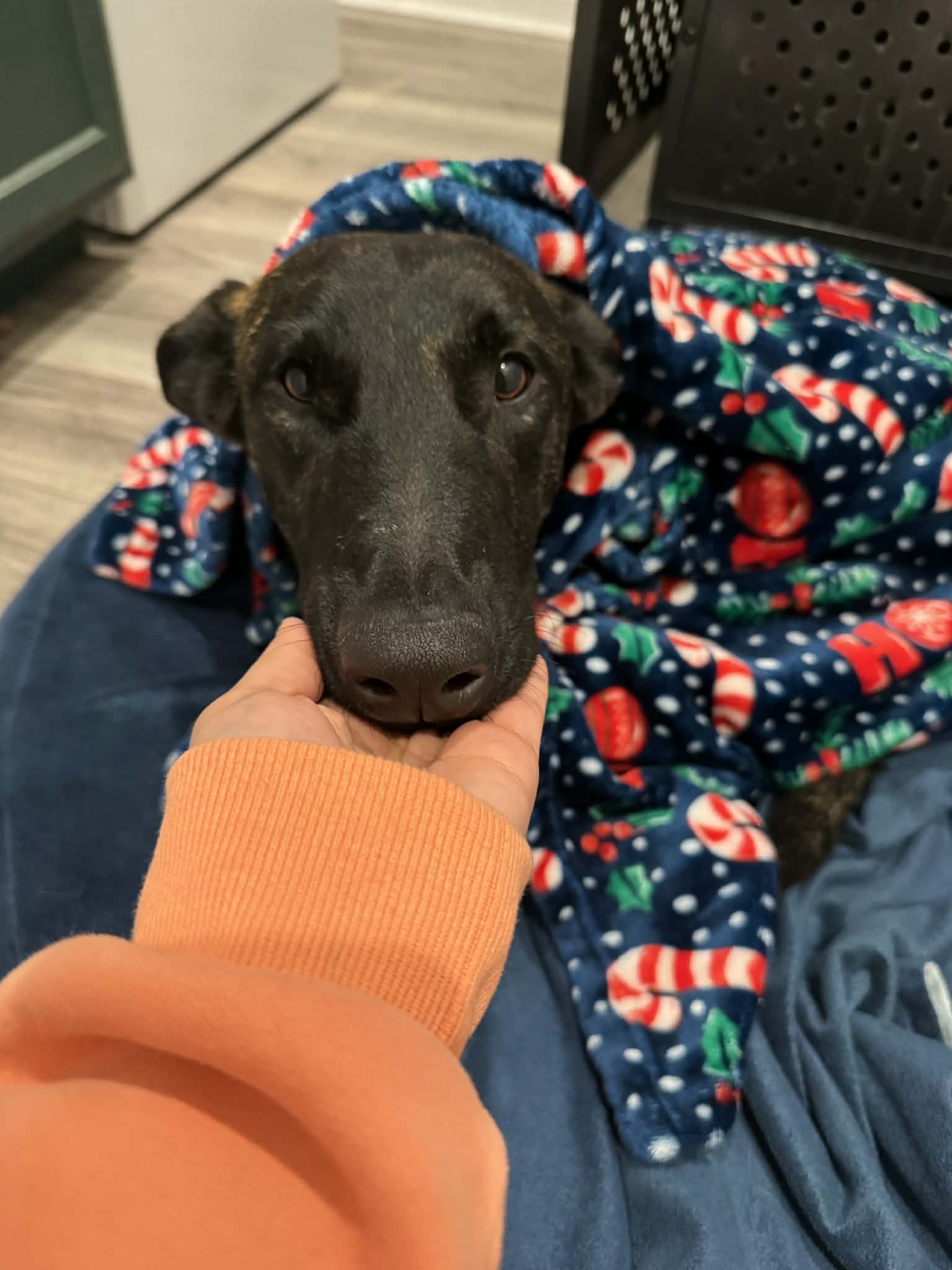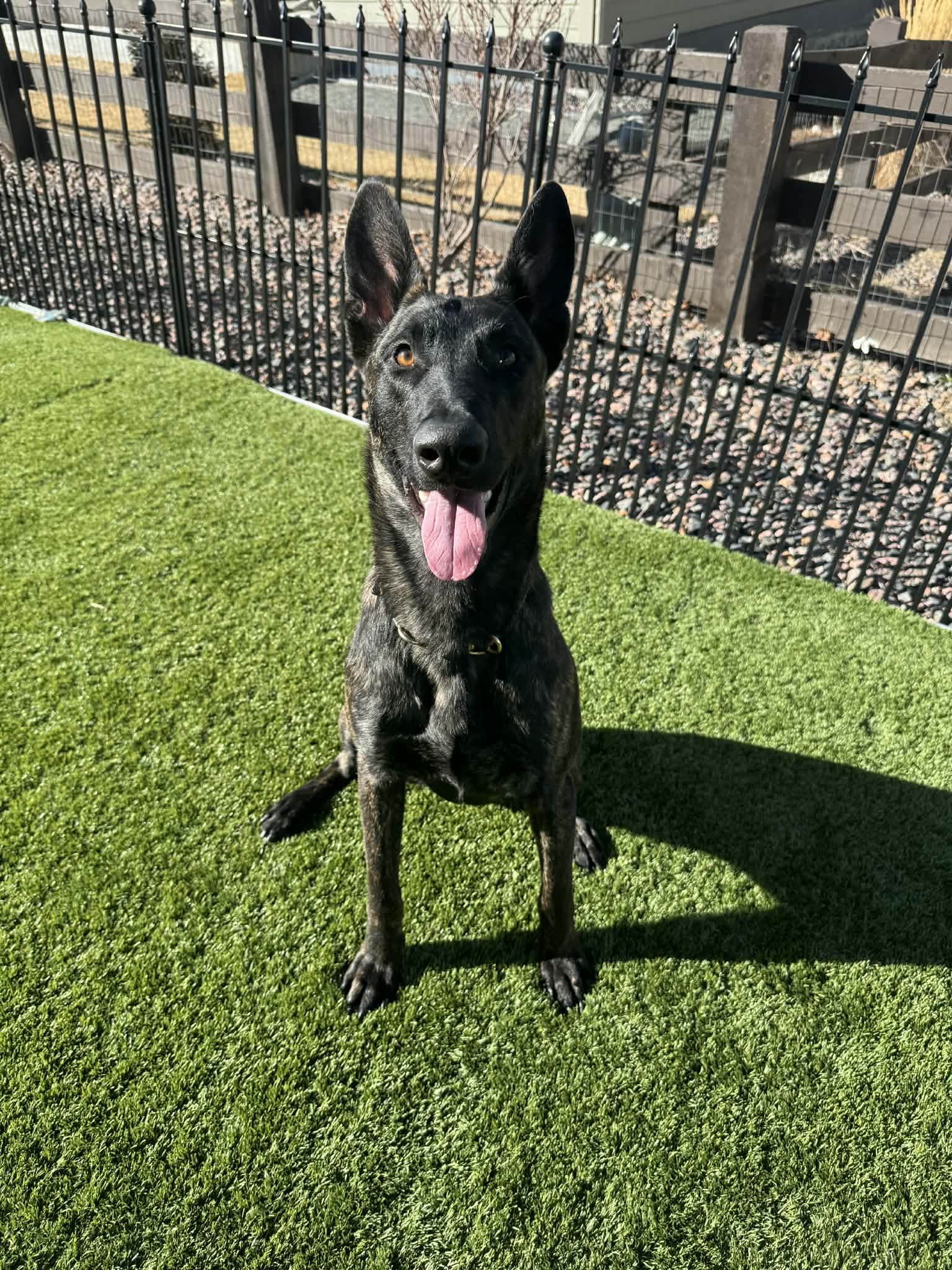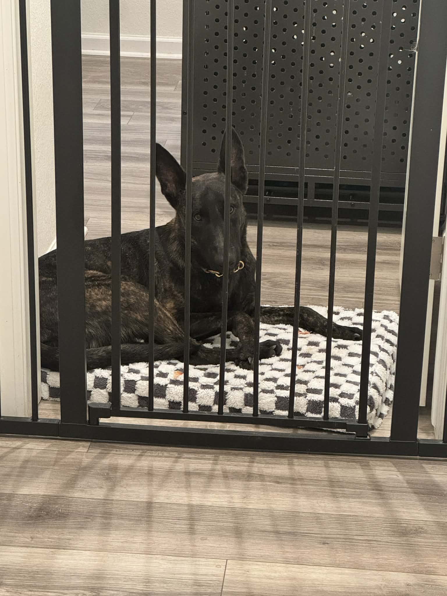 This stunning, 55-lbs, brindle beauty is a 1–2 year old Dutch Shepherd with a heart as big as her ears are alert. She’s the definition of a Velcro dog — if you’ve ever wanted a loyal sidekick who thinks you’re the best thing that’s ever happened to Earth… congratulations, you’ve met your girl.
