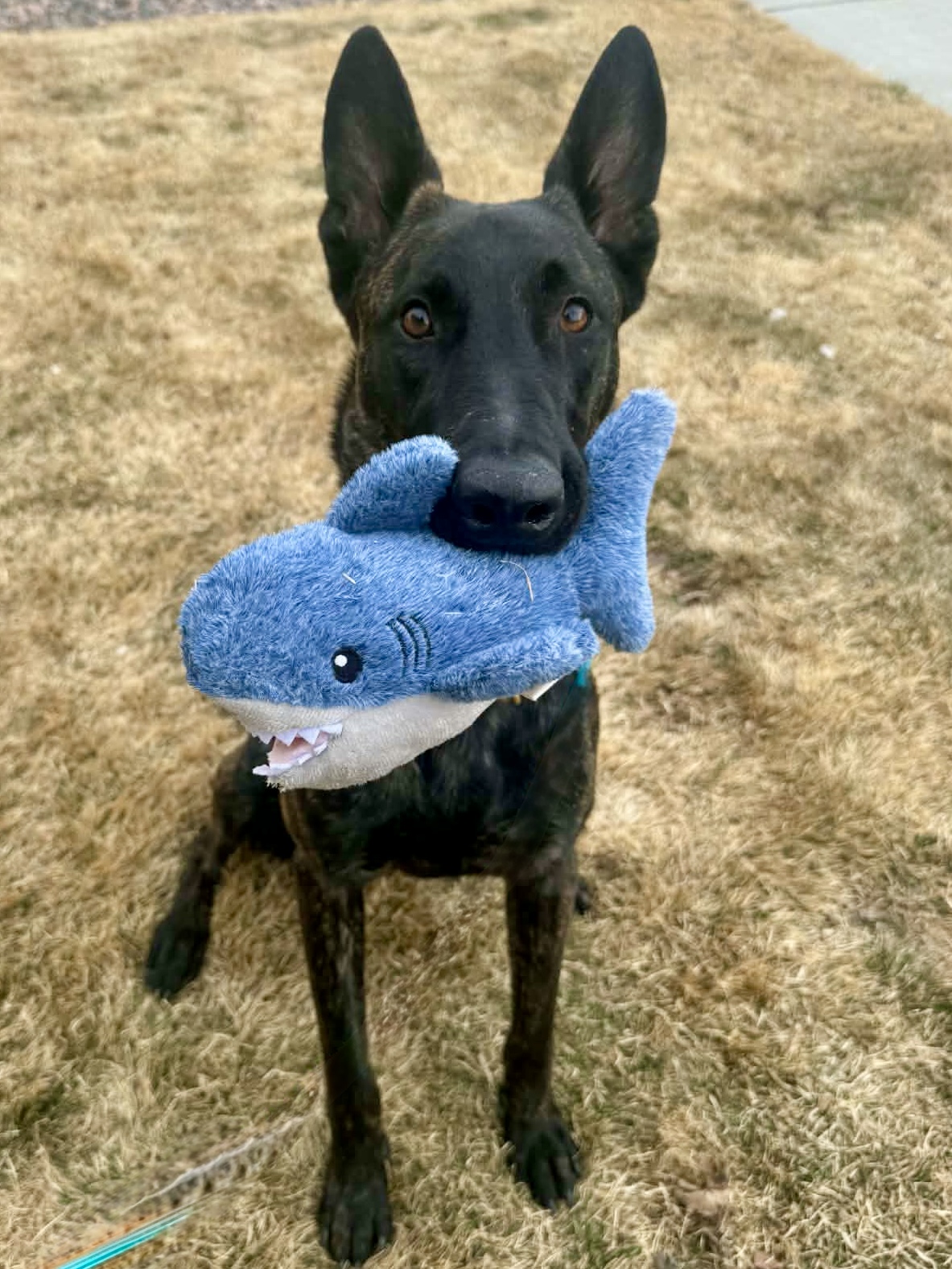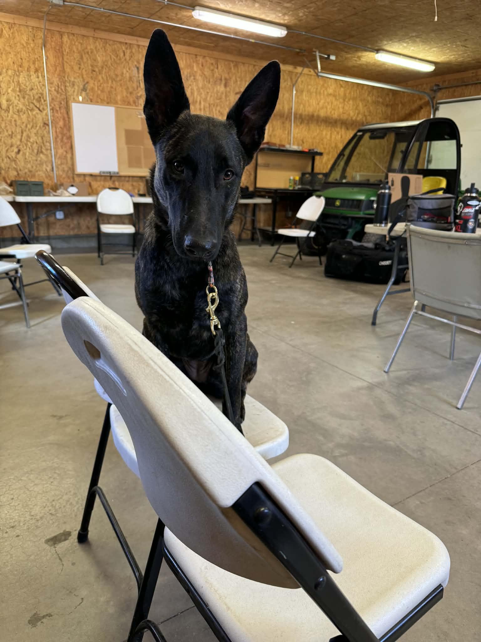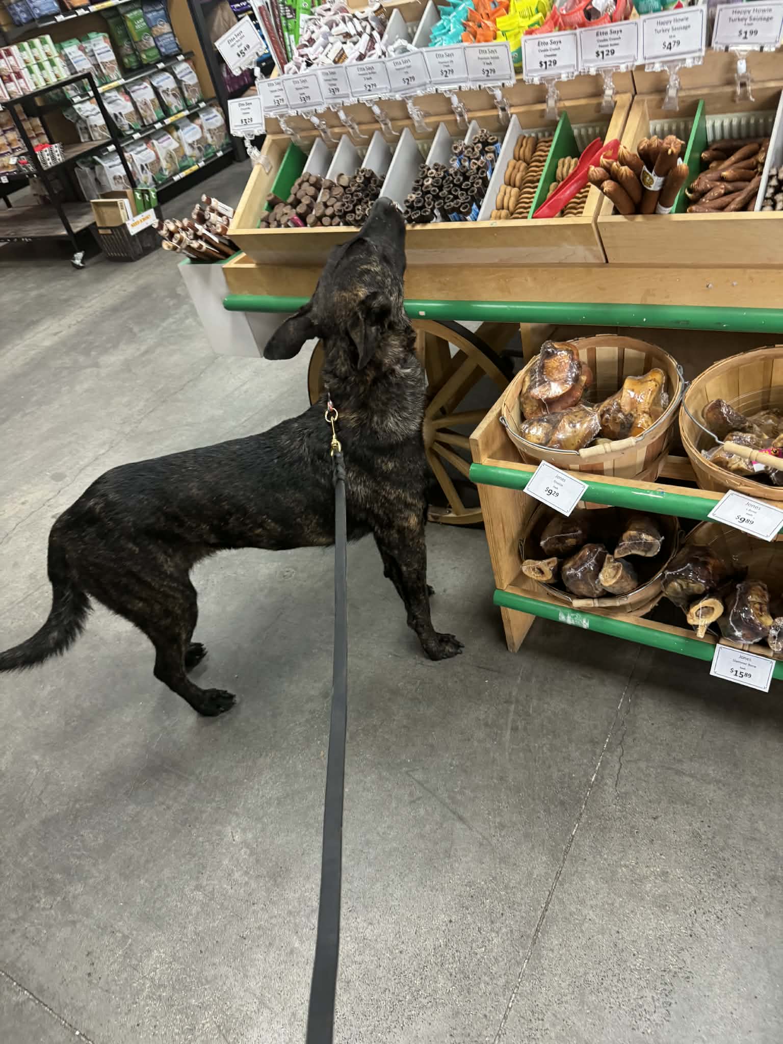 This stunning, 55-lbs, brindle beauty is a 1–2 year old Dutch Shepherd with a heart as big as her ears are alert. She’s the definition of a Velcro dog — if you’ve ever wanted a loyal sidekick who thinks you’re the best thing that’s ever happened to Earth… congratulations, you’ve met your girl.