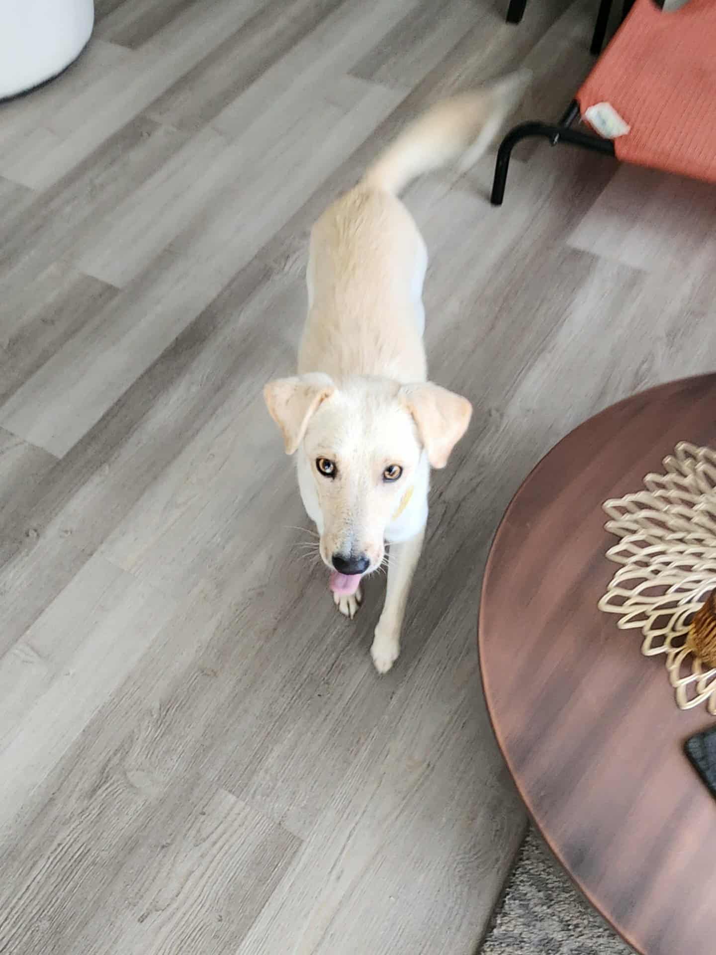 Candace is a 3 year old, petite girl that weighs right at 25 lbs on the dot! She came to MHCR from a very crowded, underfunded shelter in Texas. Candace didn’t come with puppies but it was clear she had recently been a mama. She’s a soulful girl and you can tell she really wants to make a connection with people. She is affectionate, quiet, and medium energy. Candace enjoys being outside and taking walks. She’s fine with dogs but doesn’t need one in her home, humans are more her game. Candace seems house-trained in her foster home and doesn’t love the crate but will use it.