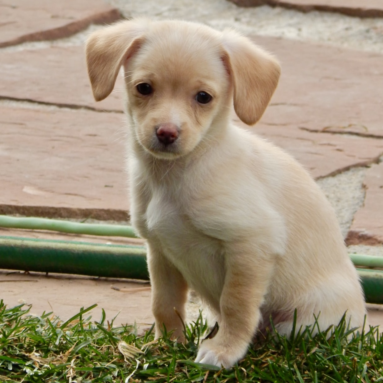 The Chihuahua genes run strong in Sweet Caroline! This darling little girl will be 8 weeks old soon and ready to go home after 12/3. She can be a teensy weensy bit shy at first, but quickly warms up and loves the company of other dogs. She and her littermates entered the system at only a week or two old as part of a hoarding case. They were transferred to a rescue and were hand raised until 6 weeks of age, at which point they joined MHCR.