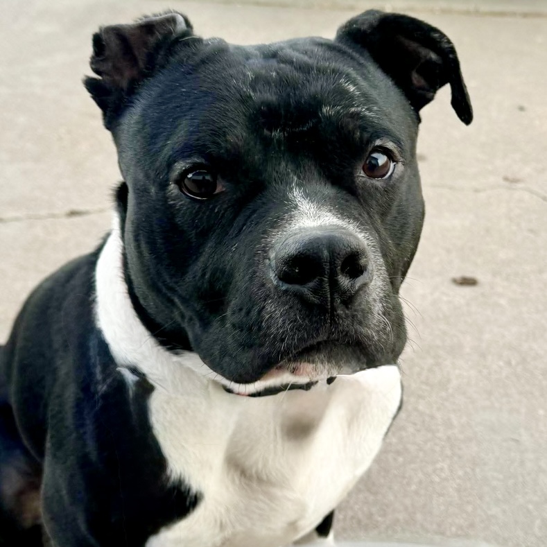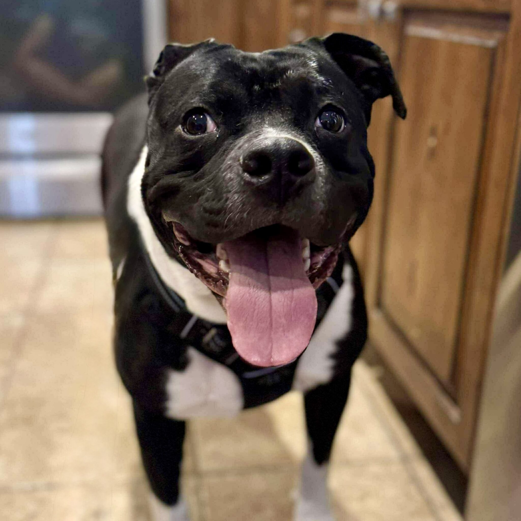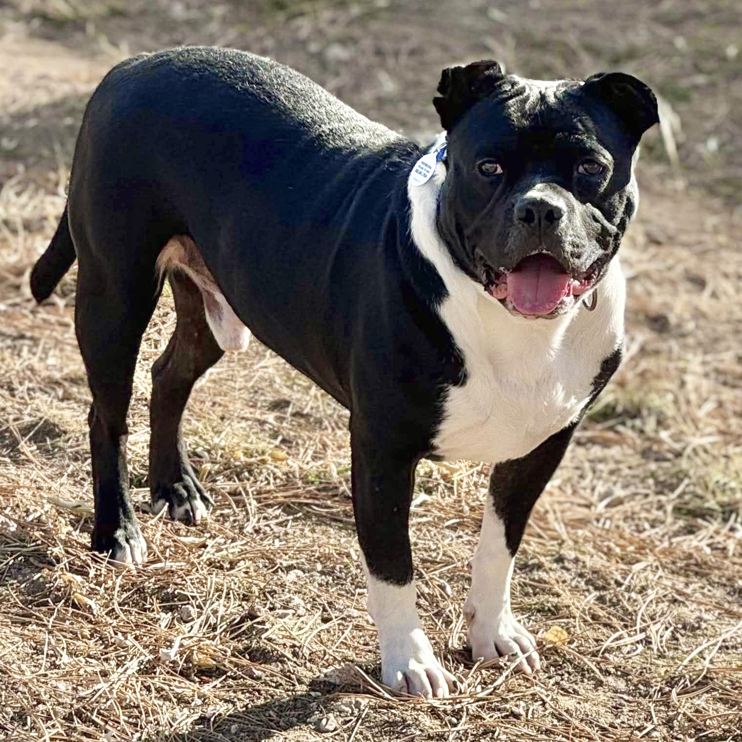 Chunk is a 60 lbs, 5 year old bully mix that joined MHCR in September of 2024. He’s short in stature, big in personality, and commits to his humans for life. Chunk made a canine buddy while in foster care and they spent over a year together before she was recently adopted. Now he is alone. Chunk LOVED playing with her. Their acclimation was slow and steady overtime, though. That’s the way Chunk likes it. He isn’t a kiss on the first date kind of guy; more like the 100th. As such, he’s looking for a cat and canine free home with hermit-ish humans. Walks make him act a fool, car rides aren’t his jam; he wants homebody humans looking for a loyal, silly, companion. Oh! They must also have a crate for him, it’s his safe space. Chunk is a very sweet, loving, extroverted boy with people, and especially when snacks are involved. He’s very chill, low maintenance, and quiet when he settles into a place and understands there are no ongoing threats lurking about. He likes limited play time but mostly is low energy and likes multiple daily naps, snuggles, and sunbathing. He sleeps through the night and is crate and housetrained. He likes baths and is a gentleman in the tub. He lets his little human foster sisters dress him up. He has not been aggressive with people in any manner, even for veterinary visits and ‘scary’ 🙄 nail trims. He’s physically healthy and Iikes to keep his teeth clean with dental chews and sticks. His personality, quirks, and uniqueness know no bounds, and to know him is to know a little splash of comedy and resilience related to enjoying life after darkness. He’s a cute low rider clunker blockhead tank and class clown. Chunk is a constant reminder that saving one dog doesn’t change the world, but it does change the world for that dog.