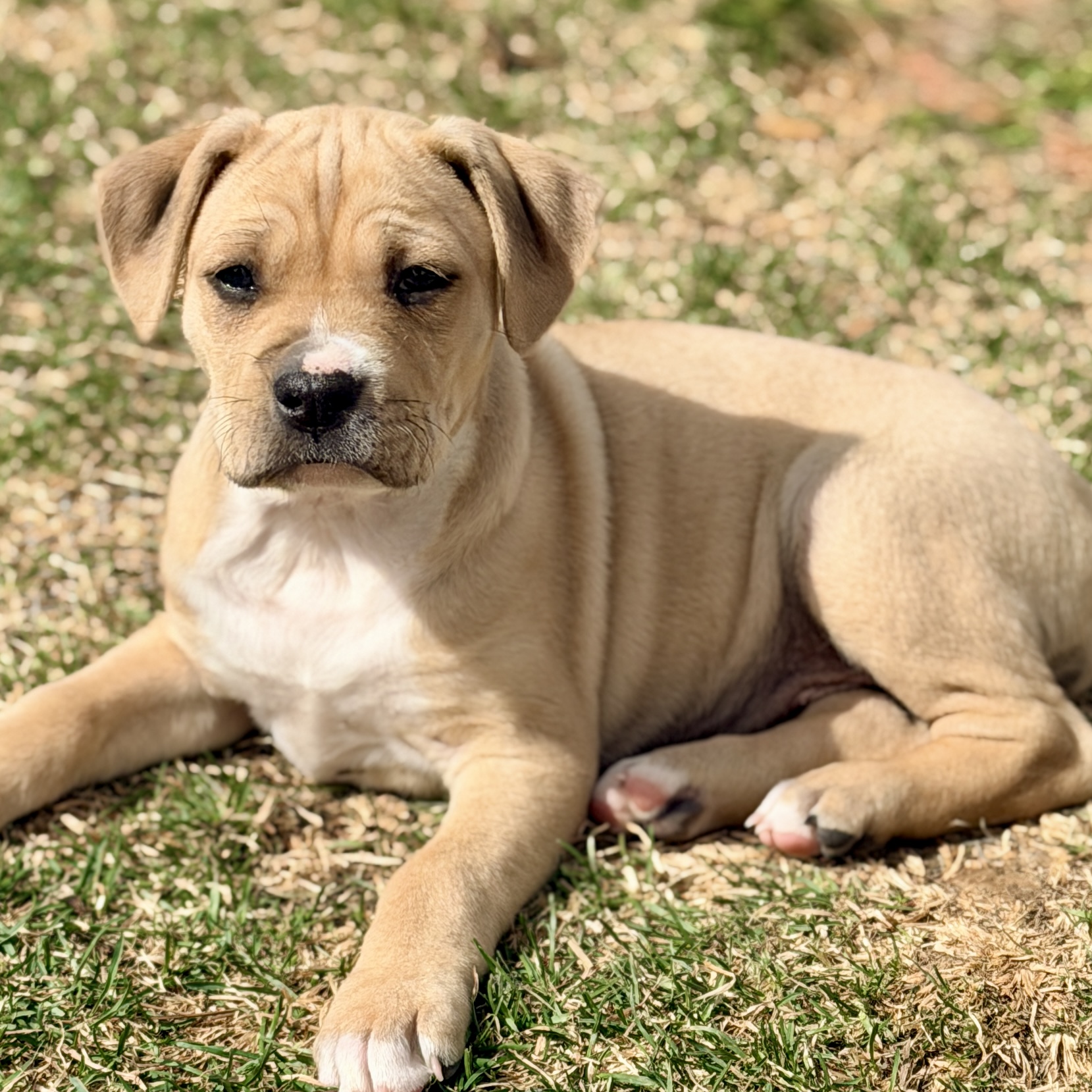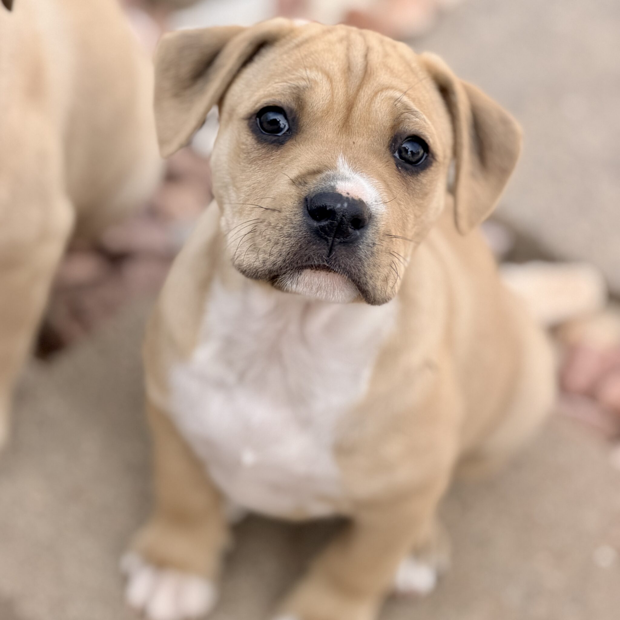 Citrine is one tough cookie being raised with 3 chunky brothers. She’s around 8 weeks old and her mom is a 40 lbs lab mix. Citrine is friendly and social with people and does well with other dogs. She’s confident and inquisitive and will bond easily with her new family.