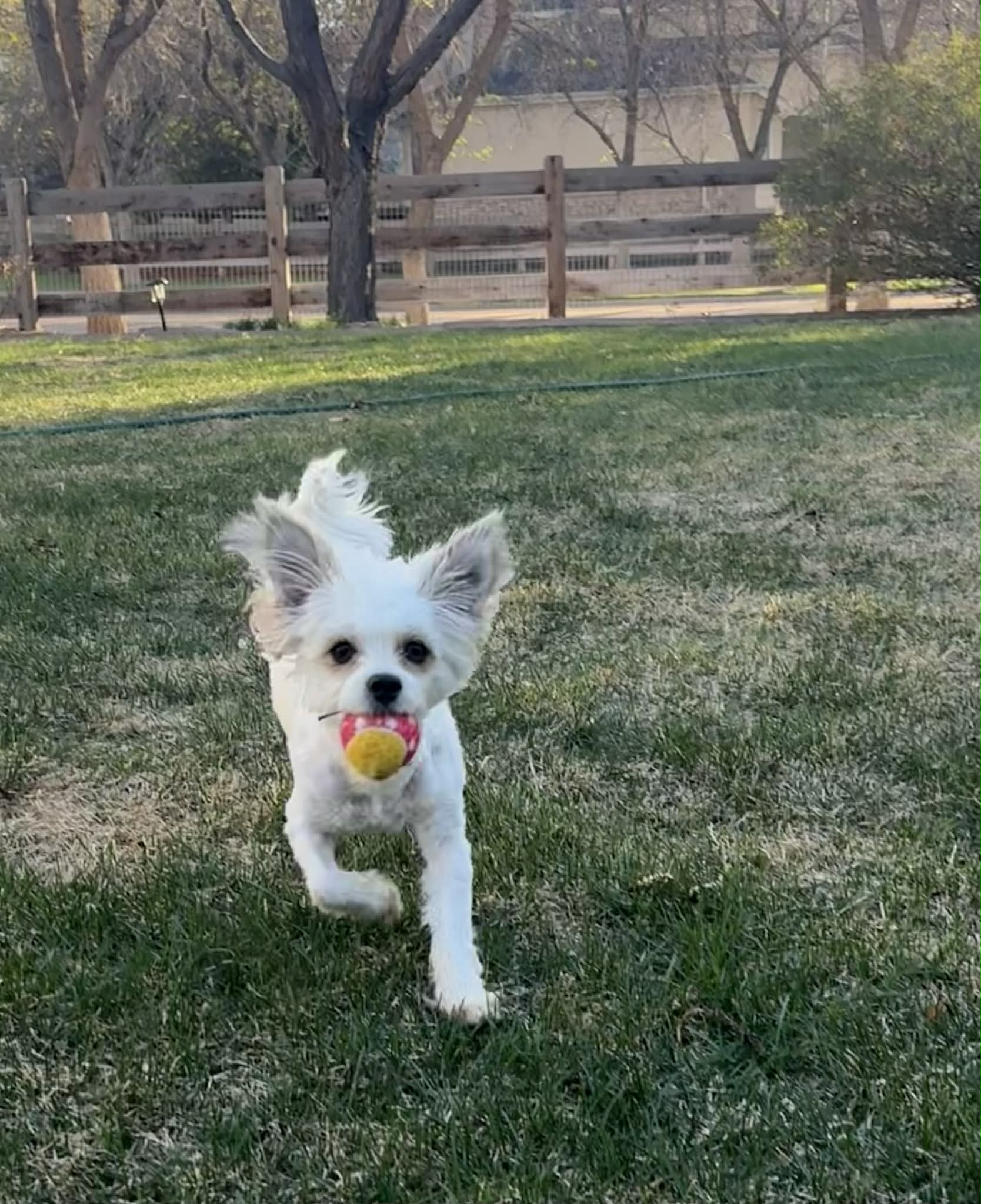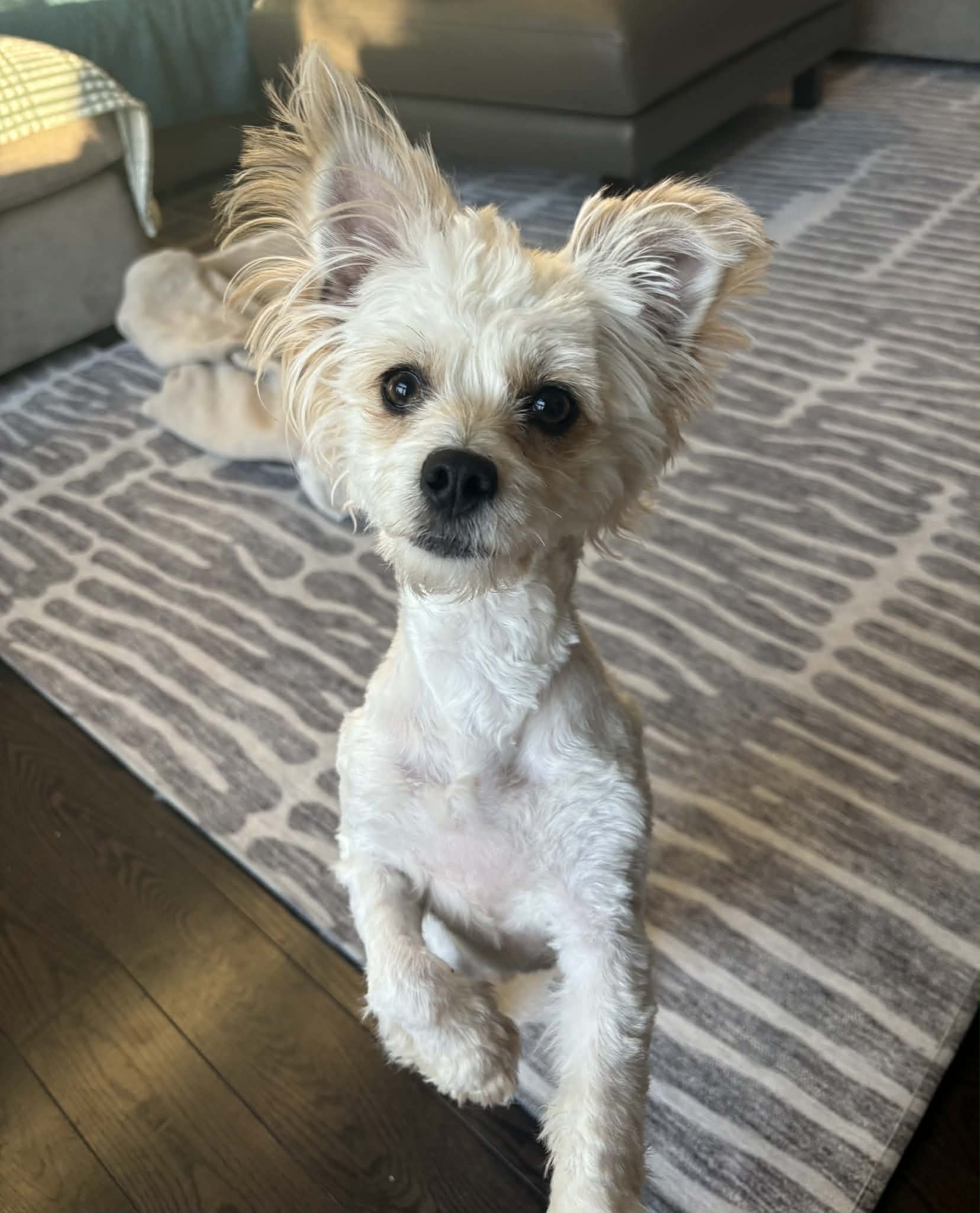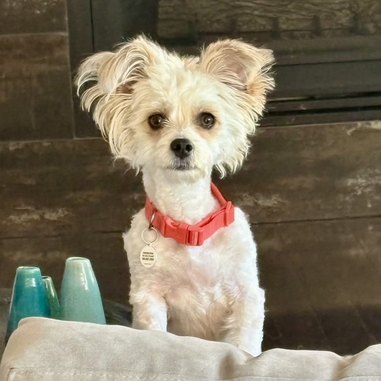 Daisy is an 11‑month‑old, Maltipoo with the face of an angel and the personality of a tiny CEO. She’s sweet, affectionate, and absolutely devoted once she decides you’re part of her inner circle. She loves the outdoors, toys, and a good game of fetch, and she’ll happily follow her favorite human from room to room like a fluffy little shadow. Daisy is crate trained (with occasional commentary), sleeps quietly through the night, and is doing well with potty training when kept on a routine. She’s low‑to‑no shed, medium energy, and maximum charm. Daisy prefers to be the only dog and is… let’s say “unimpressed” by men. She’ll also let the neighborhood know when one walks past her fence. If you’re looking for a smart, sensitive, slightly spicy sidekick, Daisy might be your girl. We’re serious on the no men bit. We promise, you may be good but you’re not THAT good. Daisy is sassy, dramatic, and bossy with other dogs. She responds decently to correction so a very confident larger dog mayyyyyy be ok, but likely not so much.
