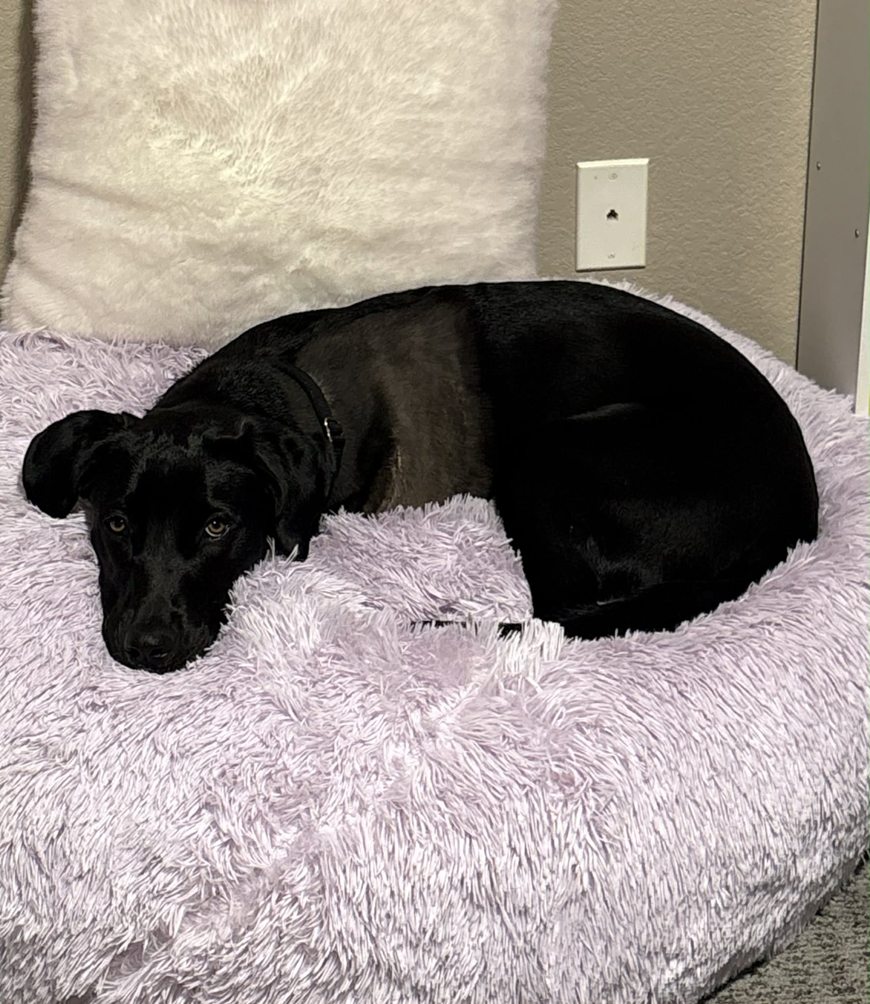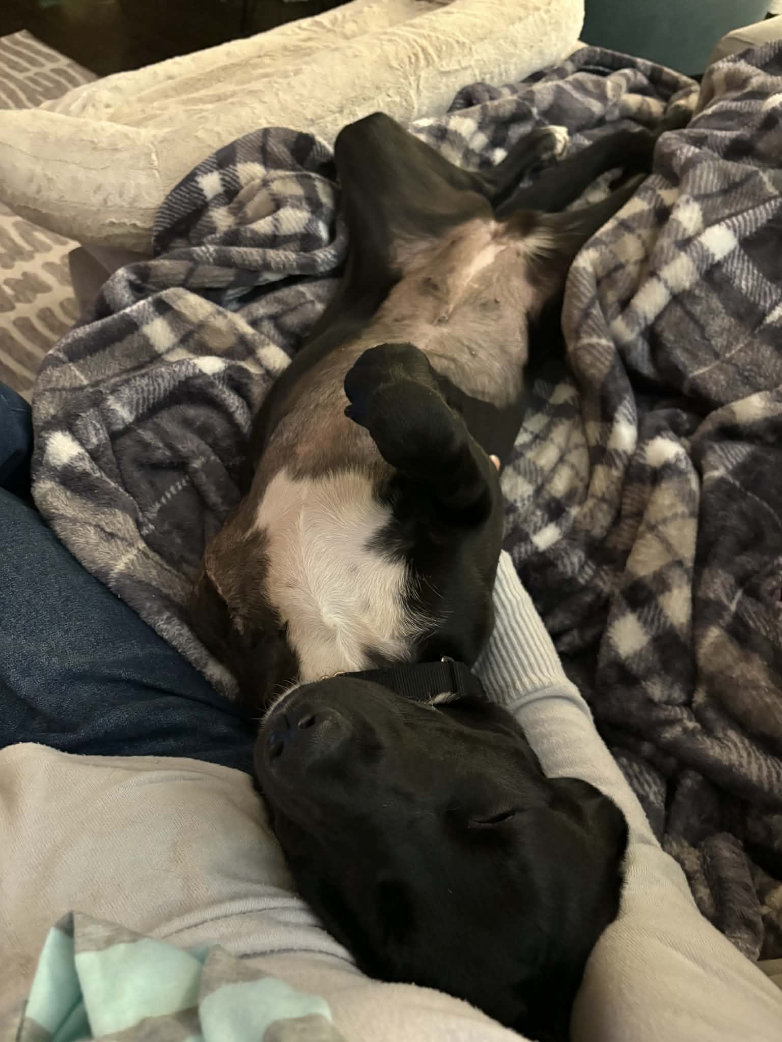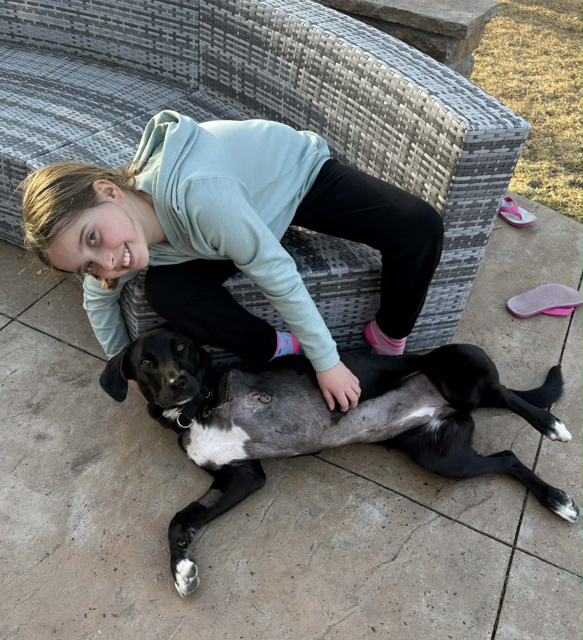 Hey there Delilah! This precious, 9 month old, girl has been through some stuff at her young age, but you’d never know it by her personality. She’s a friendly, resilient girl that does great with kids and other dogs. She would love to engage in play, but if the other dog isn’t feeling it, she’s happy to entertain herself elsewhere. Delilah was confiscated by a local CO shelter after someone was observed hitting her with a cane. Her leg suffered multiple injuries and was amputated. Delilah has recovered beautifully and is learning about life on three legs. She gets around well — particularly on carpeted surfaces and grass. Hardwood floors are harder for her to manage and clearly a lot of stairs wouldn’t be the greatest for her long-term. Delilah is doing very well with her house and crate training (although she does protest a bit at first). The couch is her throne and it’s a privilege, ehh actually a right, she demands in her new home. She’s obviously a labby girl, but she doesn’t have the high and destructive energy the breed has been known for.