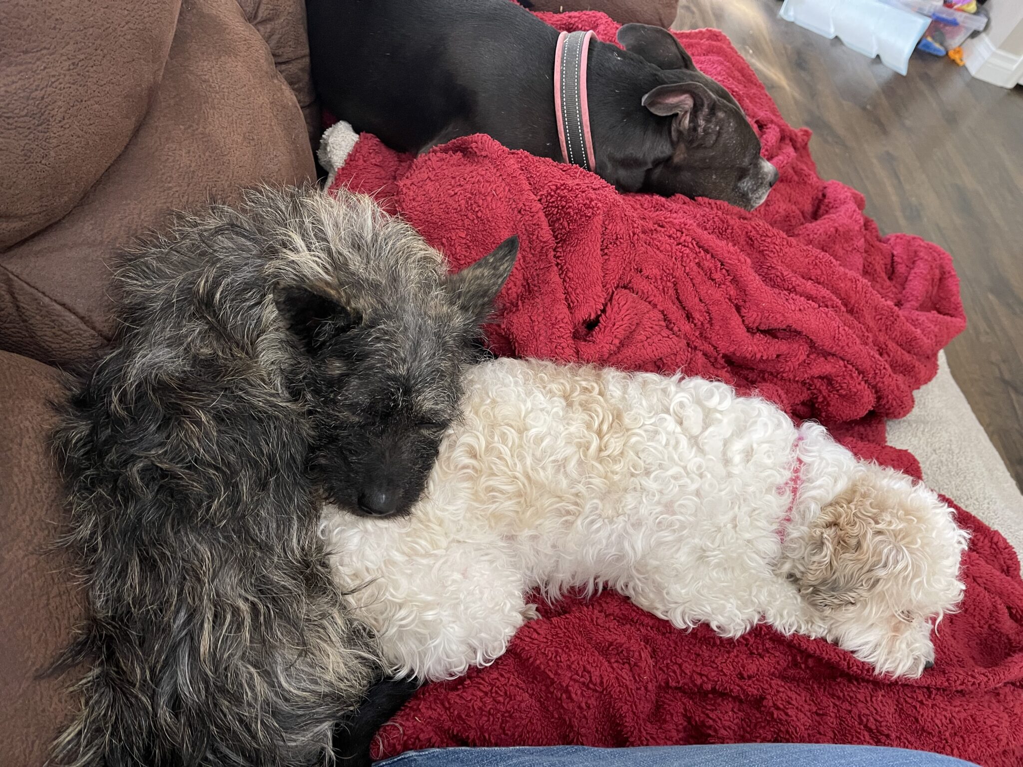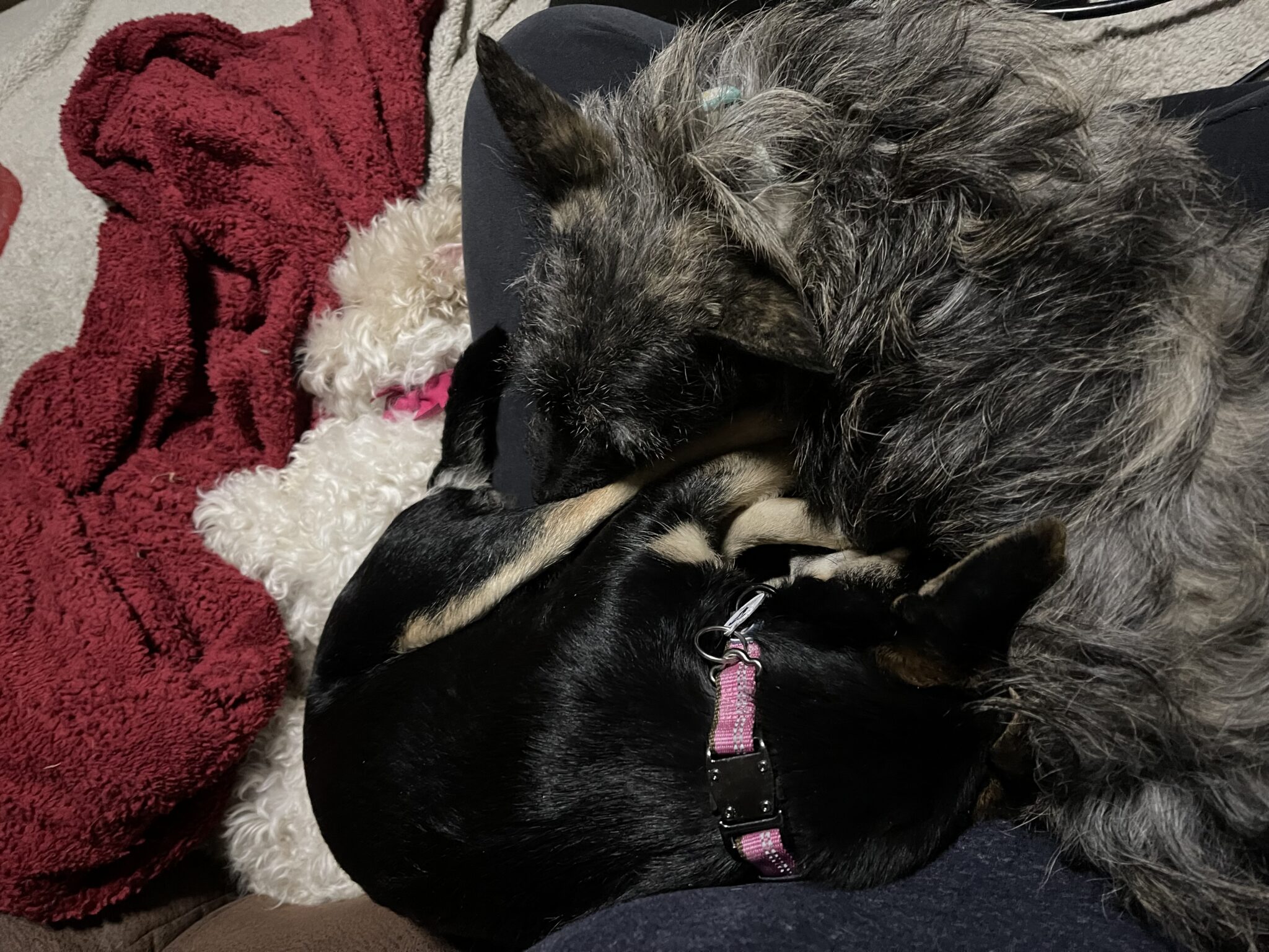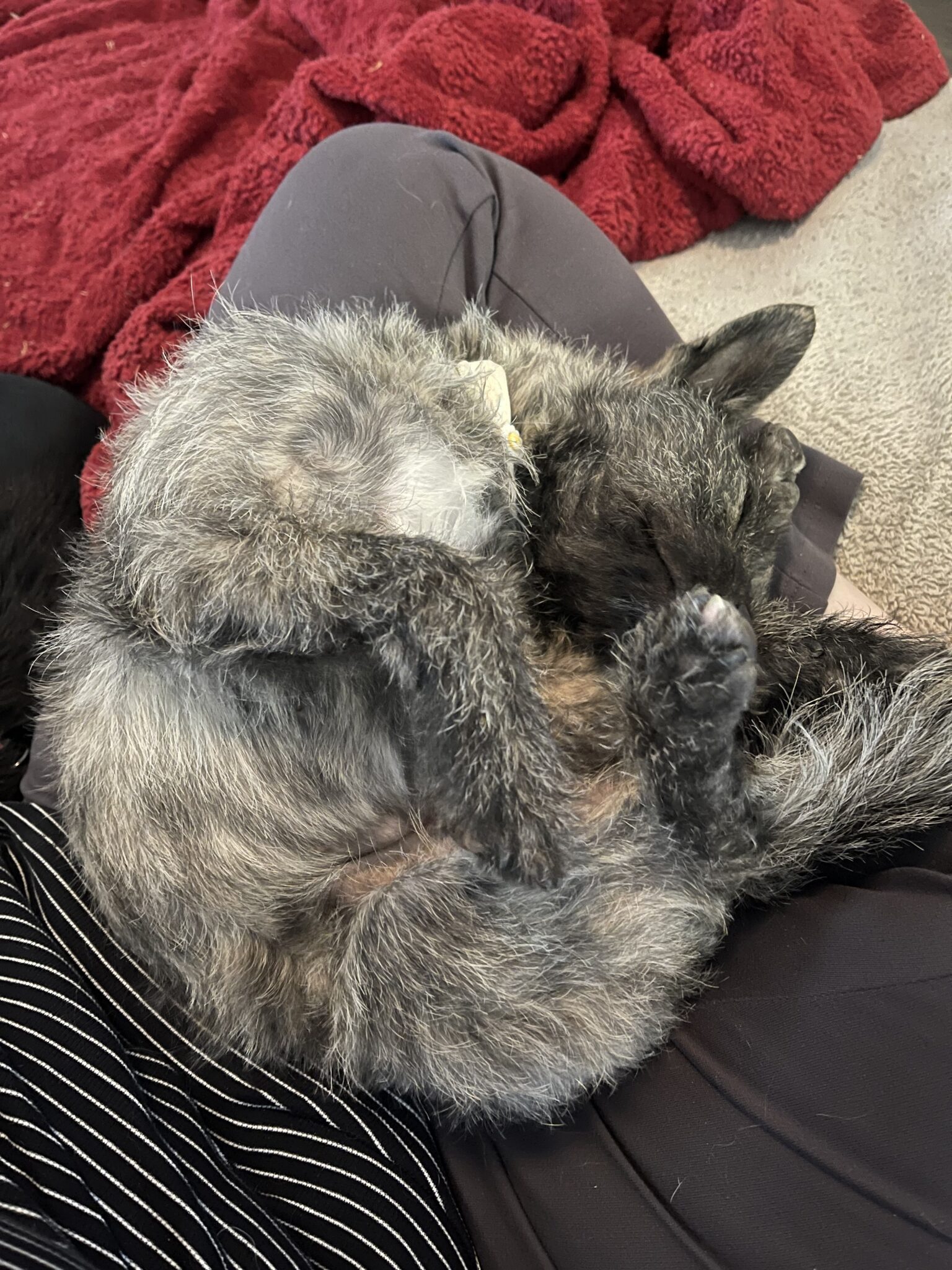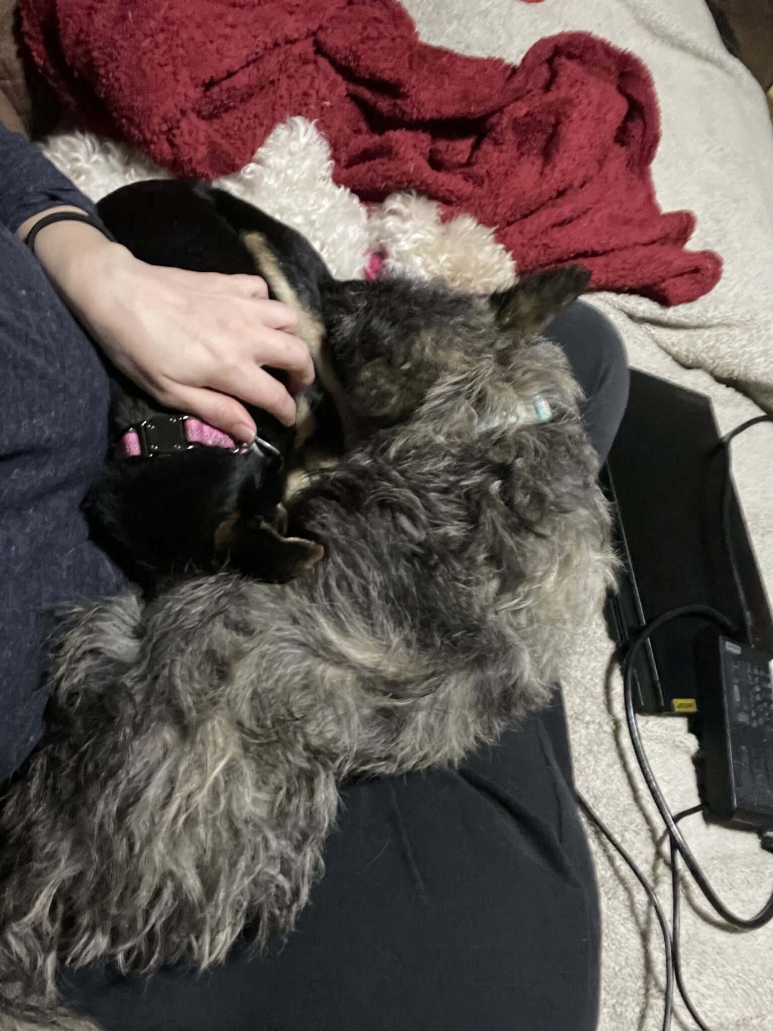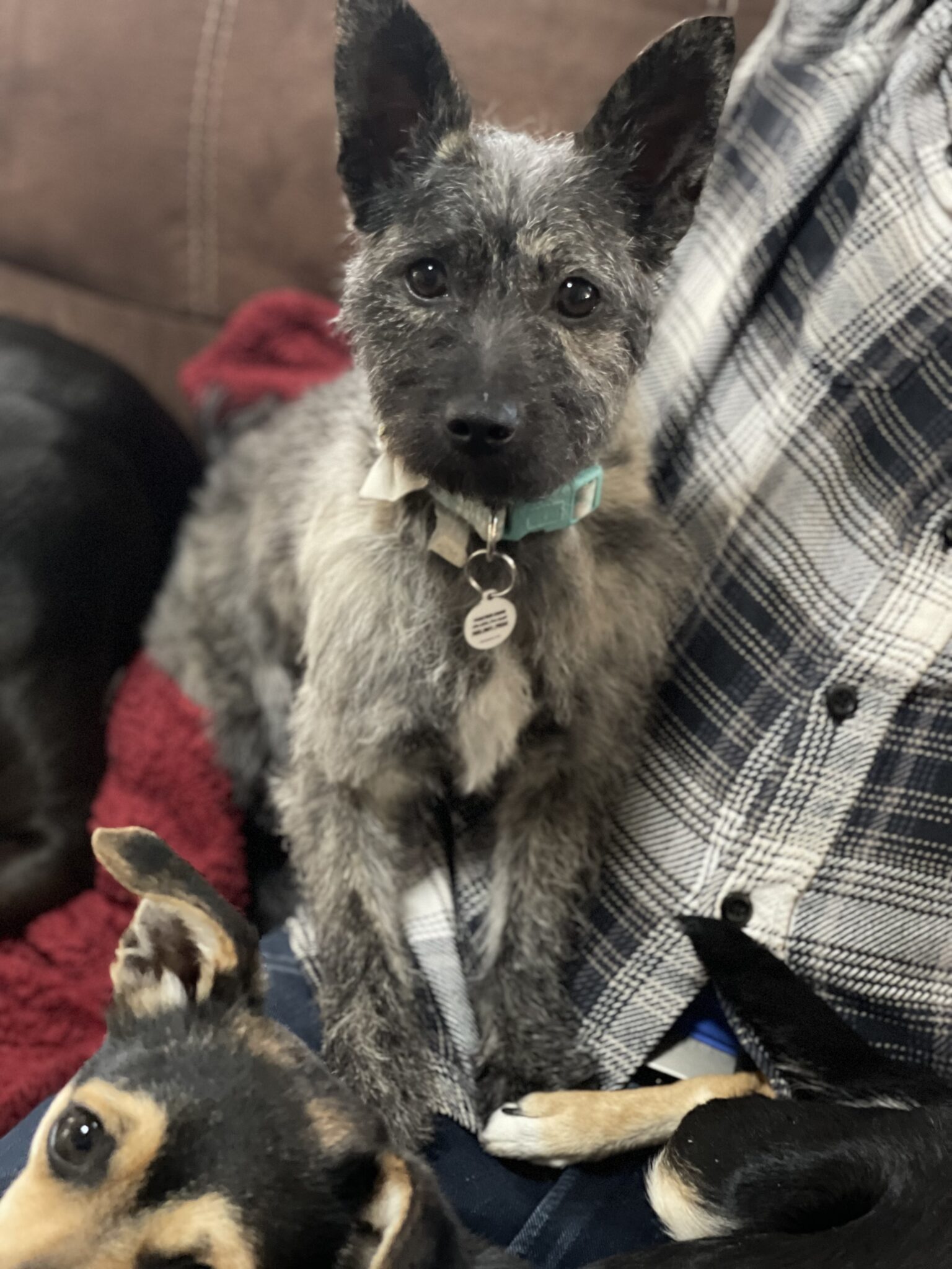 Dorothy is doing well with her house-training and has great house manners. She is just as happy doing zoomies in the yard as she is curling up in your lap for a cozy night in. She is basically a pocket-sized best friend with pro snuggle skills.