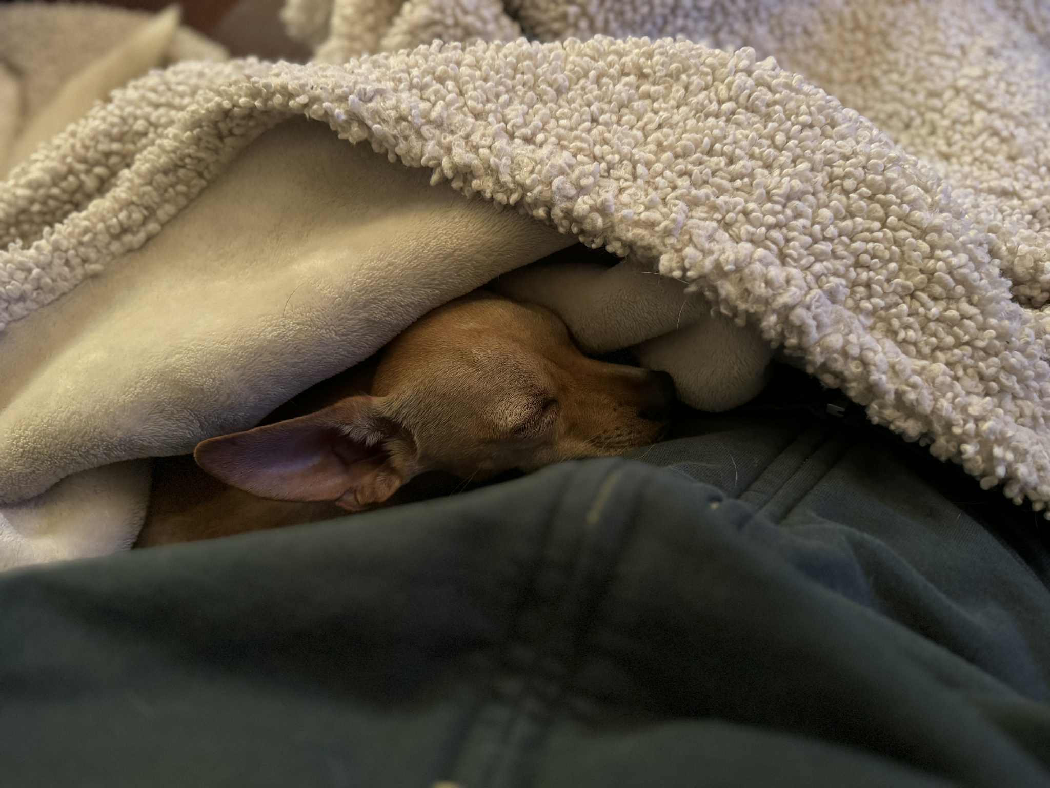 Lil Dumps lives for warmth — probably because he has negative body fat. His ideal day includes curling up directly on your chest, burrowing under blankets until he becomes one with your body heat, or (if you’re wearing a baggy shirt) crawling right inside to live his best marsupial life.