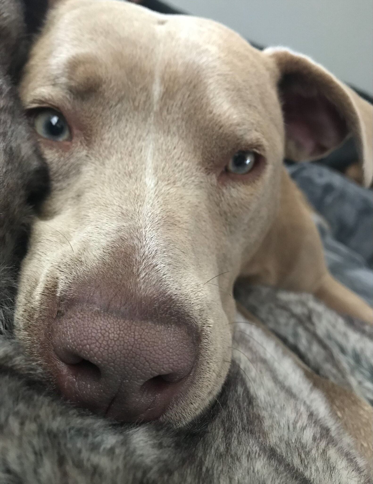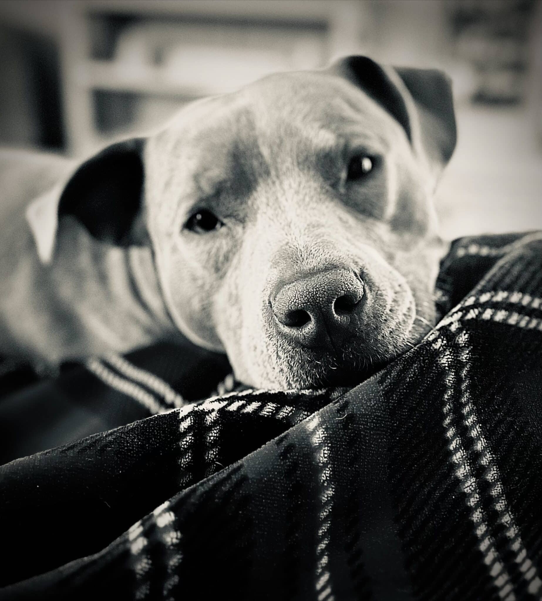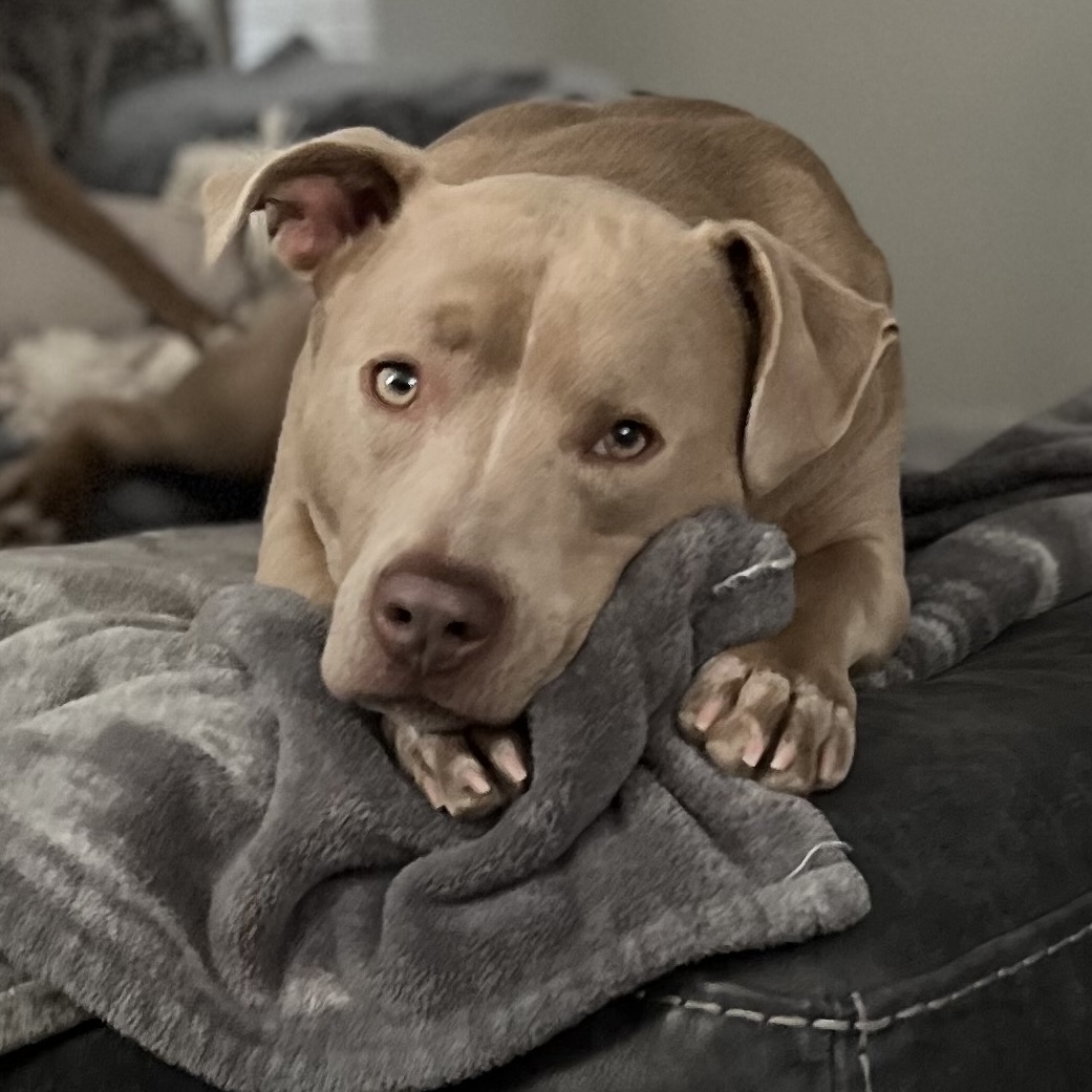 This girl isn’t an athlete — she prefers lounging on the couch, snuggling on a bed or blanket, and staying close to her person. She enjoys bones and treats, but fetch and long outdoor adventures aren’t really her thing. Everest’s greatest joy is simply giving and receiving love while being cozy and comfortable.