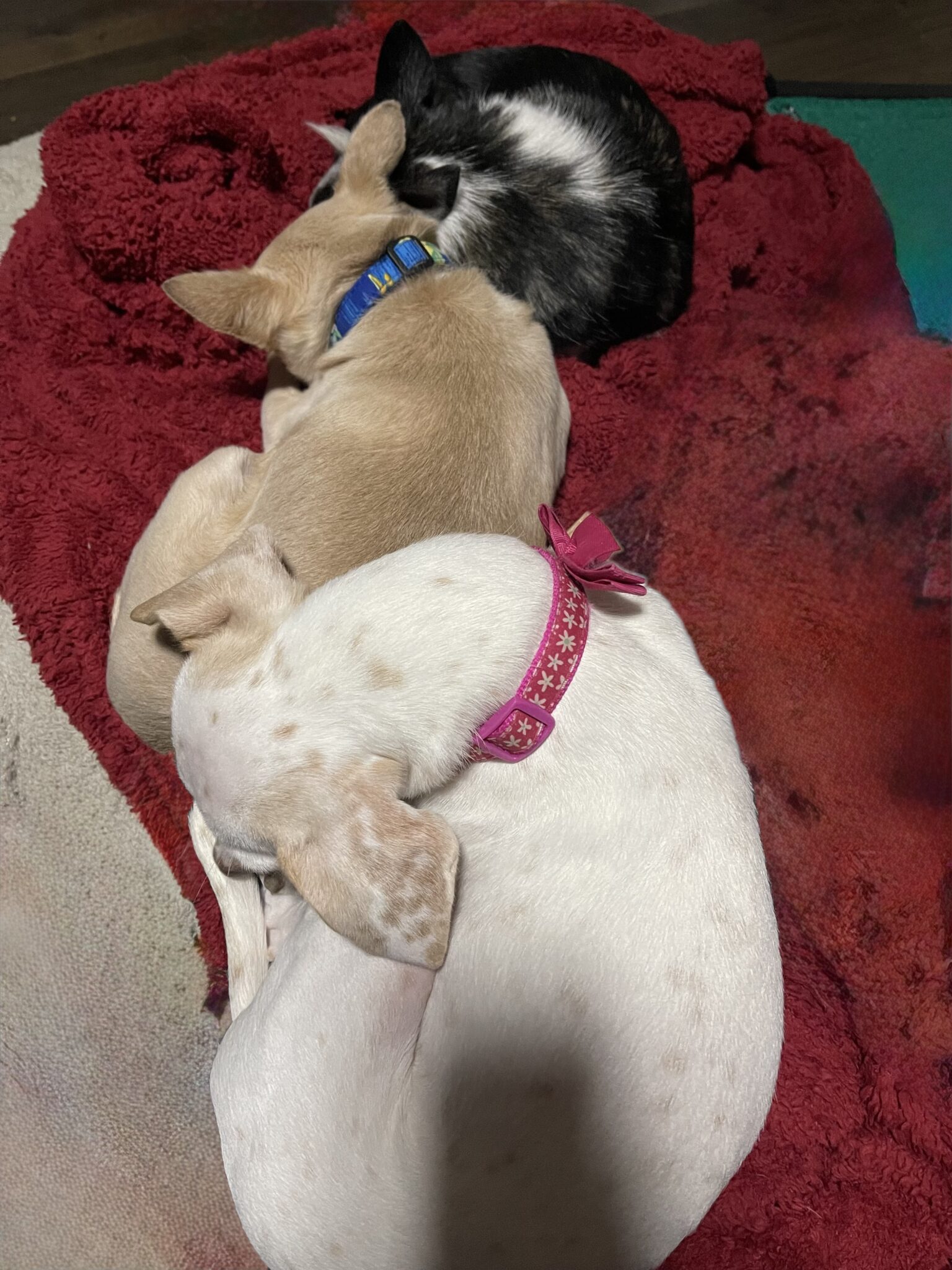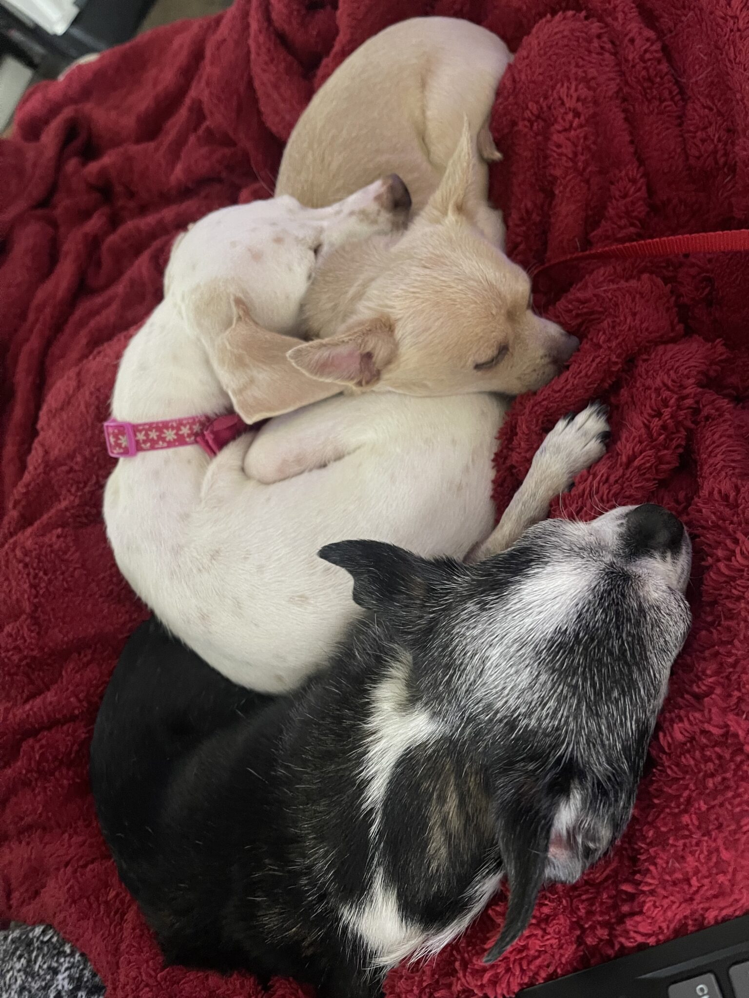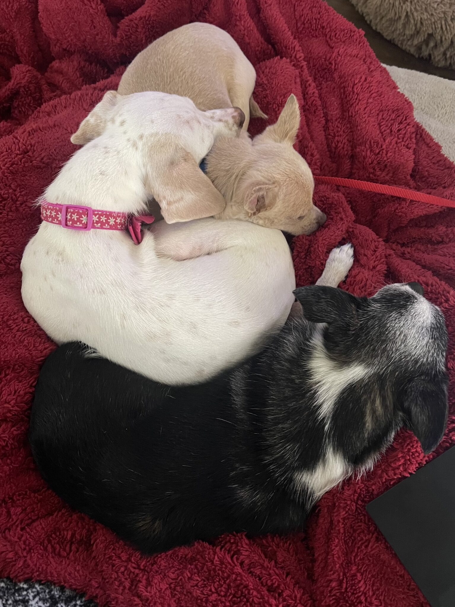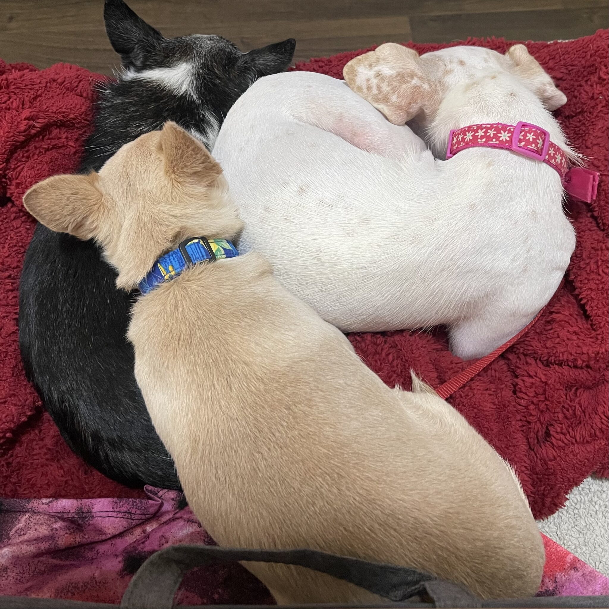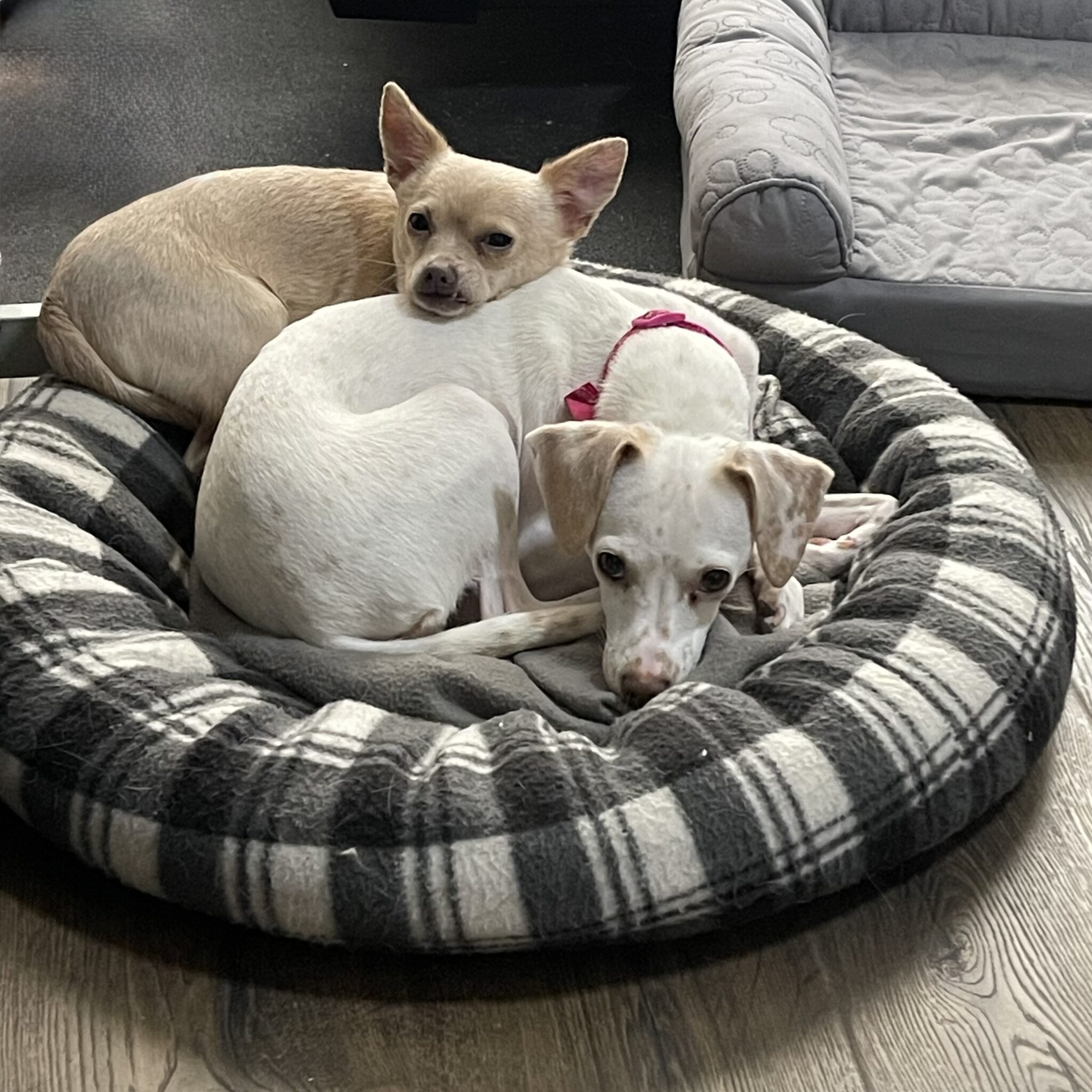 Gemma, or Gem as we lovingly call her, is a survivor with the sweetest heart. At 5 years old, this little Chihuahua was found in a tire in a landfill caring for her 4 puppies. She found her way to Colorado where she has been learning that the good life is full of cozy blankets, friendly pets, and people who treat her with only kindness.