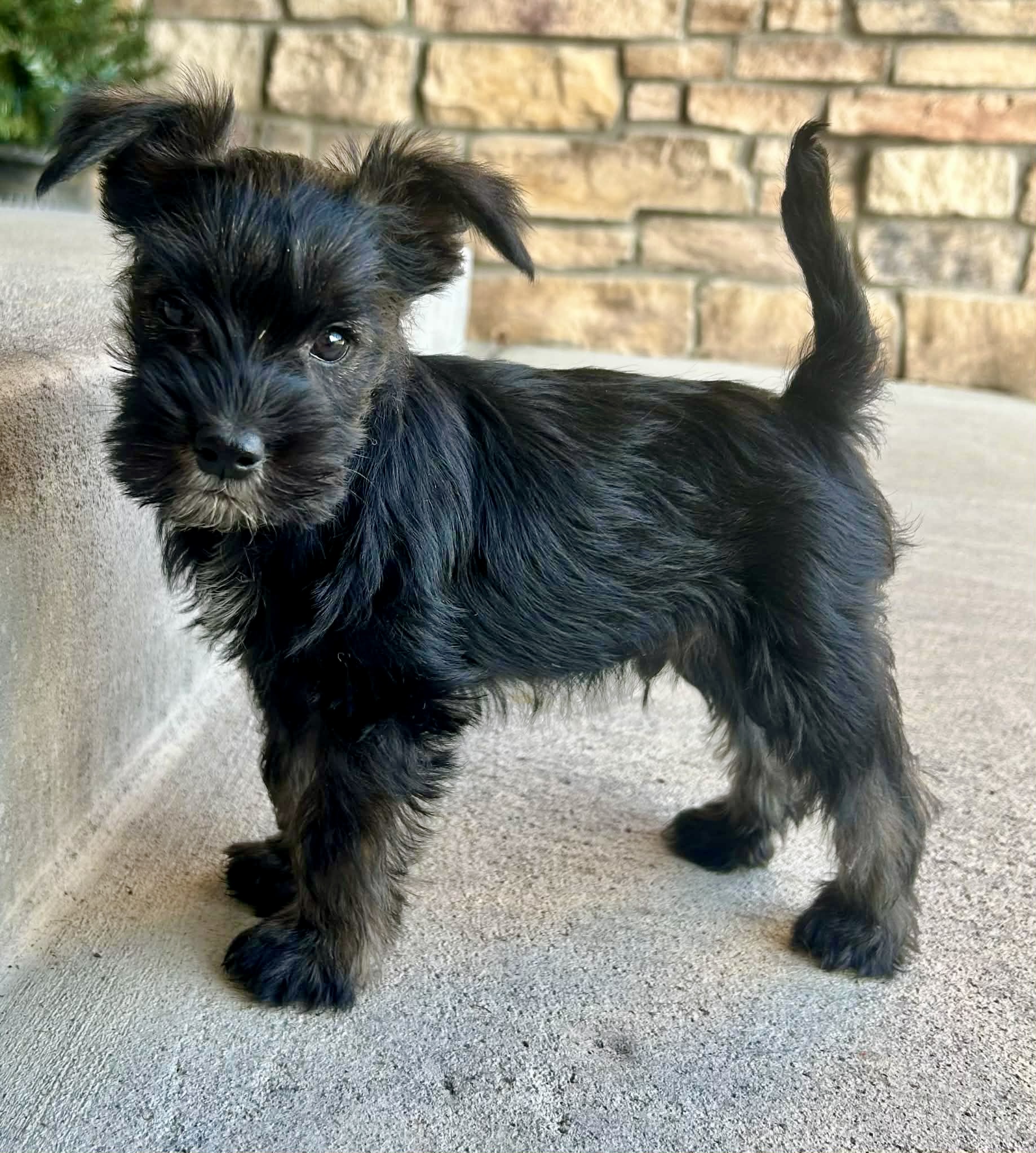 Griffin is an 8 week old, male, Yorkie/Schnauzer/Chihuahua type mix. He and his littermates were abandoned as orphans at a shelter when they were only a few weeks old. Griffin is the food enthusiast of the family. He’s always up for trying new treats. He is also a fan of wrestling with his littermates. Griffin has been raised with kids, dogs, and cats — ensuring he will be a very well-rounded young man.
