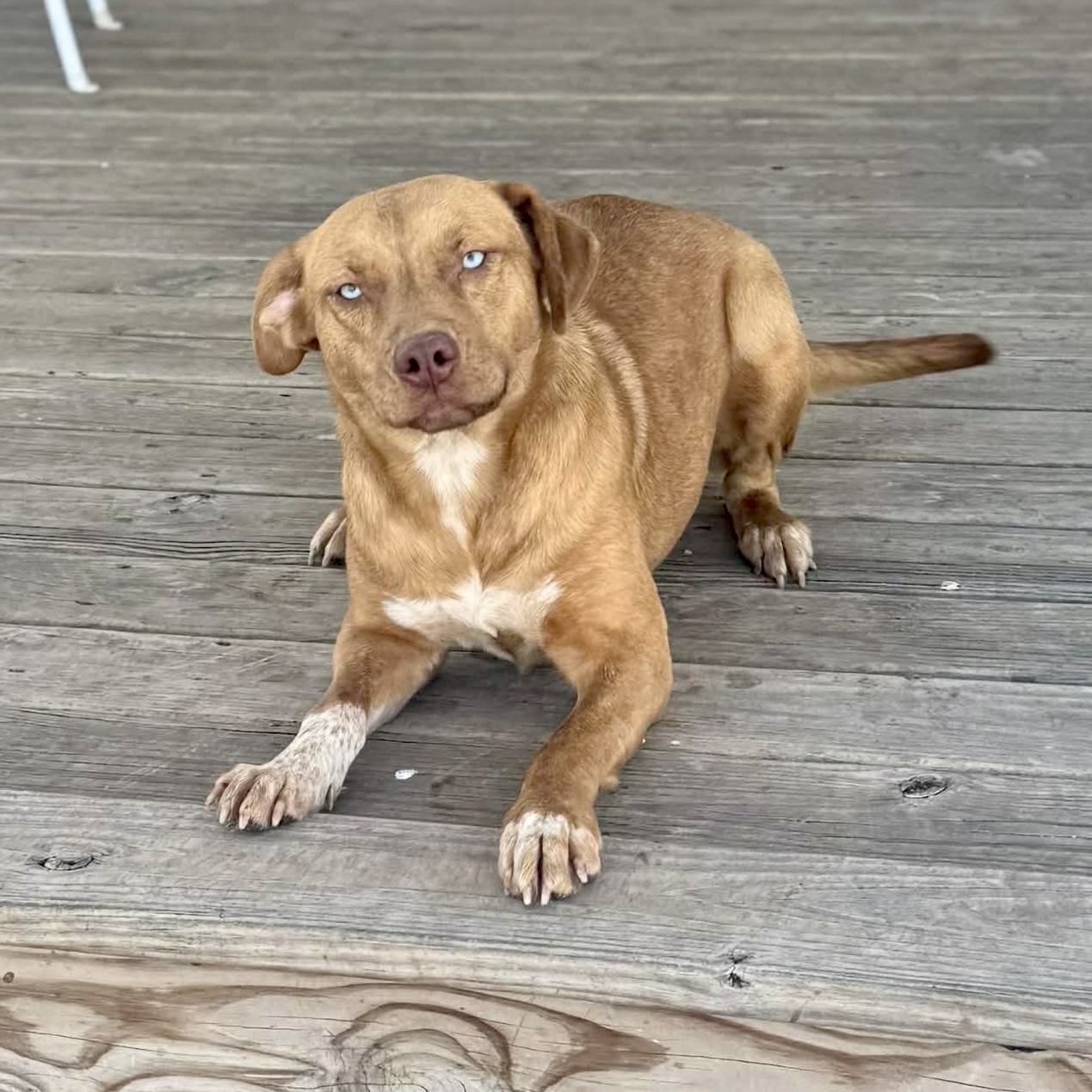 Honey was saved from a Houston, high intake shelter when her time was up. She had been picked up as a stray. She had a nice behavior report at the shelter and was known for charming shelter volunteers with her army crawls, kisses, and for rolling over for belly rubs❤️. We have no idea who missed out on this beautiful, blue-eyed gem of a girl before, but she’s ready to put it all behind her and find her true forever people. We think she would do well in a home with a more mature canine to learn from and/or humans that have time to work on training and taking her on adventures. Her forever family will be lucky to have her!
