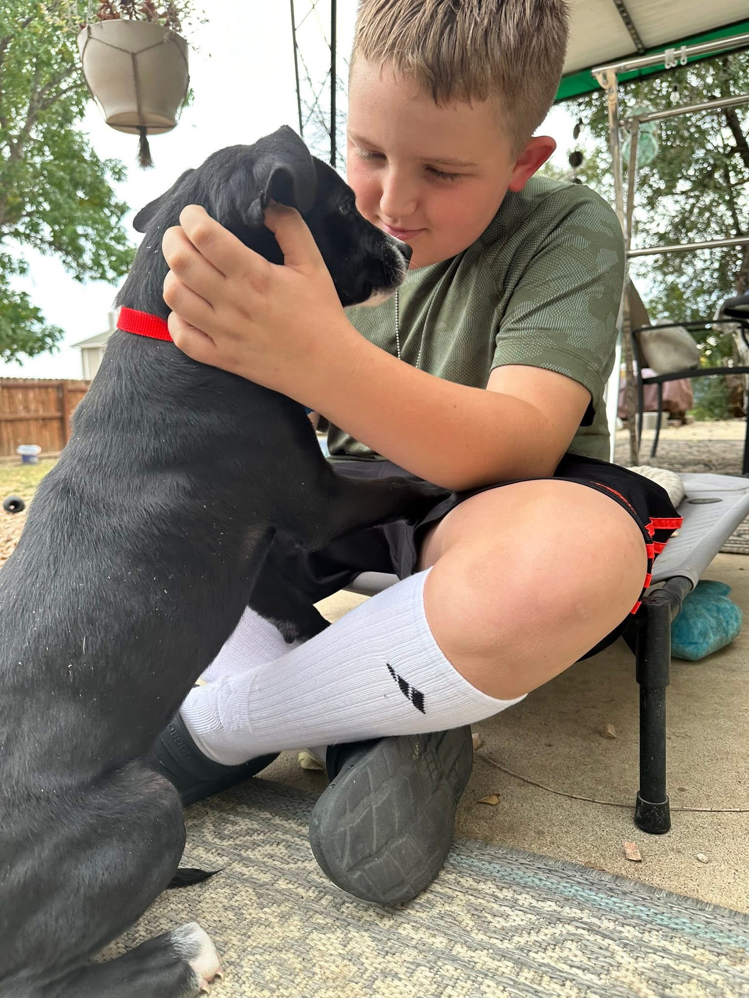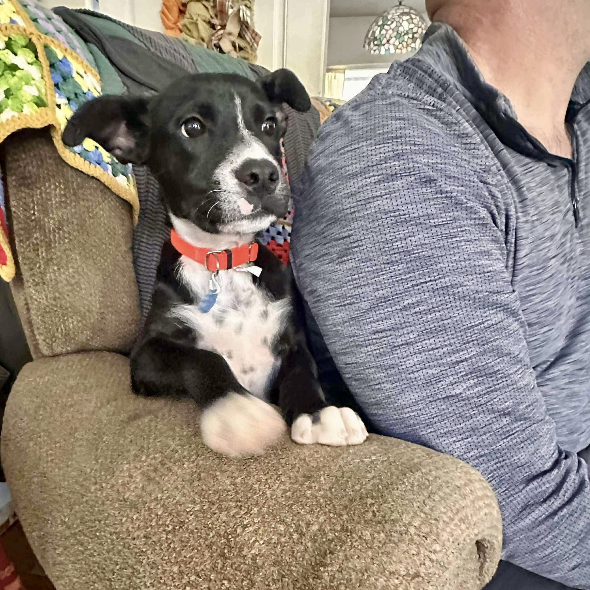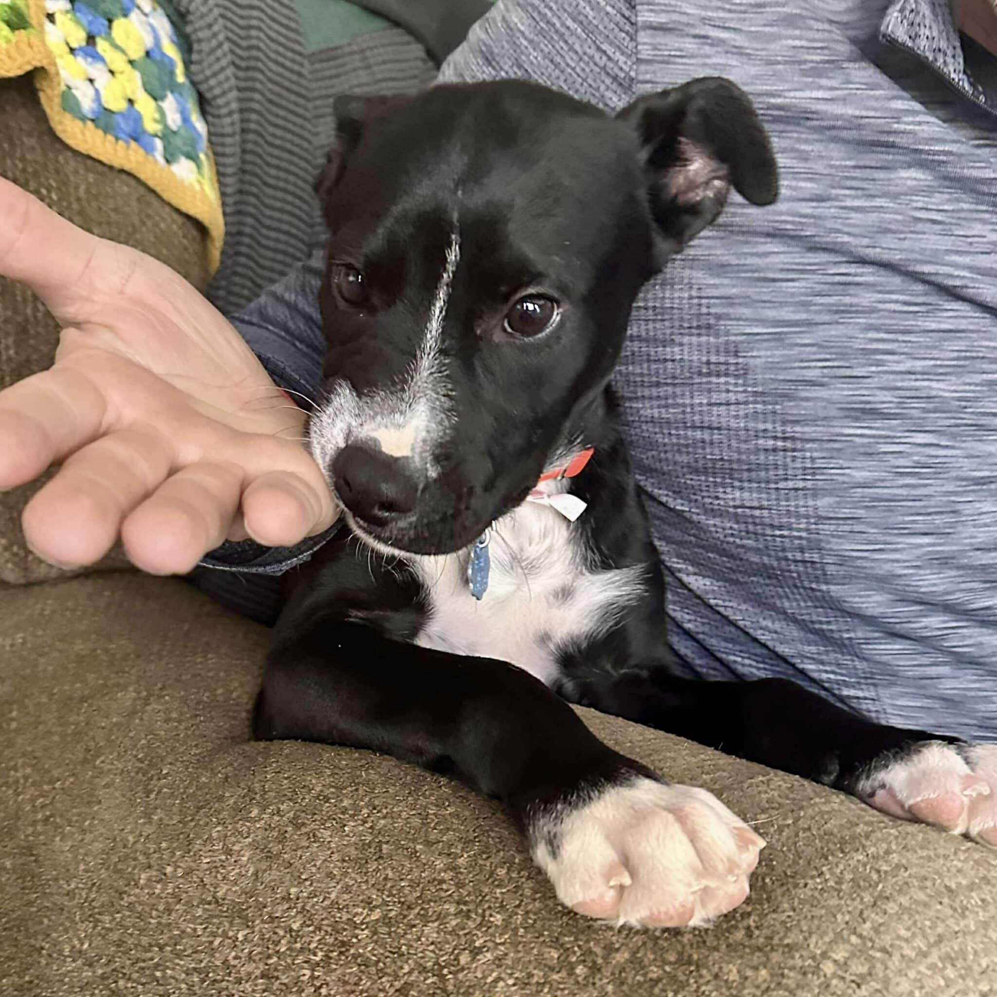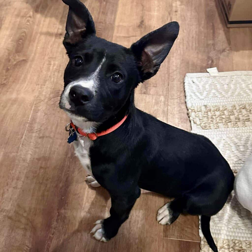 Jack, as in, Jack-o-lantern is a 5 month old cattle dog mix. He is a smart, playful, and loyal boy that will adapt to a wide variety of homes. He’s awesome with dogs and is super respectful of boundaries the older dogs set for him. He sleeps all night in his crate without a peep, too! Jack is a Velcro type and wants to be where his humans are. Exactly the kind of loyalty you’d expect from a cattle dog type.