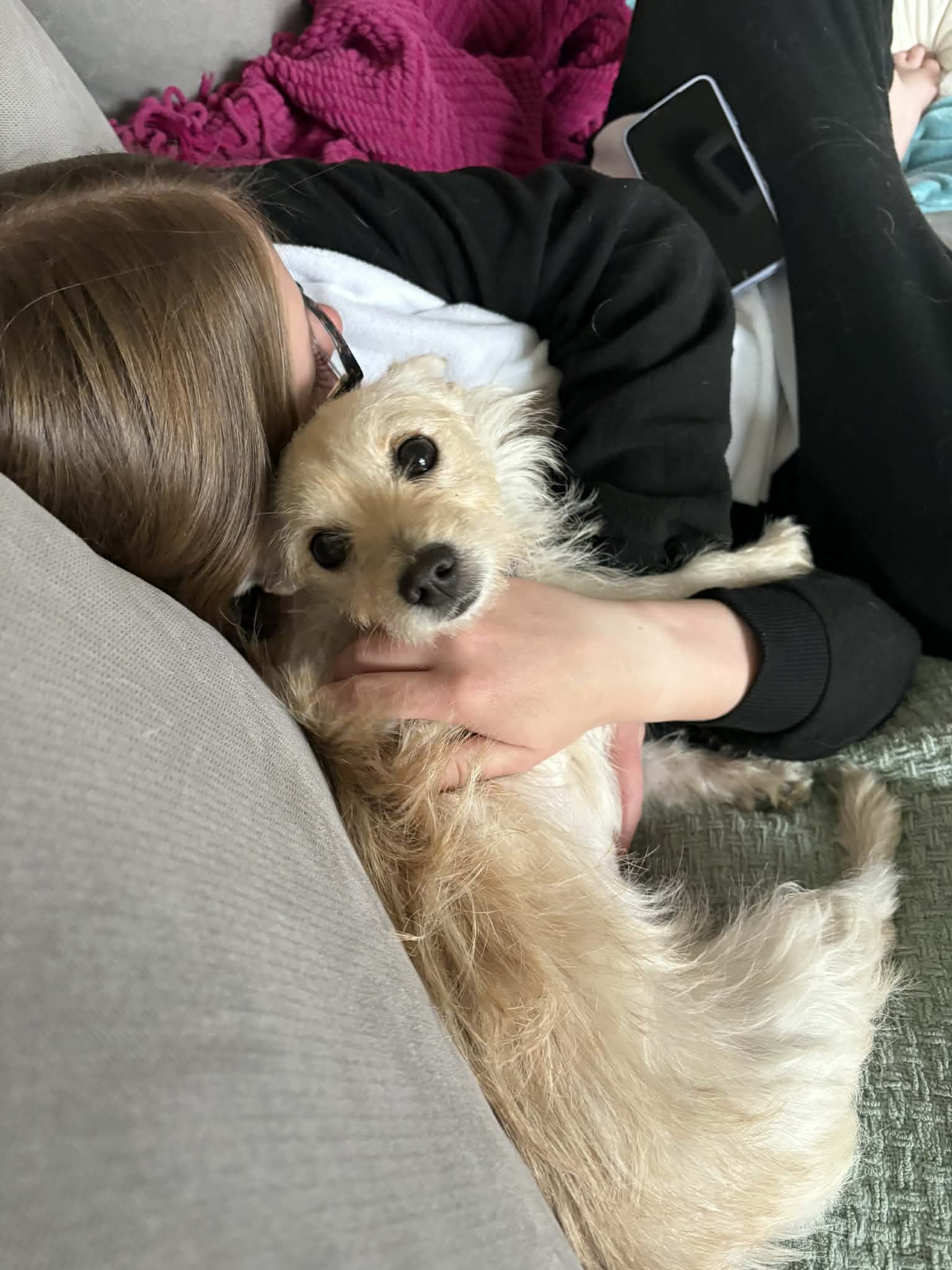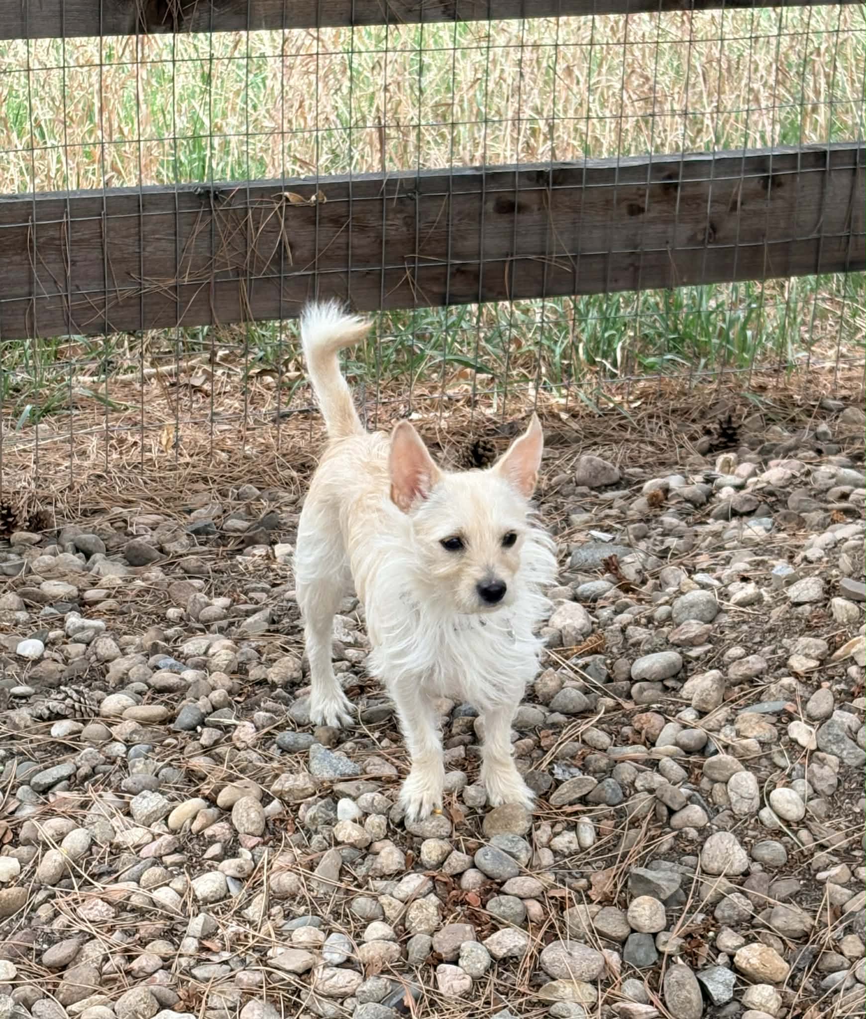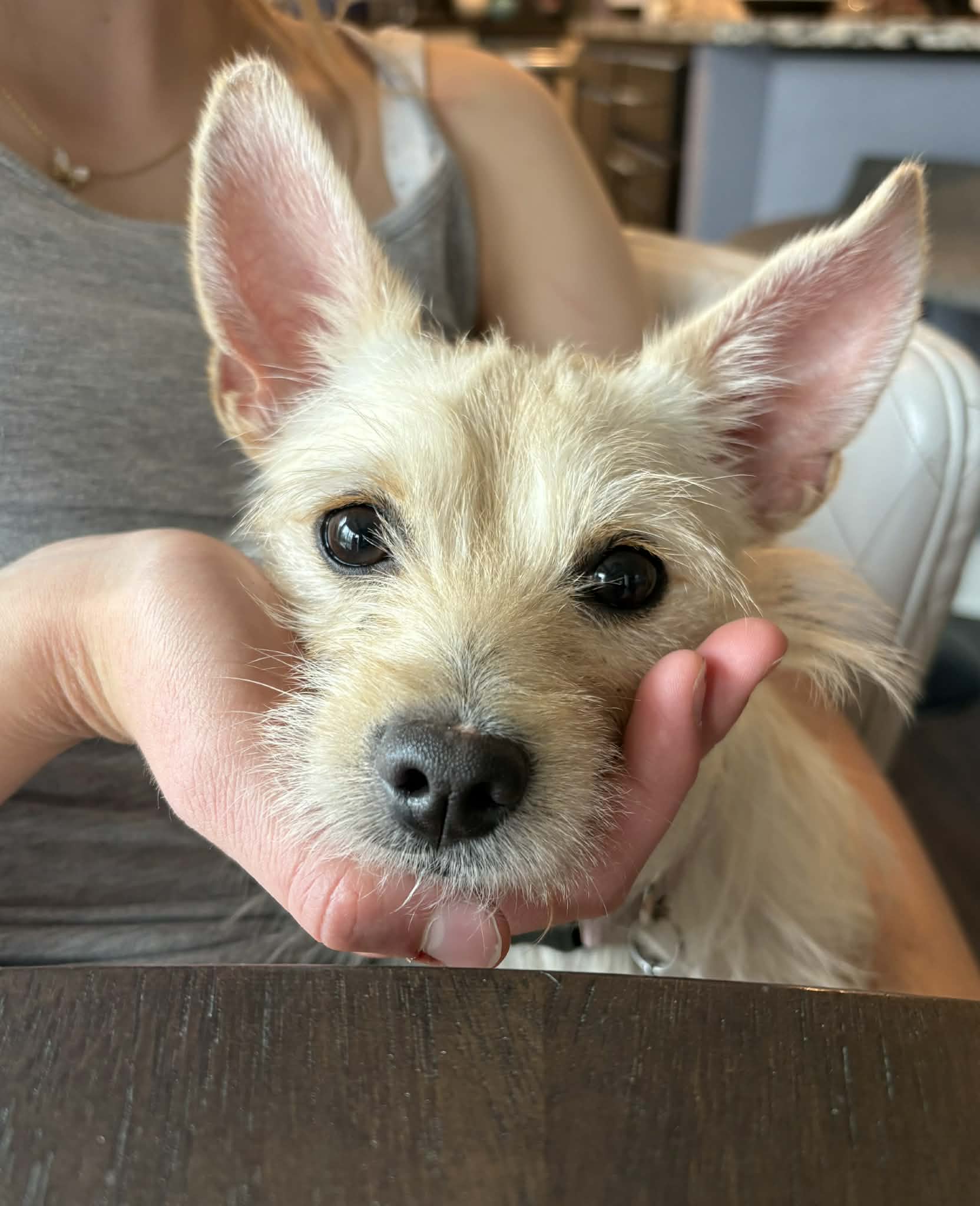 Lady is a 1-year-old West Highland Terrier mix with the softest heart and the sweetest soul you’ll ever meet. She’s incredibly gentle, loving, and affectionate—one of those dogs who just melts right into you the moment you pick her up. She absolutely adores being held and will happily smoosh her little body into you for all the cuddles she can get.
