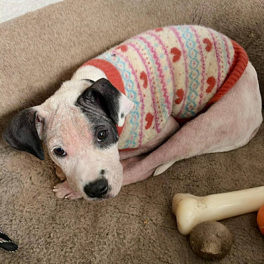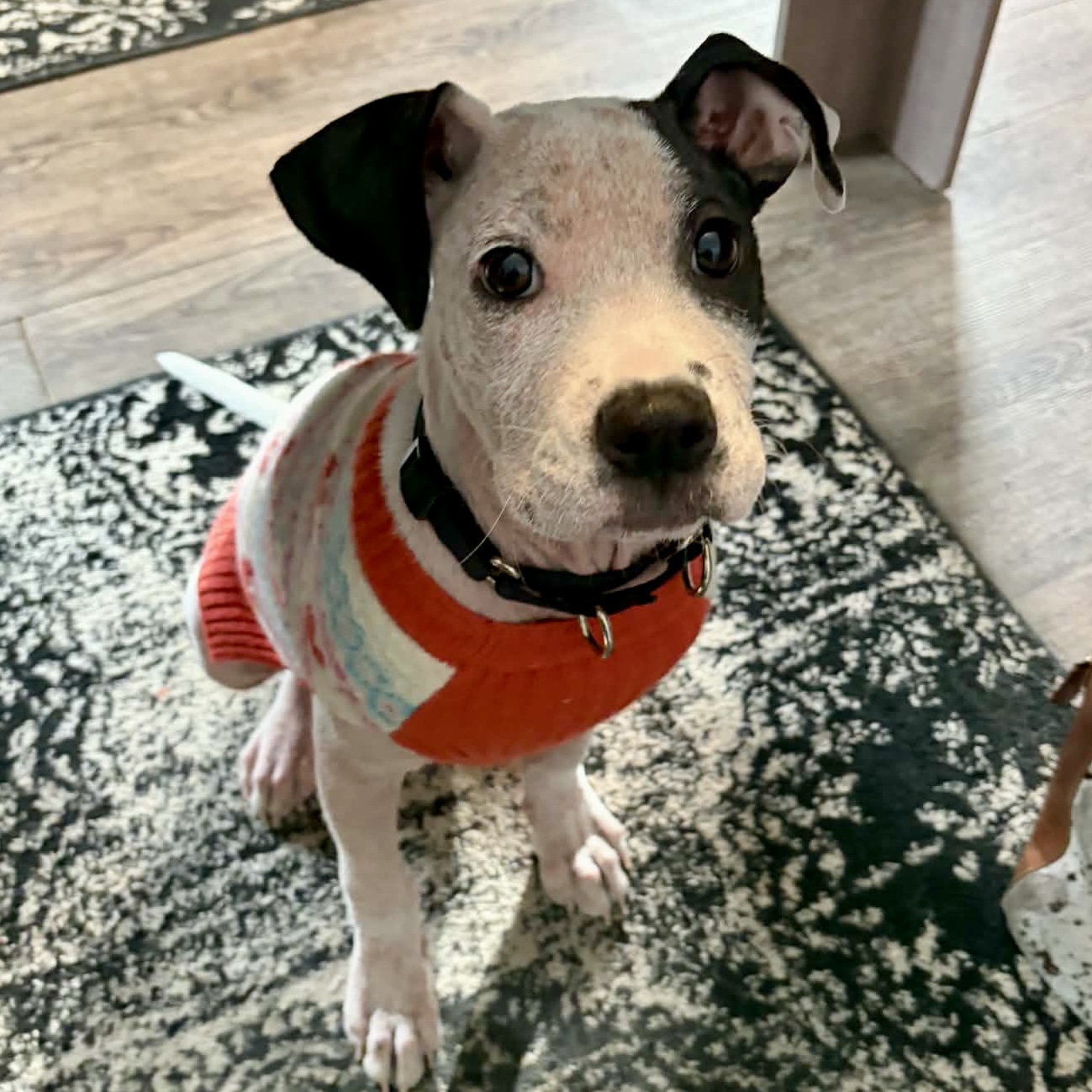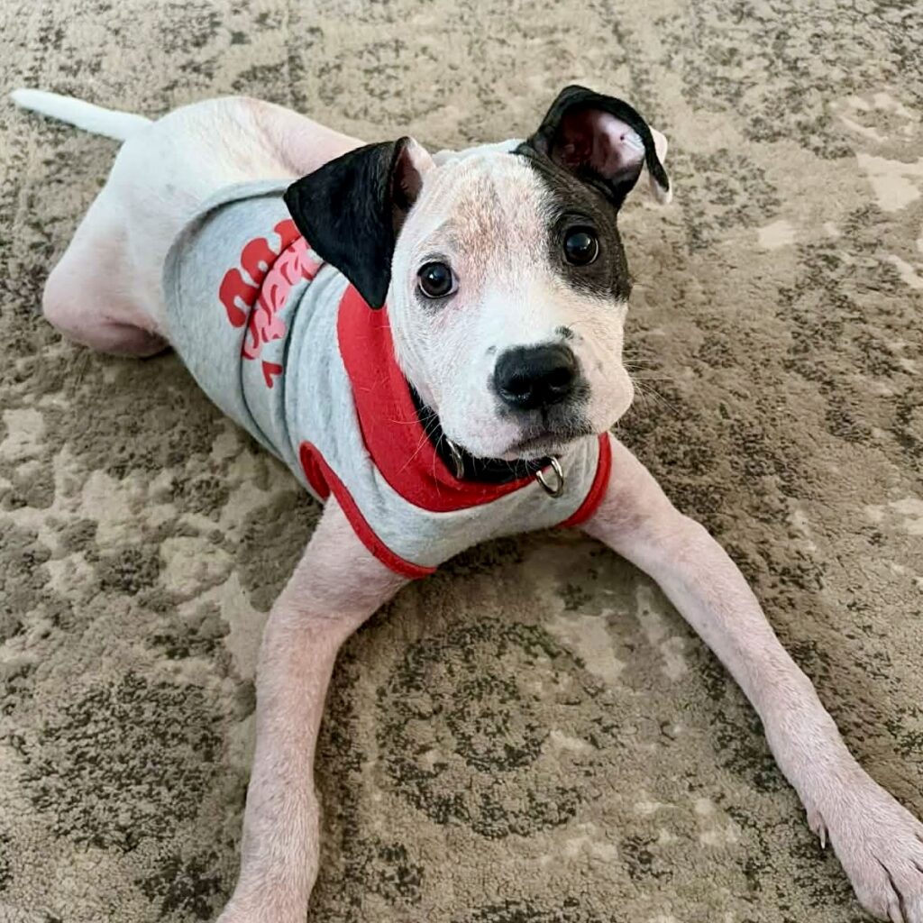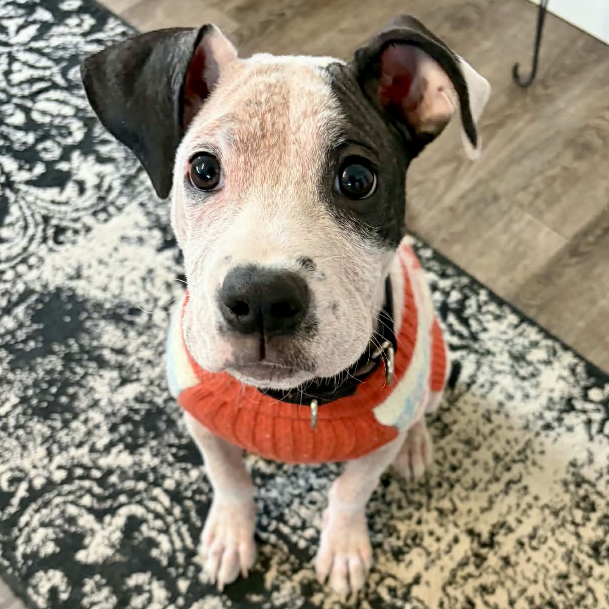 Liliana is a super sweet, wiggly little pittie who is thrilled to meet new people. She’s affectionate, happy, and loves attention — the kind of puppy who leans in for pets and makes fast friends with everyone she meets.