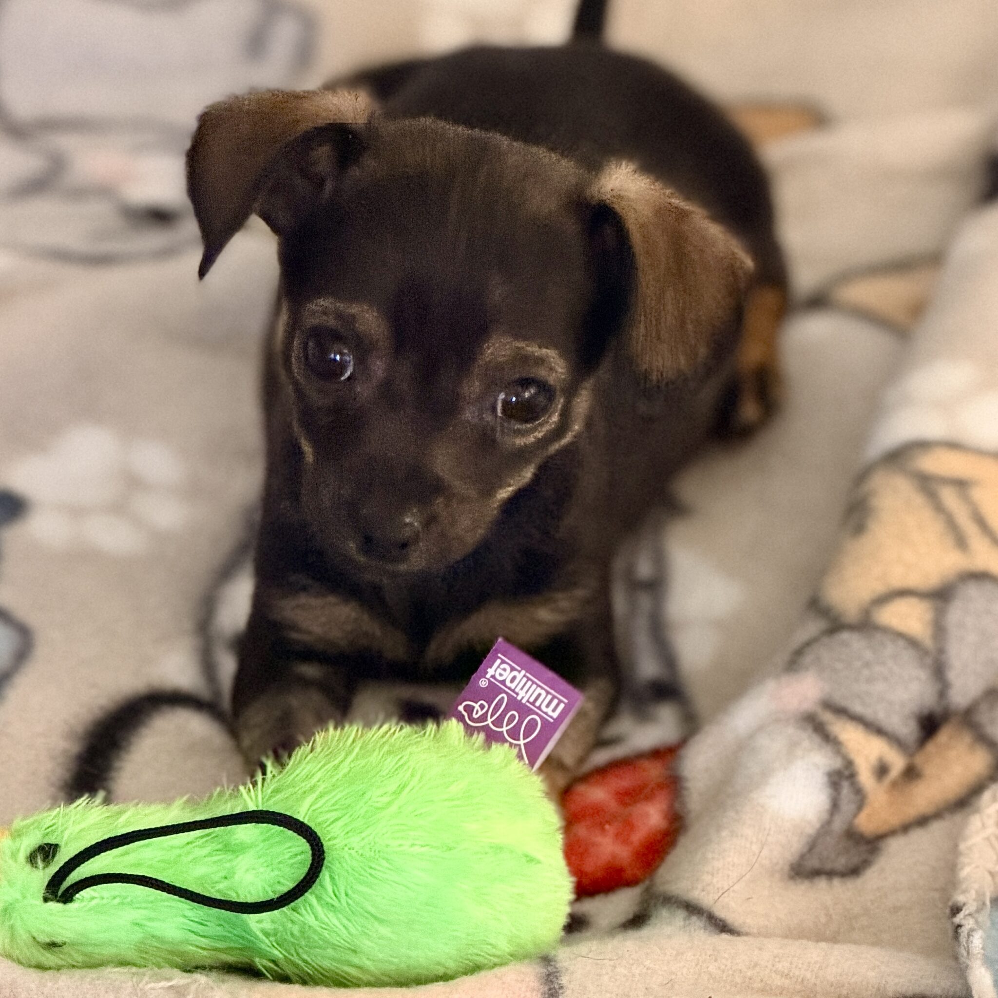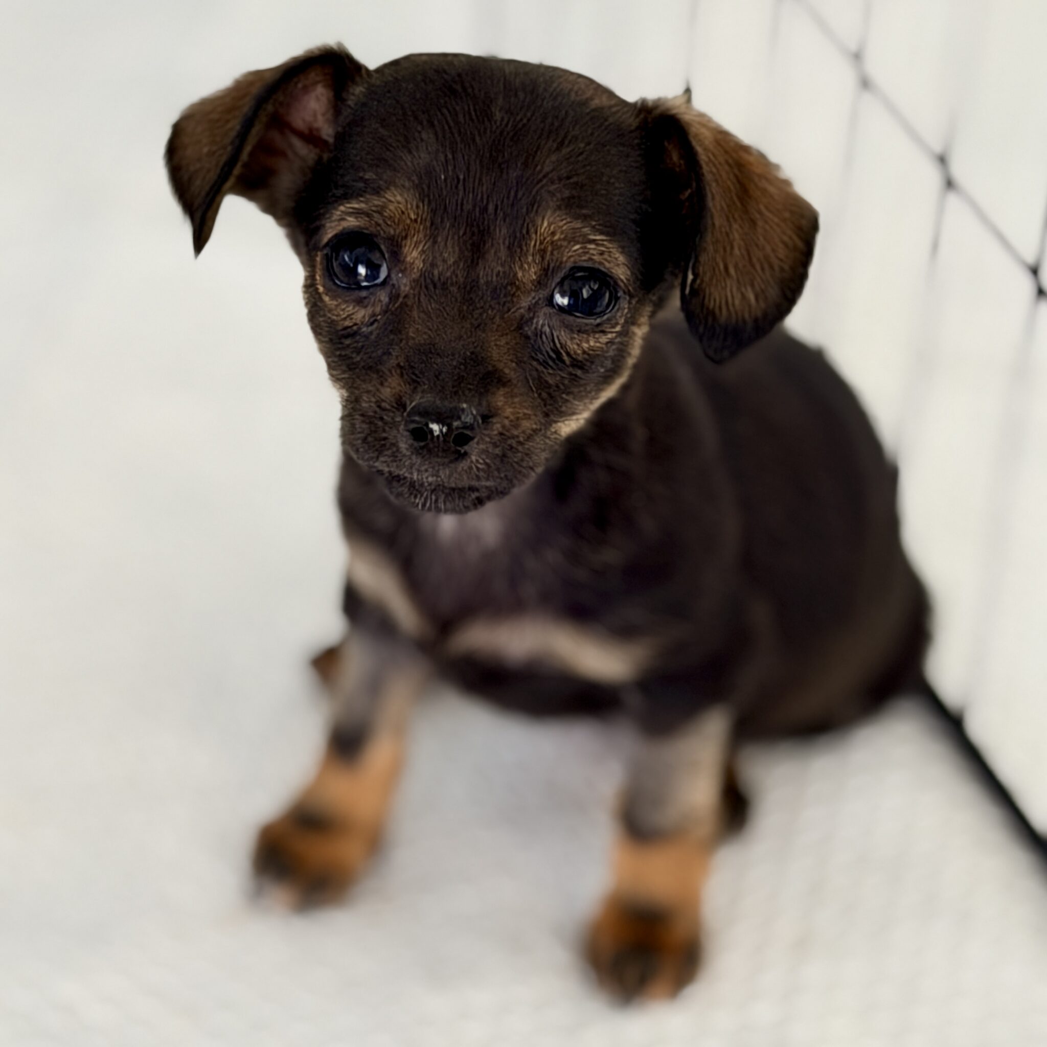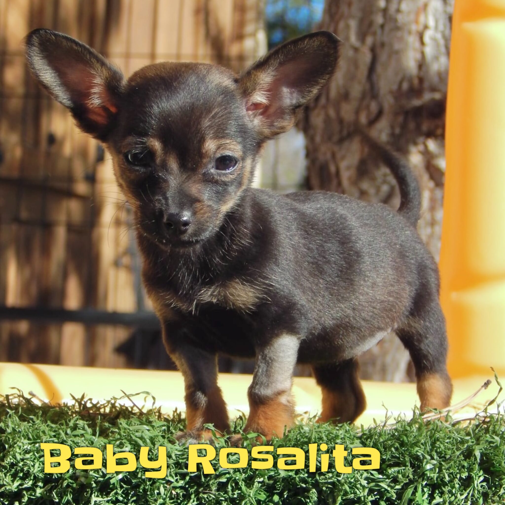 Baby Rosalita is a precious little peanut. She is small, but mighty, coming in at around 9 weeks old and less than 2 lbs. Baby Rosa loves to be carried around and cuddled. That being said, she’s a young, playful pup and absolutely loves to tear it up with her canine foster siblings. She’s inquisitive and brave with just the right amount of sass! Don’t miss out on this precious little Chiweenie.