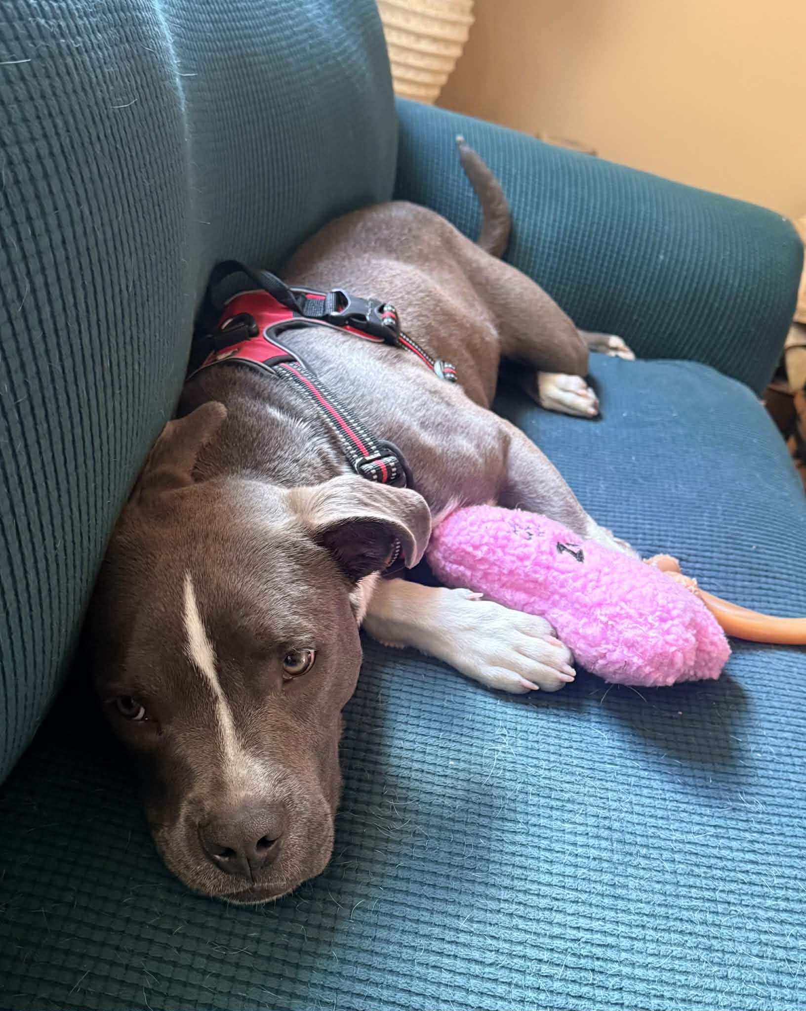 Marlo is the kind of dog everyone hopes for—easy, lovable, and ready to fit right into your life. This handsome 1-year-old pittie mix absolutely adores people and greets everyone like a new best friend.