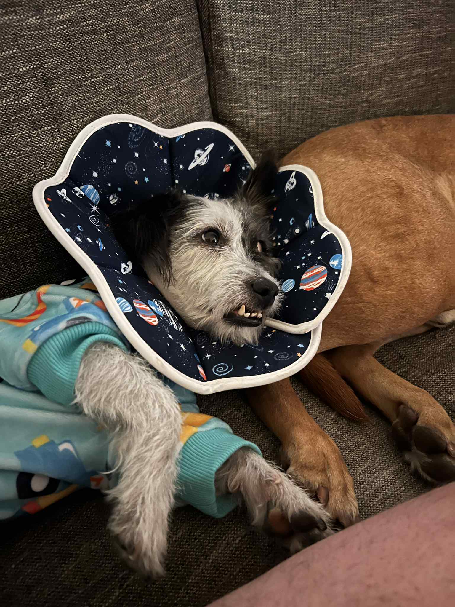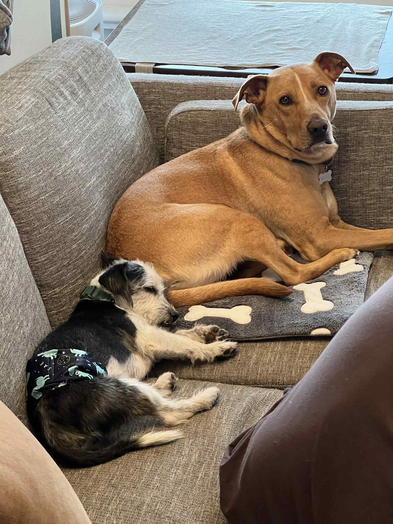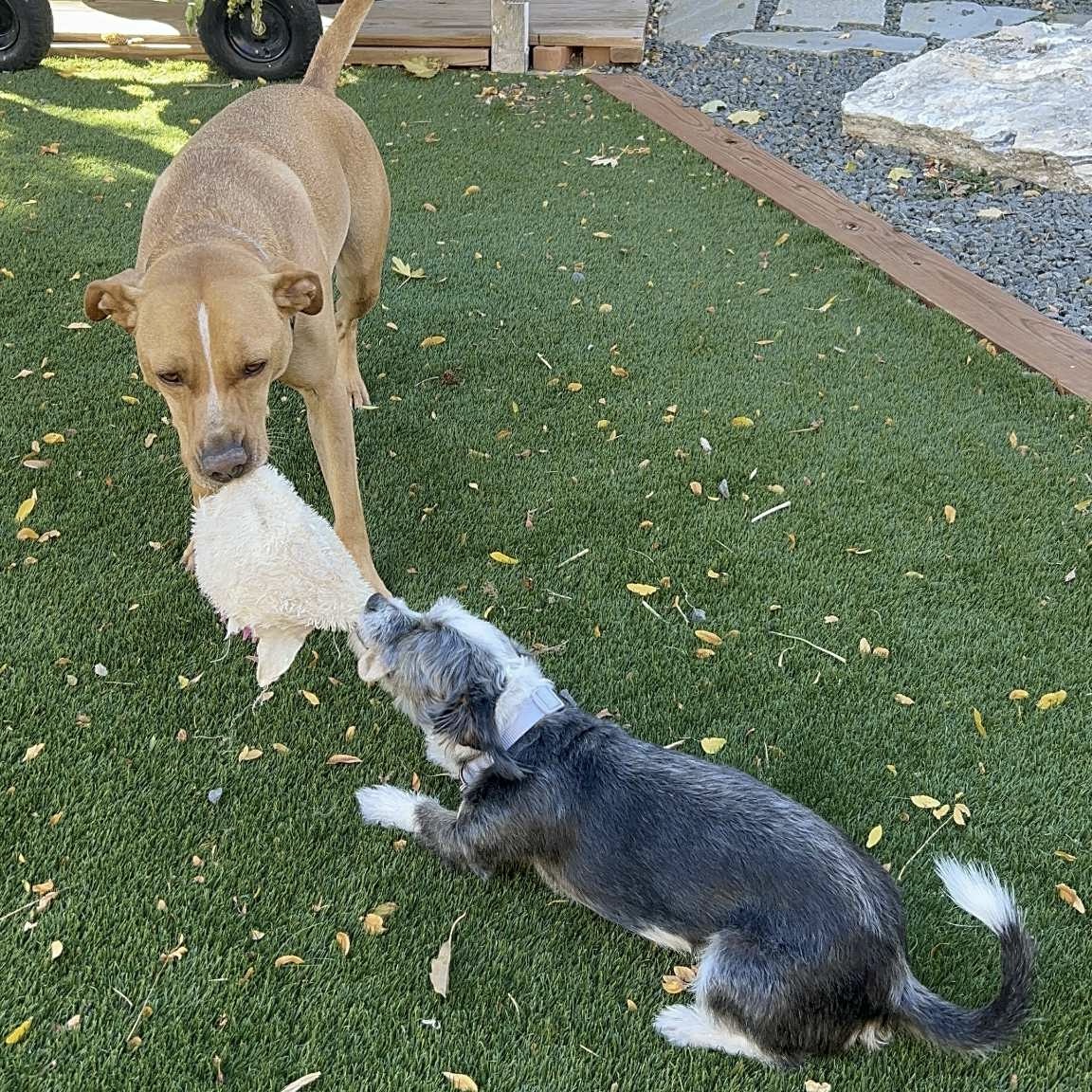 He’s house trained, crate trained, and trustworthy when left to free-roam. He tends to mark in the home, but has recently been neutered, which should decrease the urge to mark. He does well with a belly band if needed. Miles loves toys, chasing squirrels, and doing everything his foster brother does. He’d be happiest in a home with another friendly dog to play with and give him confidence when his humans leave the house.