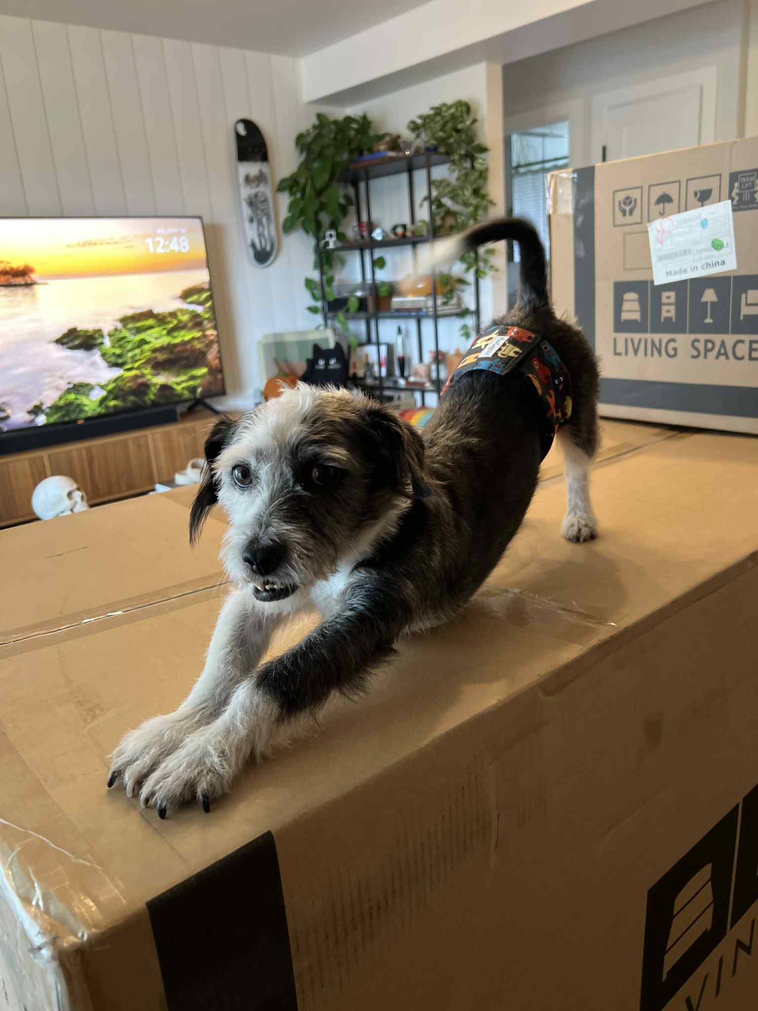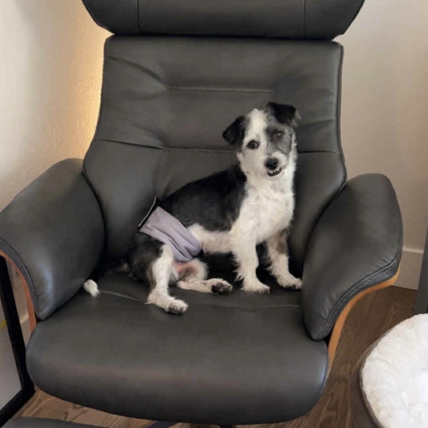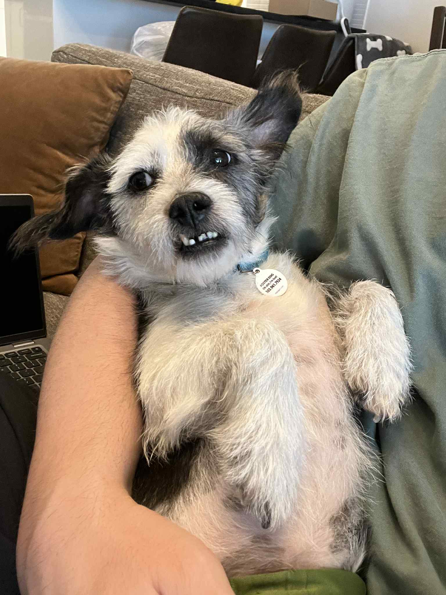 Miles hasn’t quite figured out how to walk on a leash, so he’d do best with a fenced yard where he can safely explore and play. With his moderate energy level, he’s just as happy curling up for snuggles as he is chasing after a ball. Miles has done well meeting new people and other dogs. He hasn’t been around cats or kids yet, but his calm, gentle nature suggests he’d adjust well. If you’re looking for a small, affectionate companion with an adorable underbite and a heart full of love, Miles might just be your guy!