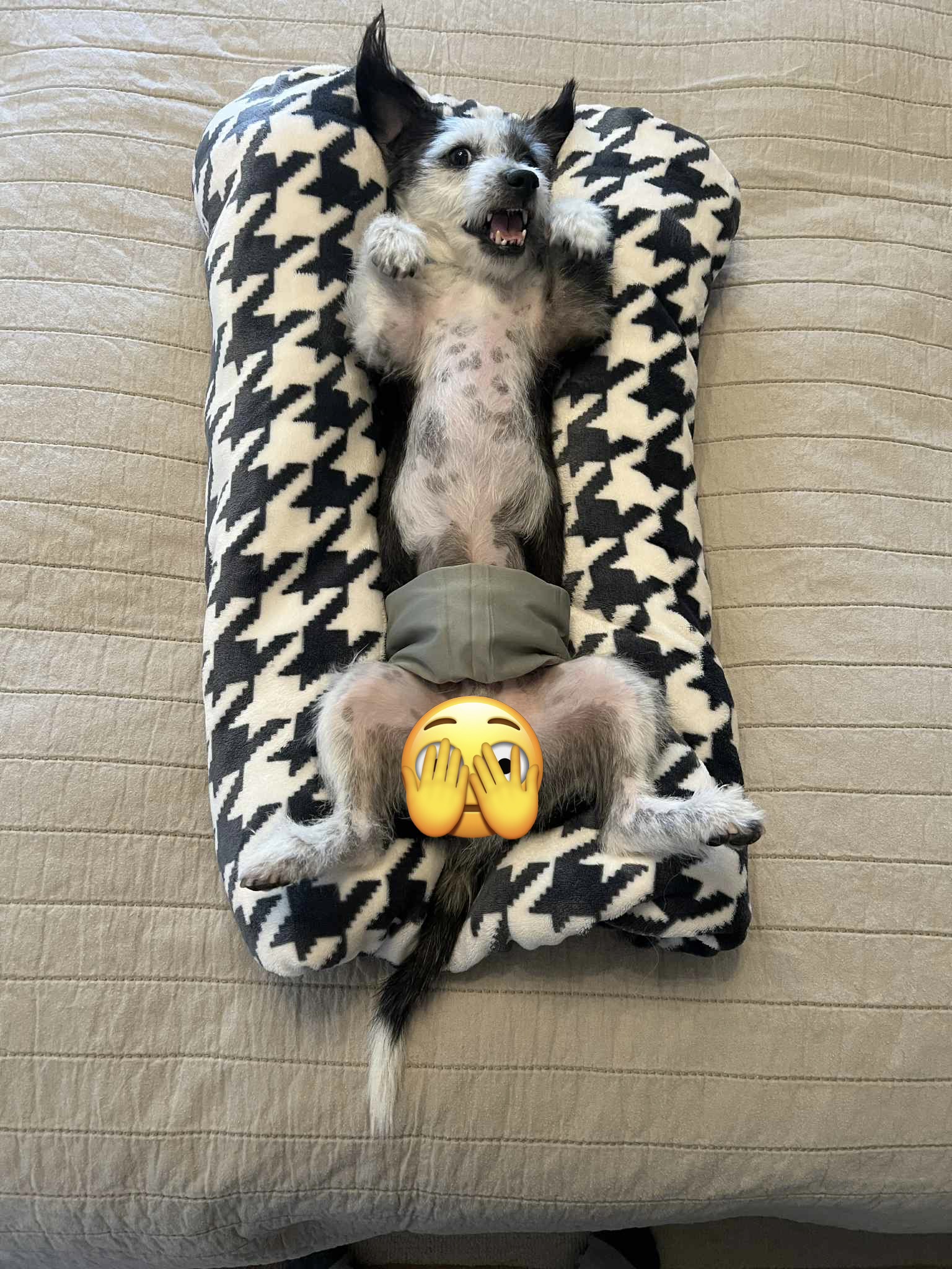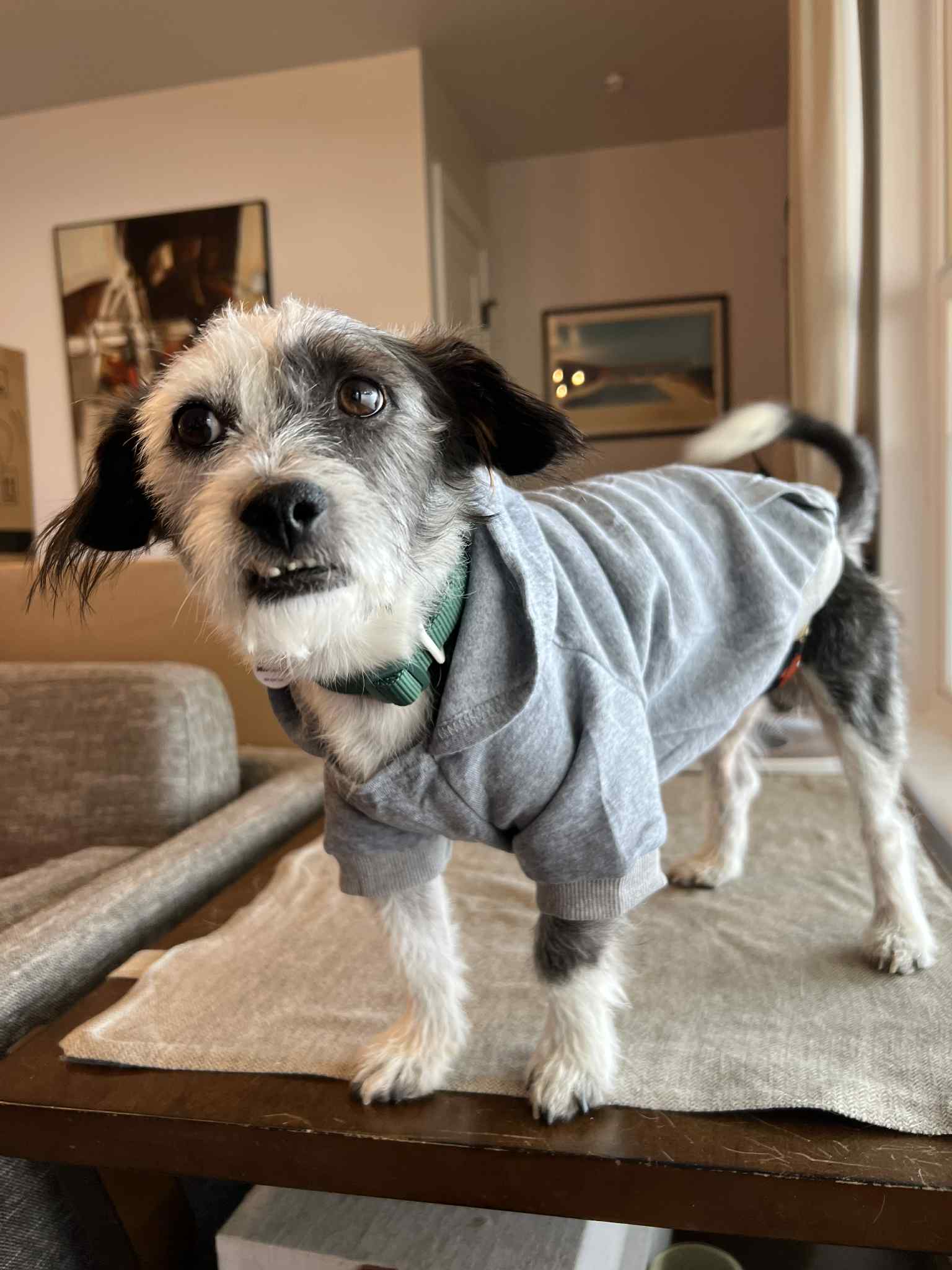 Miles is a 14-pound, Jack Russell Terrier mix (he’s short and long, so we think there’s some Dachshund in there), with a loving personality and easygoing nature. He’s estimated to be about 7 years old, so he’s past the puppy stage but still playful and full of life. Miles’ story started out rough — he was found as a stray and ended up on the euthanasia list simply because he was too scared in the shelter. Once he got to his foster home, though, his true personality came out almost immediately. He loves to cuddle and be held (preferably on his back like a baby!), follows his humans around the house, and often stands on his hind legs to politely ask to be picked up.