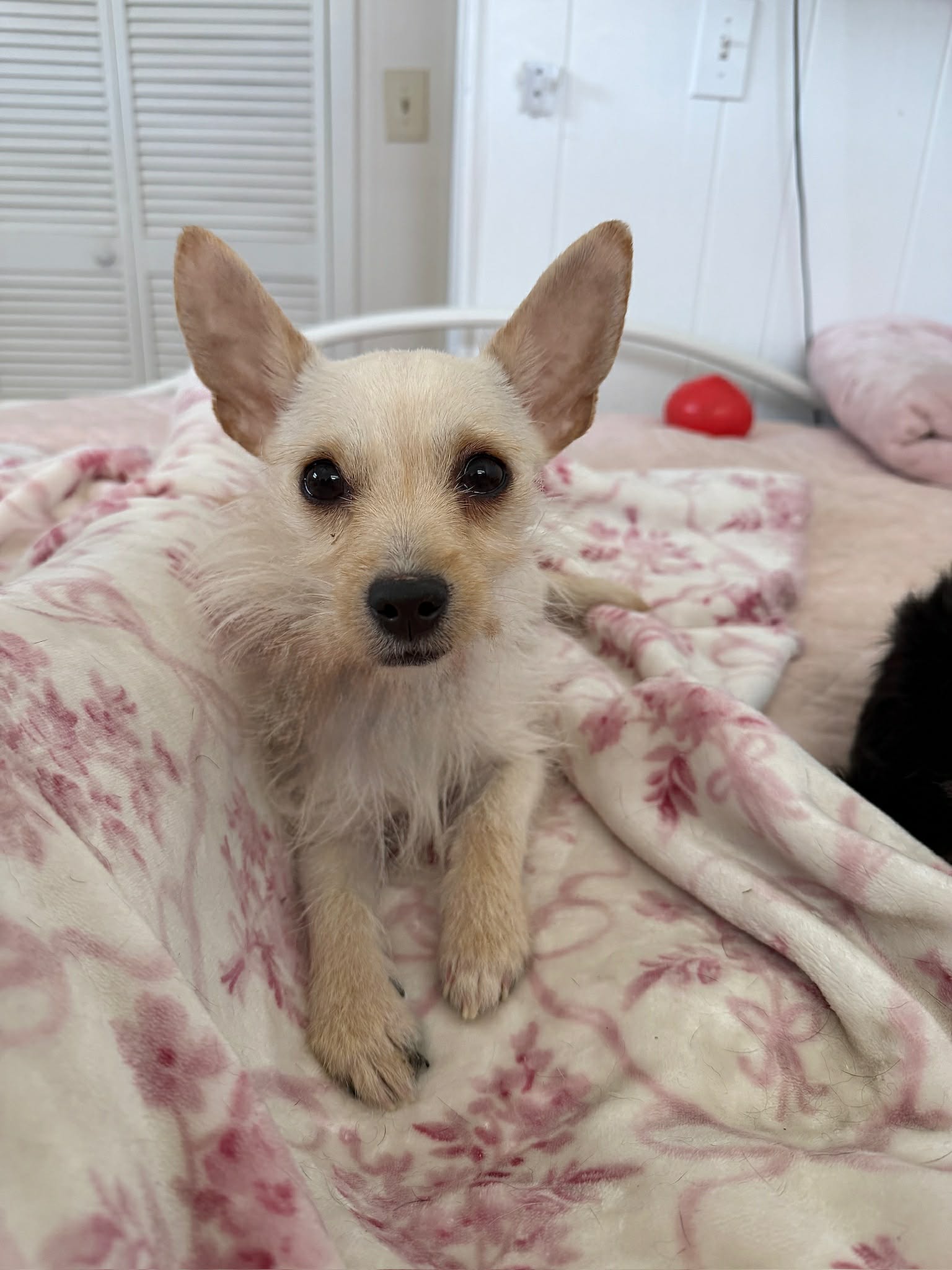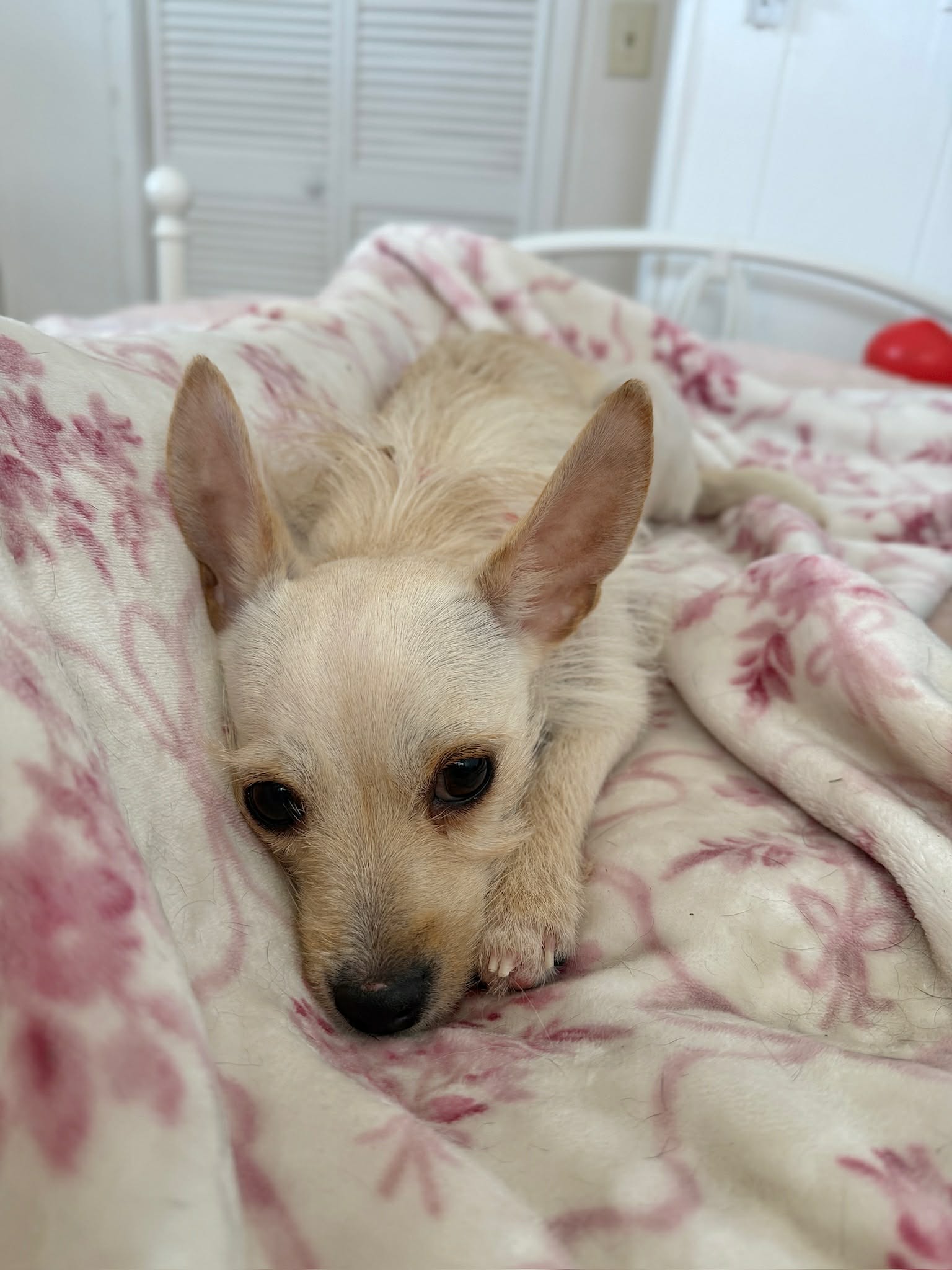 She absolutely adores people and soaks up every bit of attention she can get. At night, Minnie’s favorite place to be is tucked under the covers, making her the ultimate cozy companion.