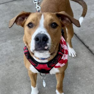 Since arriving in her foster home, Misty hasn’t had a single accident. She does wonderfully with playful dogs and doesn’t seem to mind cats. While she hasn’t been around children yet, she has been great with people, so we suspect she would do well in a home with kids. She is still polishing up her house manners, like remembering which items are appropriate chew toys, and she takes her role as neighborhood watch seriously by alerting her family to strange people and dogs roaming around outside.