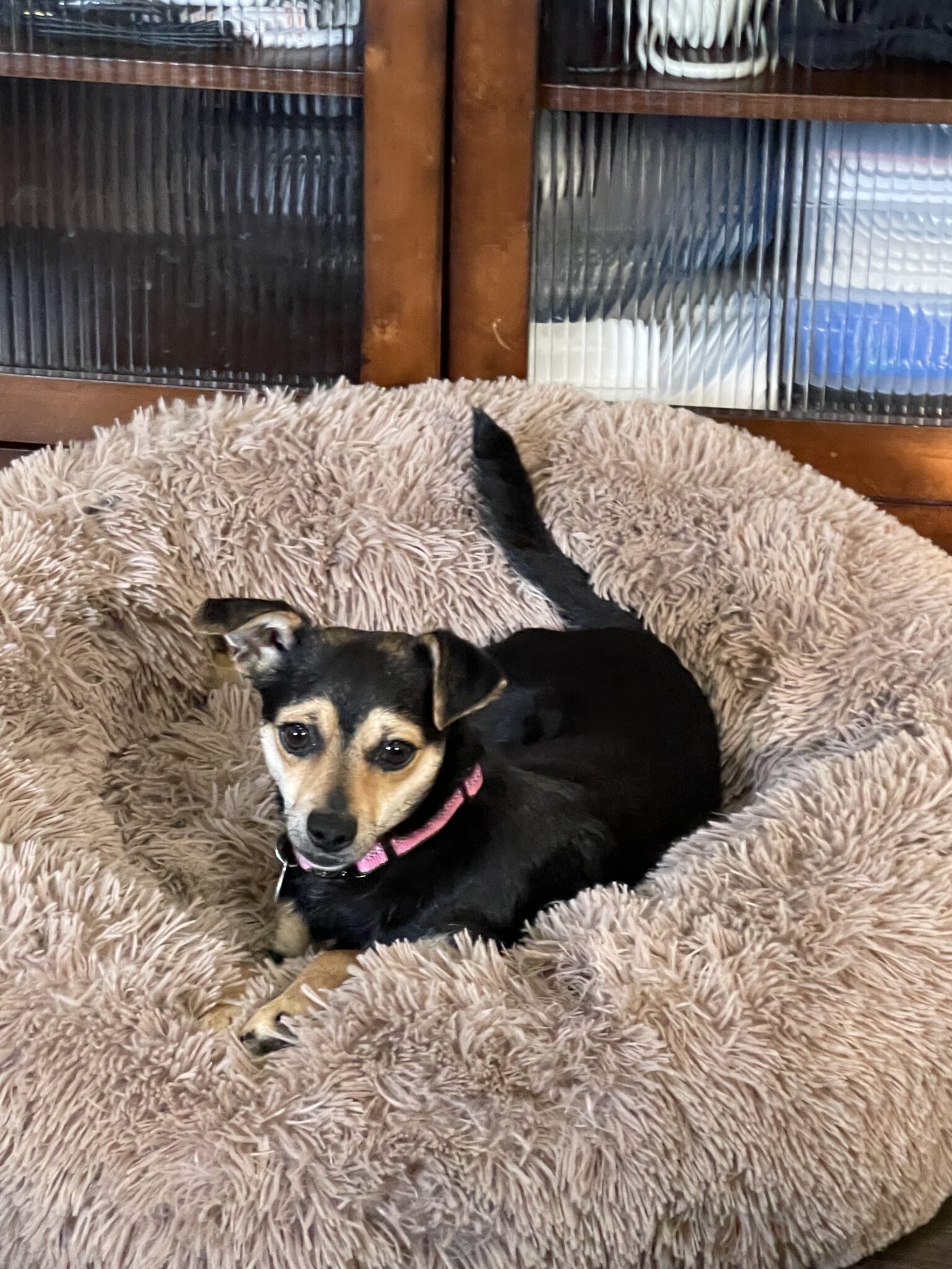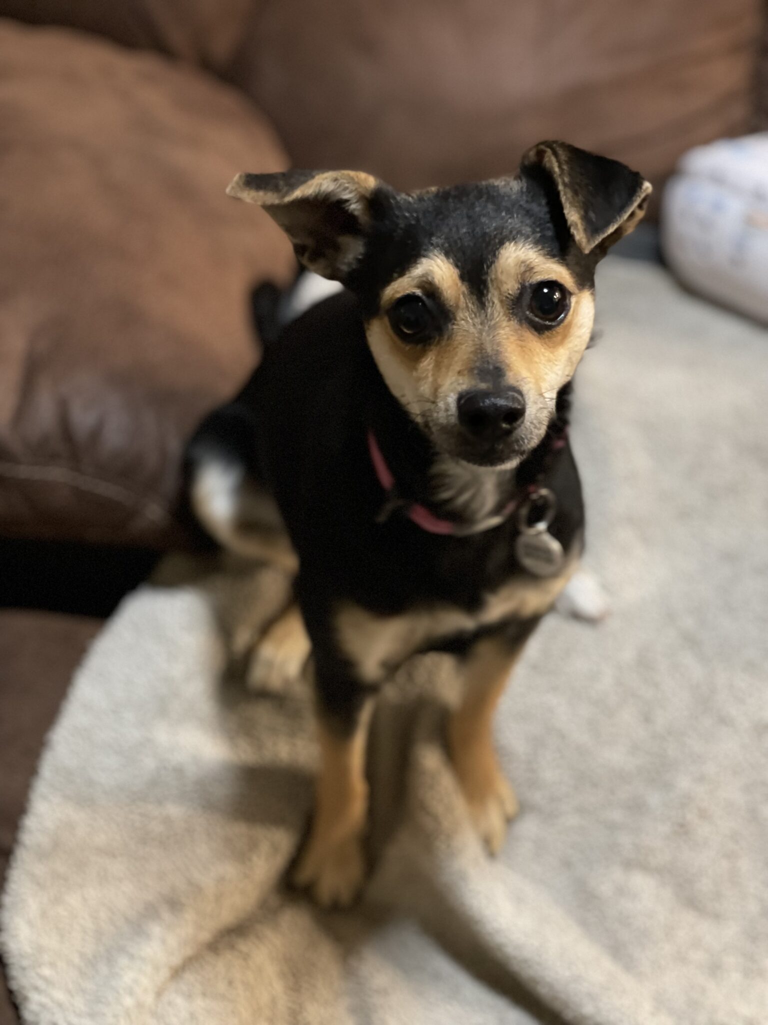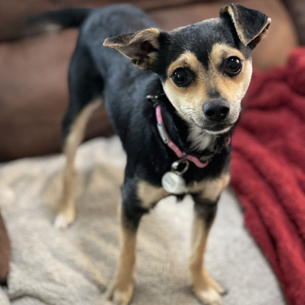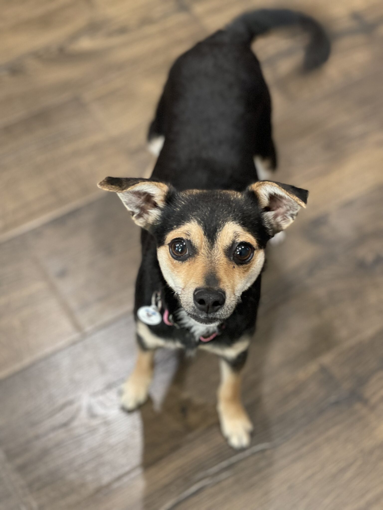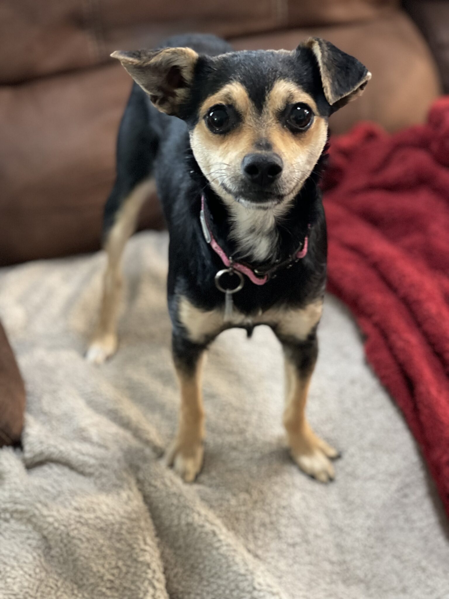 Meet Misty, a 2 year old Chihuahua/Min Pin mix with a big personality packed into her tiny 13 lb body. This friendly little girl is both active and snuggly. She loves playtime with toys and other dogs, going out for walks, and smothering her people in kisses. She brings fun and affection wherever she goes!