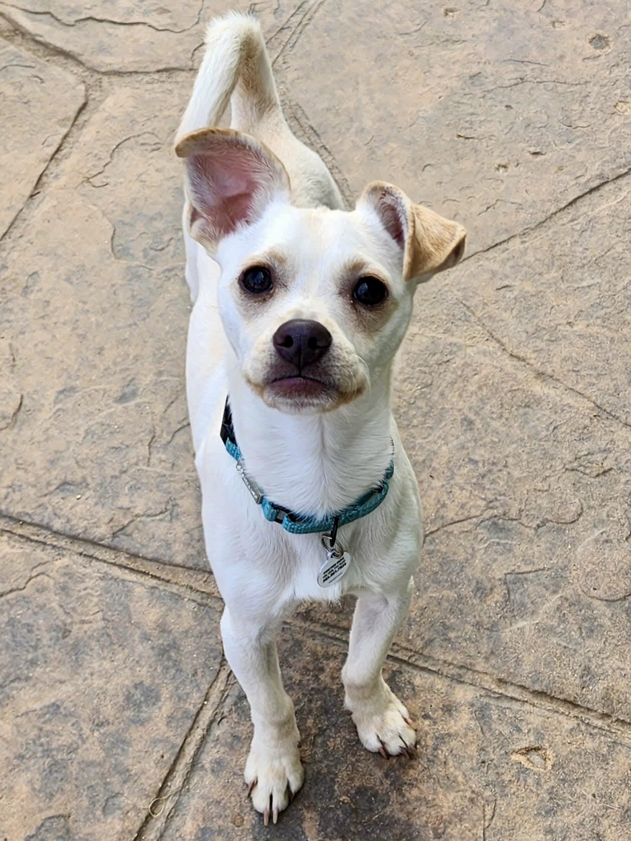 Mort is one brave Chihuahua — confident, curious, and not afraid of much at all. He loves being carried around like the little prince he is and is happiest when he’s close to his people. Mort is smart and food-motivated, which makes training fun and rewarding.