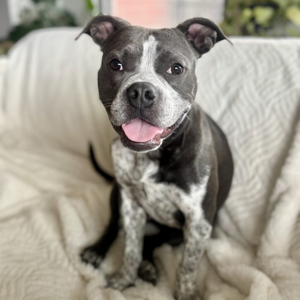 At just 33 pounds, Nickie is the perfect lap-dog-sized companion with the cutest speckled coat and an even brighter smile! This 3-year-old (possibly Pit Bull/Boston Terrier mix) is spunky, playful, and full of personality — the kind of dog who can make you laugh every single day.