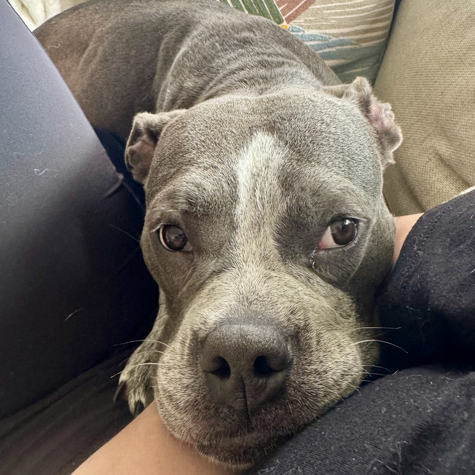 At just 33 pounds, Nickie is the perfect lap-dog-sized companion with the cutest speckled coat and an even brighter smile! This 3-year-old (possibly Pit Bull/Boston Terrier mix) is spunky, playful, and full of personality — the kind of dog who can make you laugh every single day.