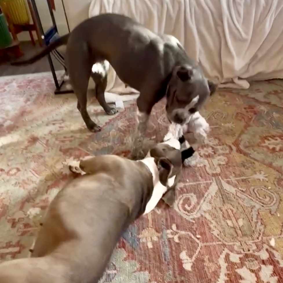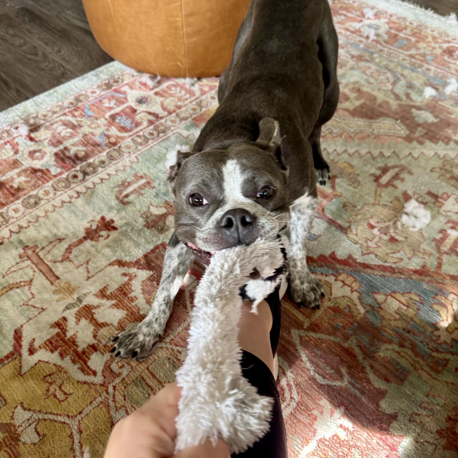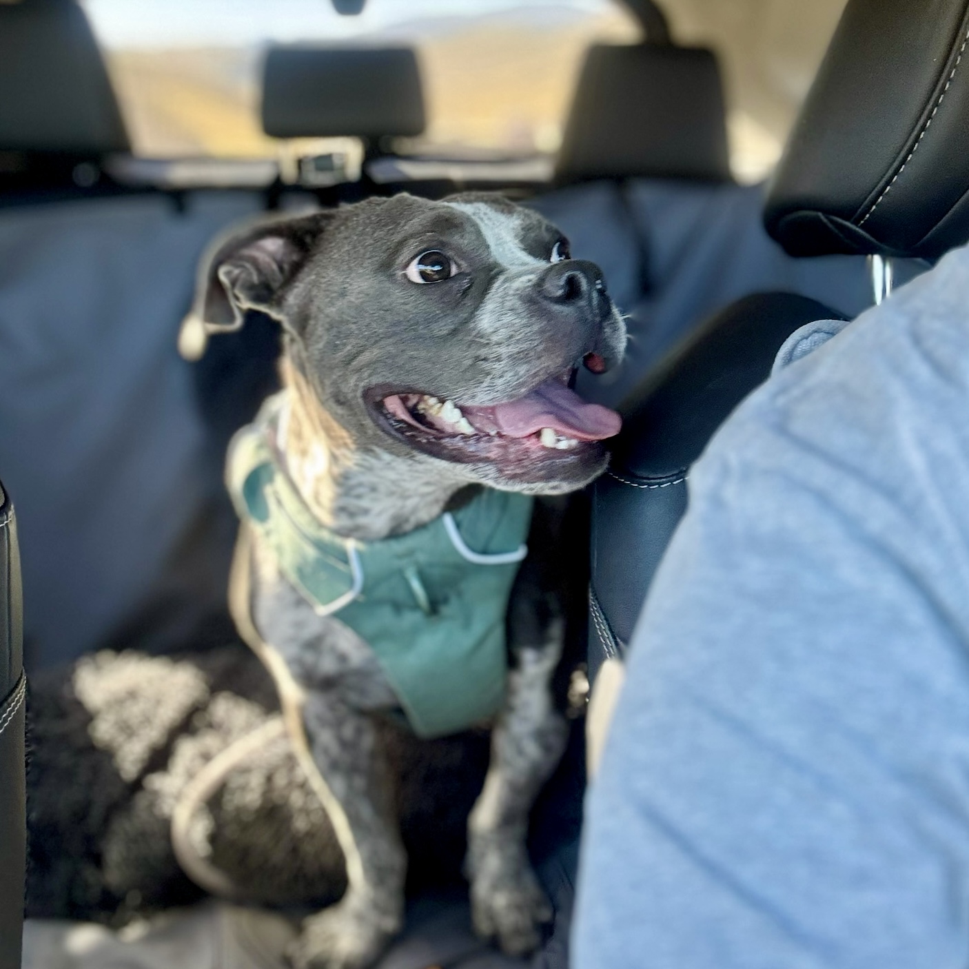 Nickie adores people and is always excited to make new dog friends. She listens well to her older foster sibling, crates like a champ, and seems to be house trained. She has just the right balance of zoomie energy and cuddly sweetness — one minute she’s playfully bouncing around, and the next she’s curled up for snuggles.
