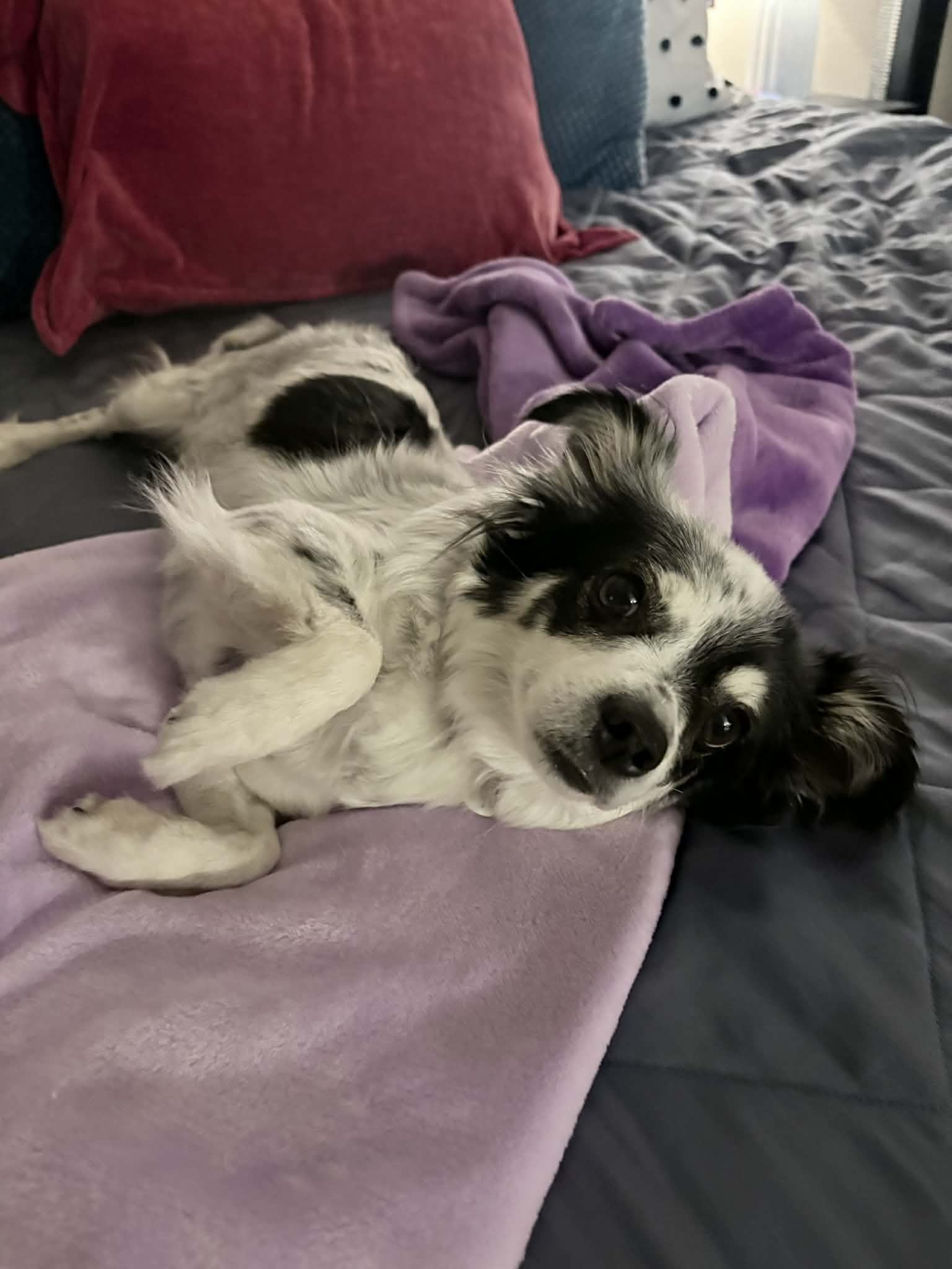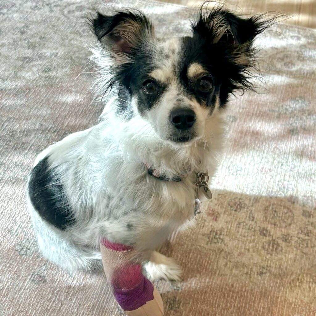 Pappy is a 1.5-year-old Pomeranian/Chihuahua mix with a huge heart and a confident little strut. She’s potty trained, crate trained, and a loving, playful companion who thrives when she’s close to her people. Pappy is sweet & affectionate, and she absolutely loves going on walks. She’s friendly with strangers, does well in the car, and is easy to transport, though busy public spaces can make her a bit nervous. At home, Pappy is best left crated if she’s home alone as she can be a bit anxious (Work from home? Retired? You’re our target audience here) . She’s good with other dogs, though she can be a little bossy and isn’t afraid to communicate when she needs space. She’d also be perfectly happy being an only dog. Pappy can be exuberantly mouthy when she plays and barky when she’s protecting her home (thank you, Chihuahuas, for your service). Therefore, she is best suited in a home with kids 8+ and a fenced in yard. While she considers herself lucky for making it out of the shelter and into a foster home, Pappy had a streak of bad luck that landed her with not one, not two, but three issues with her legs. 🤦🏼♀️. She suffered some sort of accident prior to entering MHCR that left her with a fractured pelvis (and shattered femoral head) and a luxating patella. These items were successfully addressed surgically and Pappy was almost cleared for adoption….then she ran her mouth to a French Bulldog. That little scuffle landed her with a broken front paw. Thankfully, she just needed a splint for a couple of months—no additional surgery required. Alas, it’s officially time to find her forever home.
