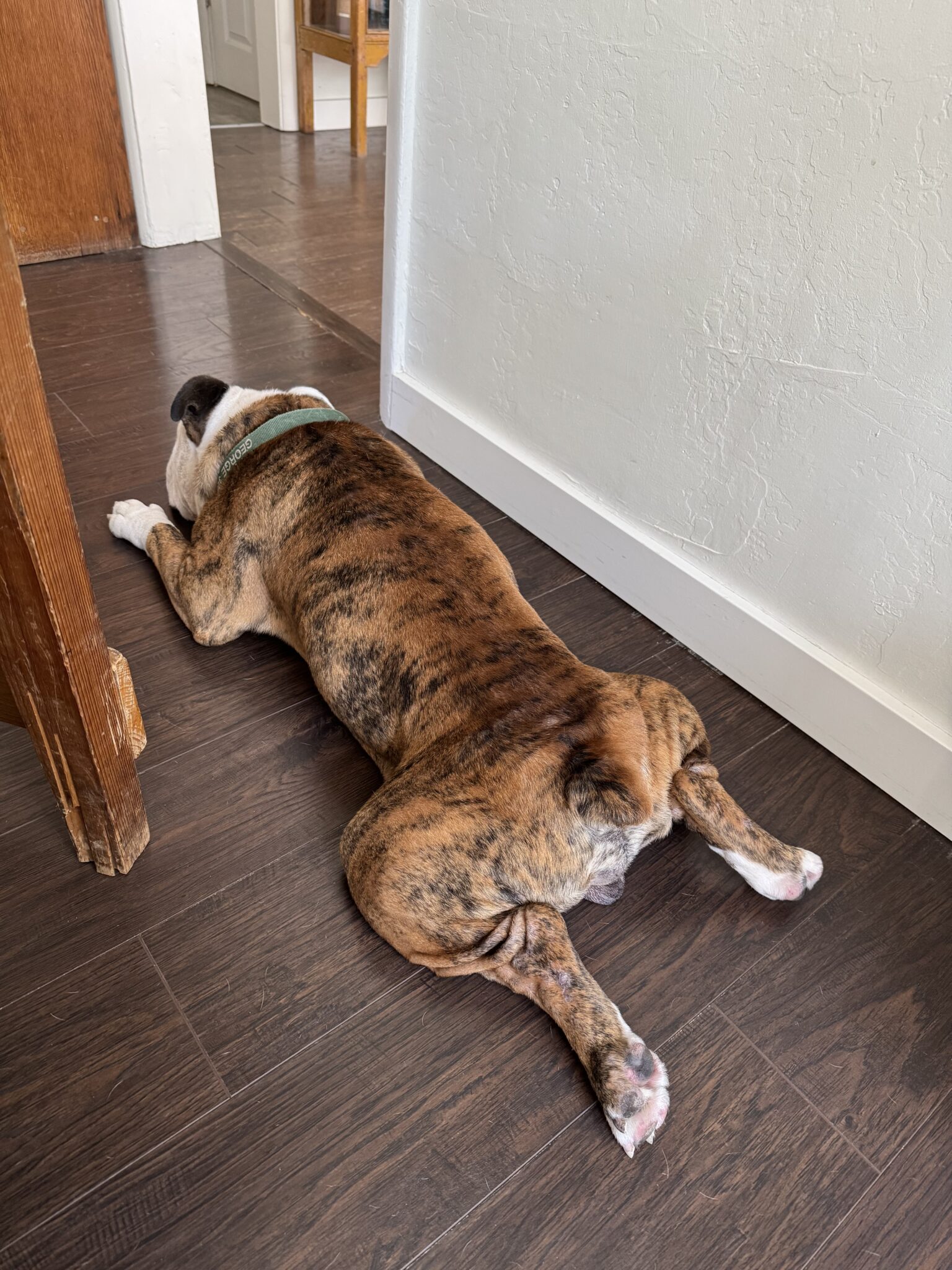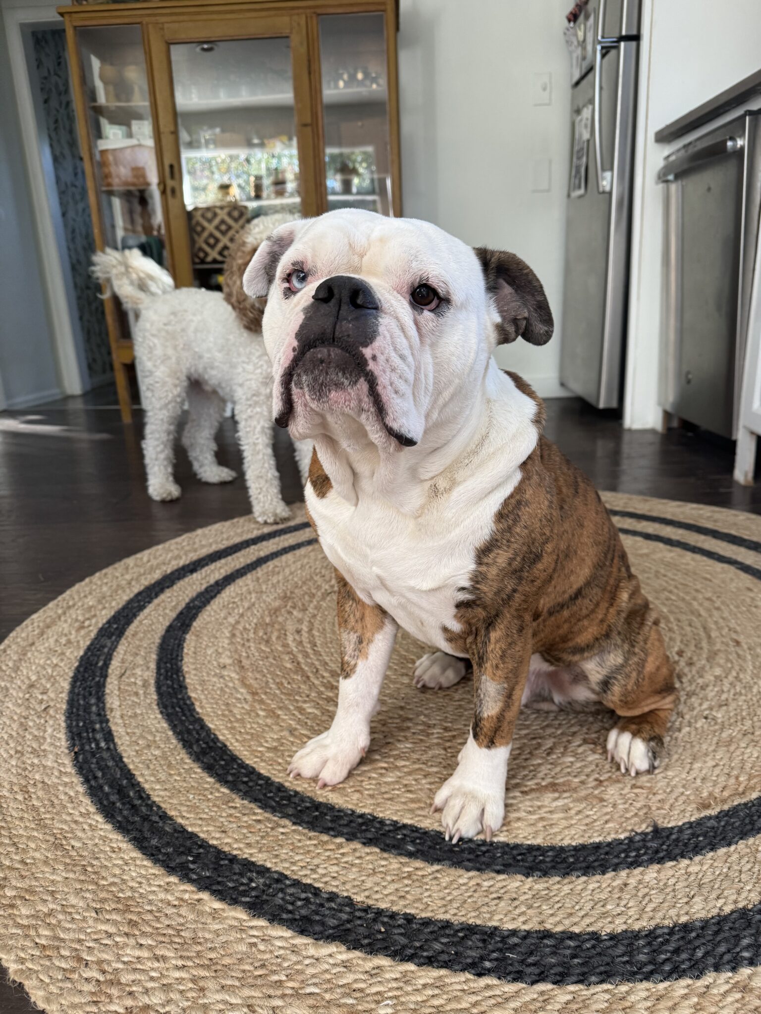 Meet Randy, the adorable 3-year-old bulldog with a wiggle butt! He’s a total sweetheart, getting along great with dogs, people, and kids. He’s always by your side, and he loves cuddling and sleeping with you. While he can be a bit stubborn and doesn’t always want to go into a kennel, he’s learned that if he holds out long enough he gets treats to go in one. Smart cookie! Randy gets super excited when you come home and loves jumping up for a hug. When Randy first came to his foster mom, it was apparent his soft palate was way too long (he struggled to pant effectively). Randy had a surgery to fix that and now he breathe much, much, better! Randy has a mild case of dry eye (as most bulldogs do) and he’ll need eye drops for the rest of his life, but he’s mastered getting them and handles it like a champ! Oh, and he absolutely loves walks — especially now with his new and improved throat!