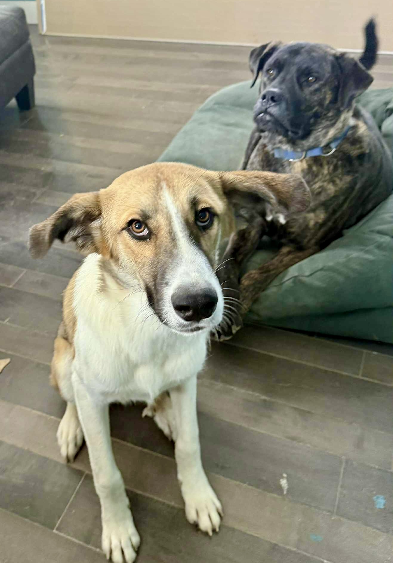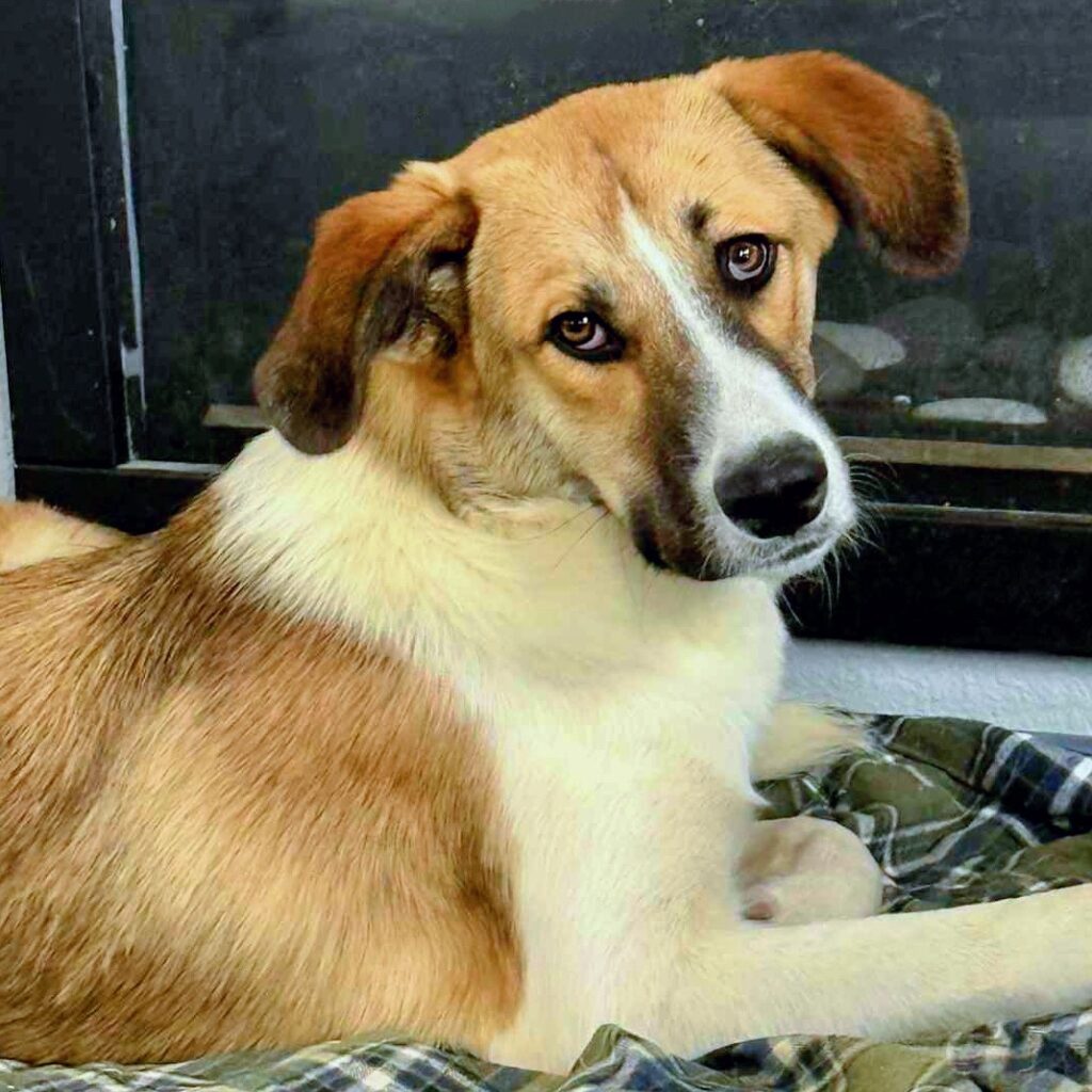 Riddle me this: What has 472 toes, a heart of gold, and a super soft coat?! REX! Rex is a 10 month old mixed breed mutt. Due to his assortment of toes on his back feet, we are classifying him as an Anatolian shepherd mix — could be Pyrenees or could be Saint — but think pint-sized version. He’s presently around 50 lbs and we don’t expect him to mature much larger than that. Rex is an awesome dog with a great personality and he’s amazing with his canine friends. He’s social and friendly to people, too! Rex uses a doggie door, is medium energy, and is well mannered in his foster home. He’s the type of guy that’s up for weekend adventures and catching up on late night TV during the week.