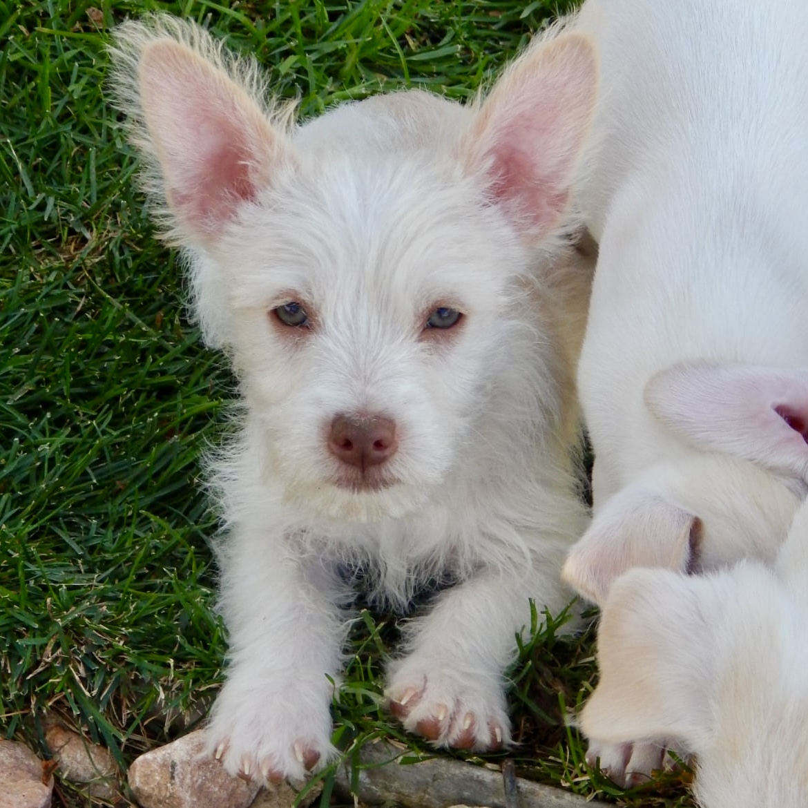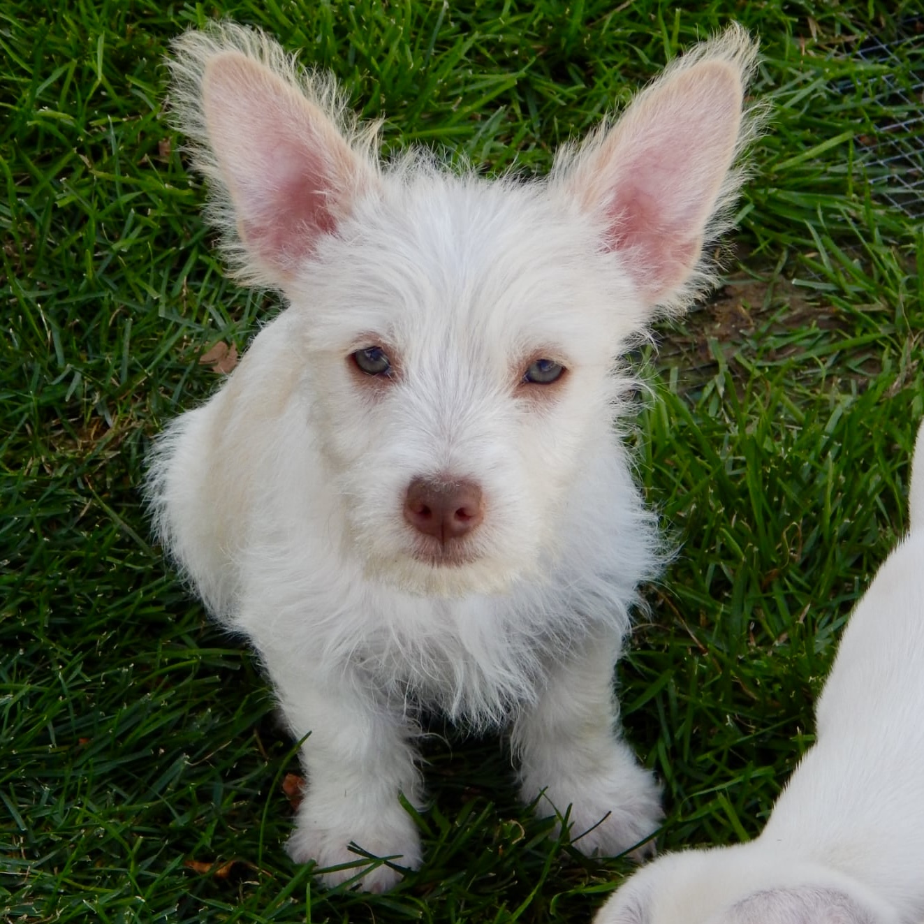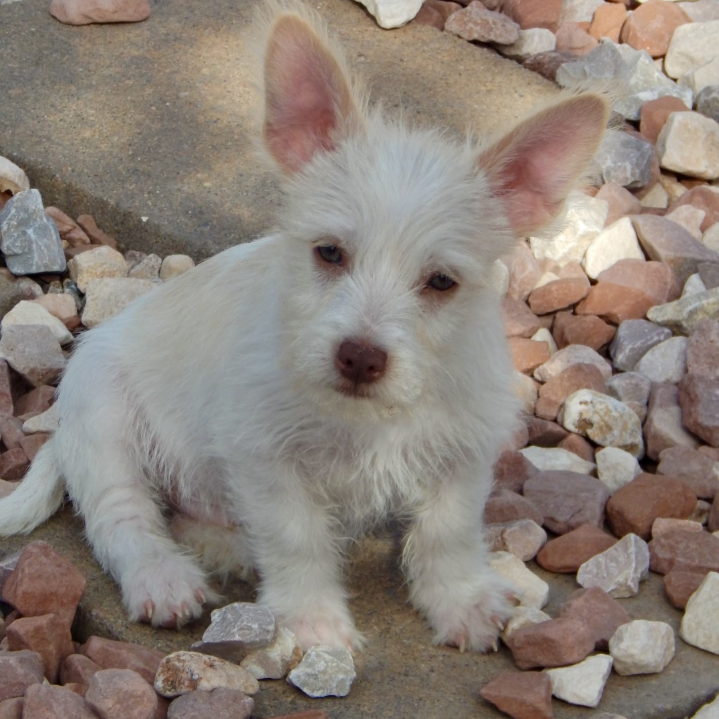 All the ladies love Riley! This handsome dude is an 8-9 week old, male, West Highland Terrier mix. He has a soft coat, captivating eyes, and a lovely personality to match. He’s outgoing, playful, and oh so sweet. Riley came to MHCR from a high kill shelter with his 5 other brothers, 1 sister, and mom, Rosie (pictured below). We suspect he will mature at or under 16 lbs, but it’s difficult to say for sure since we don’t know anything about his dad.