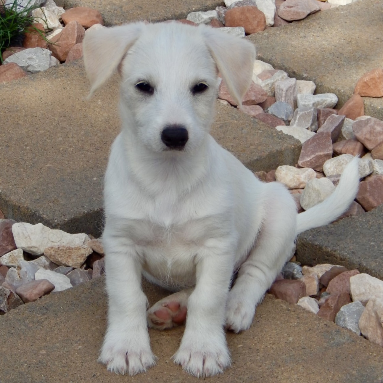 Ryder such handsome little fair-haired beauty. He’s an 8-9 week old, male, West Highland Terrier/Chihuahua mix (or something along those lines). He’s as sweet and innocent as he looks and we’re certain the terrier in him won’t make him a terror later in life. Ryder came with his family of 5 brothers and 1 sister and their mom, Rosie, from a high intake/high kill shelter in Texas. He’s seen a lot during his short time on earth, but you’d never know it when you watch him prance around!