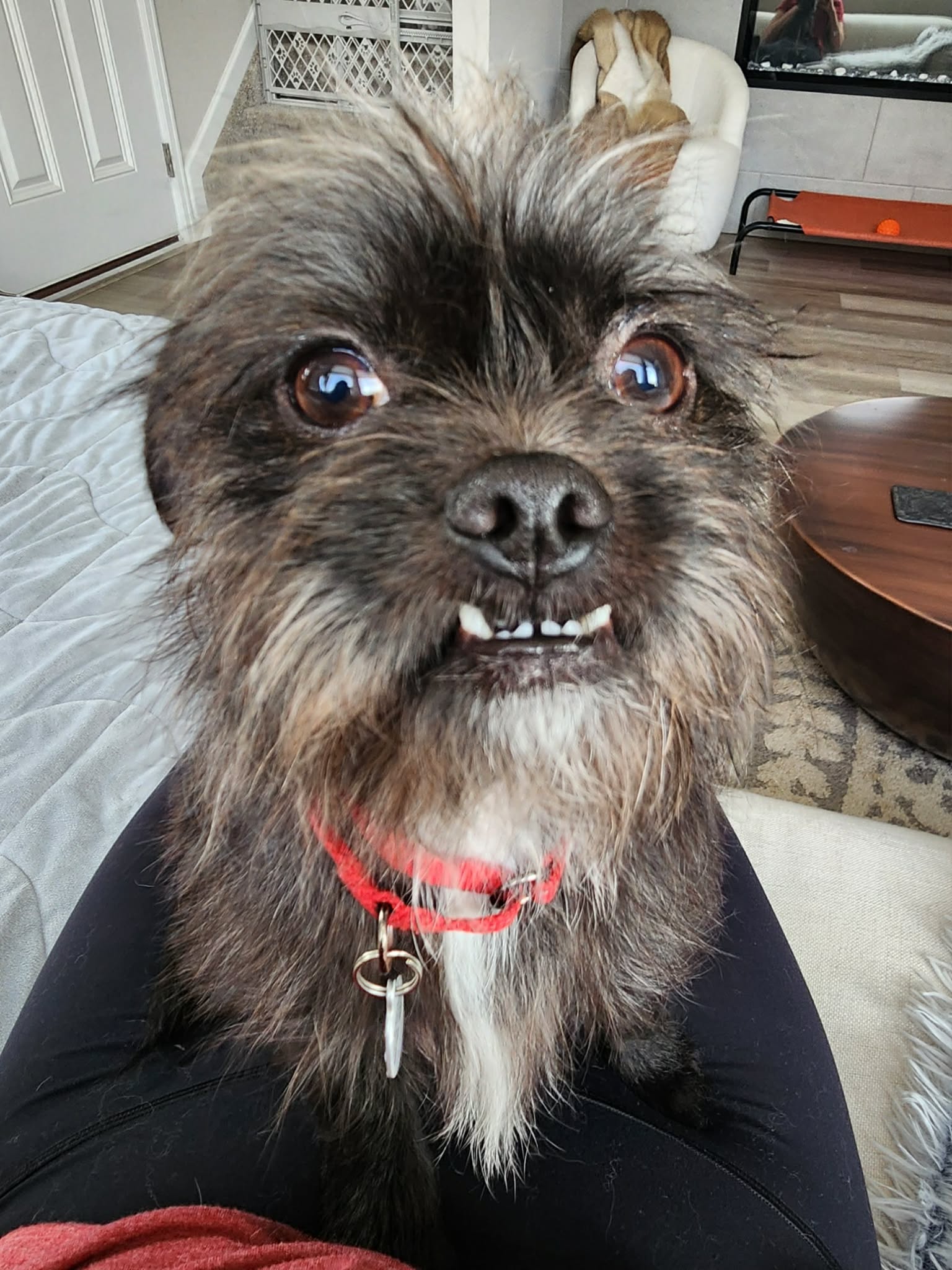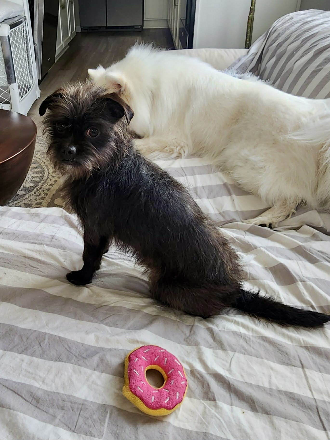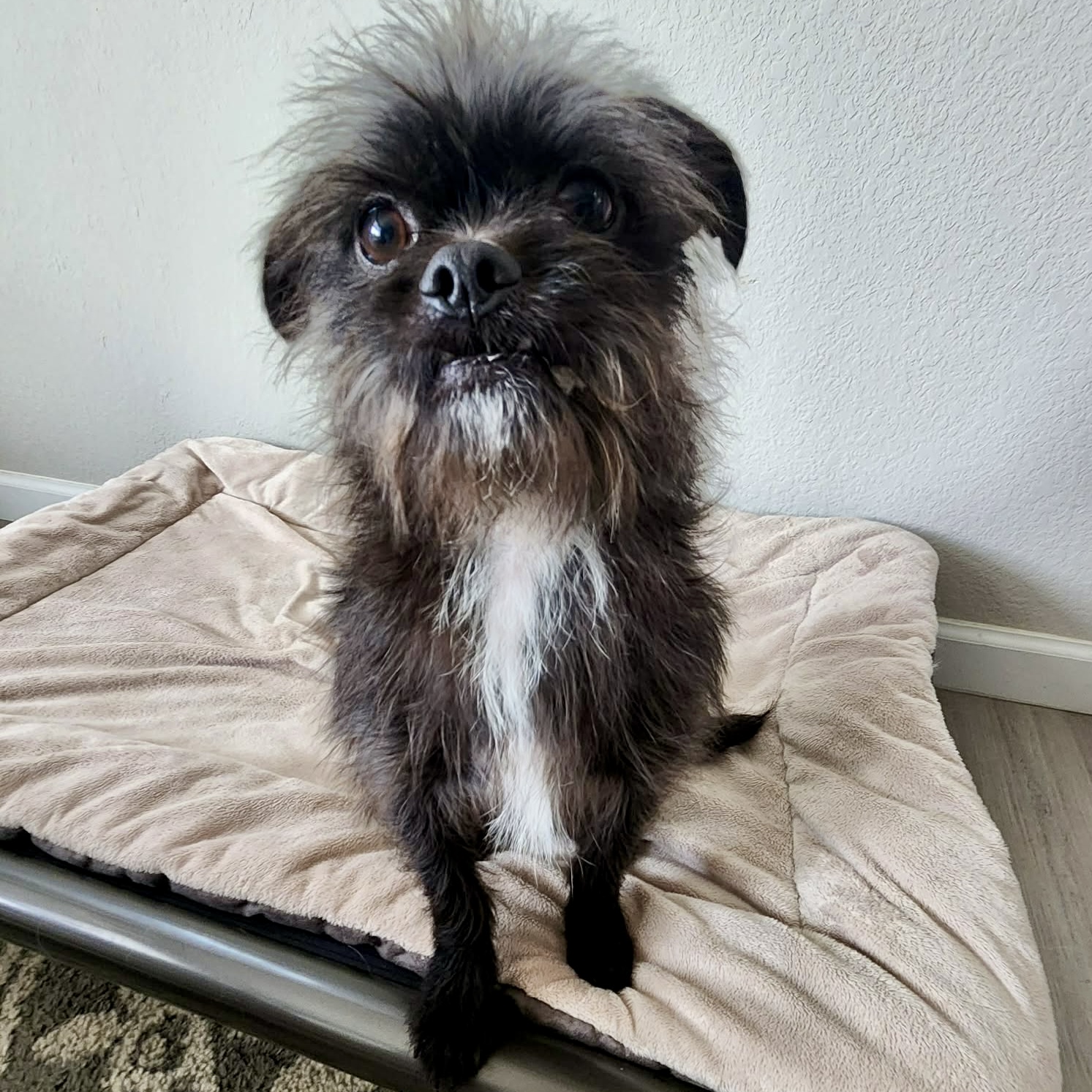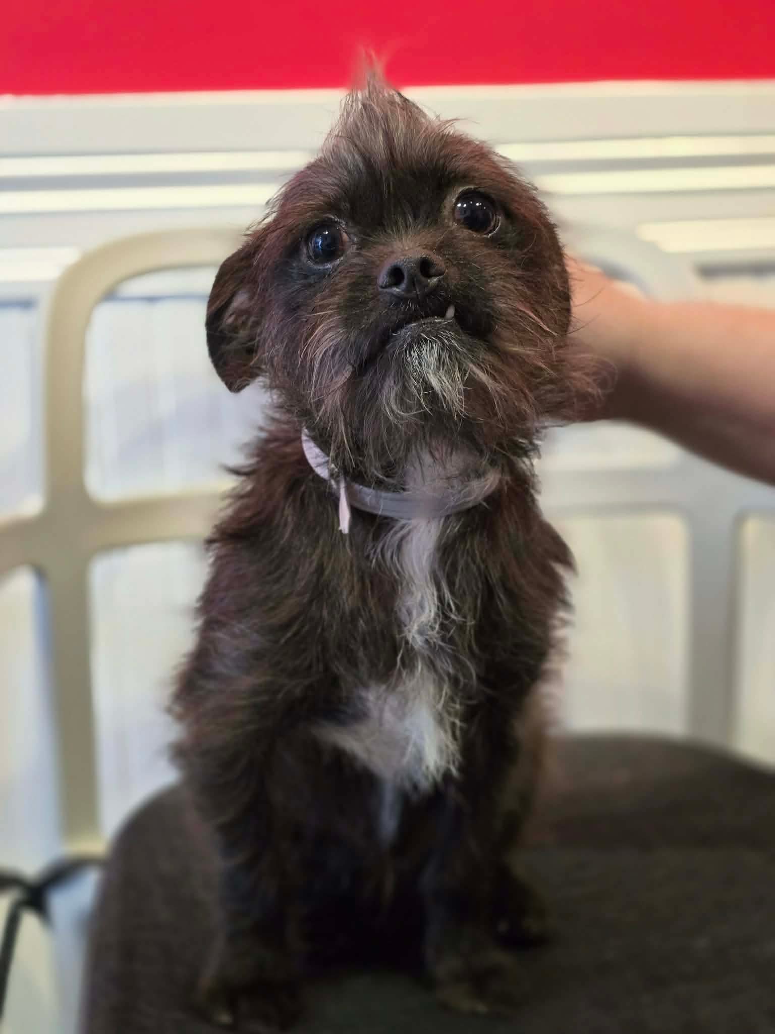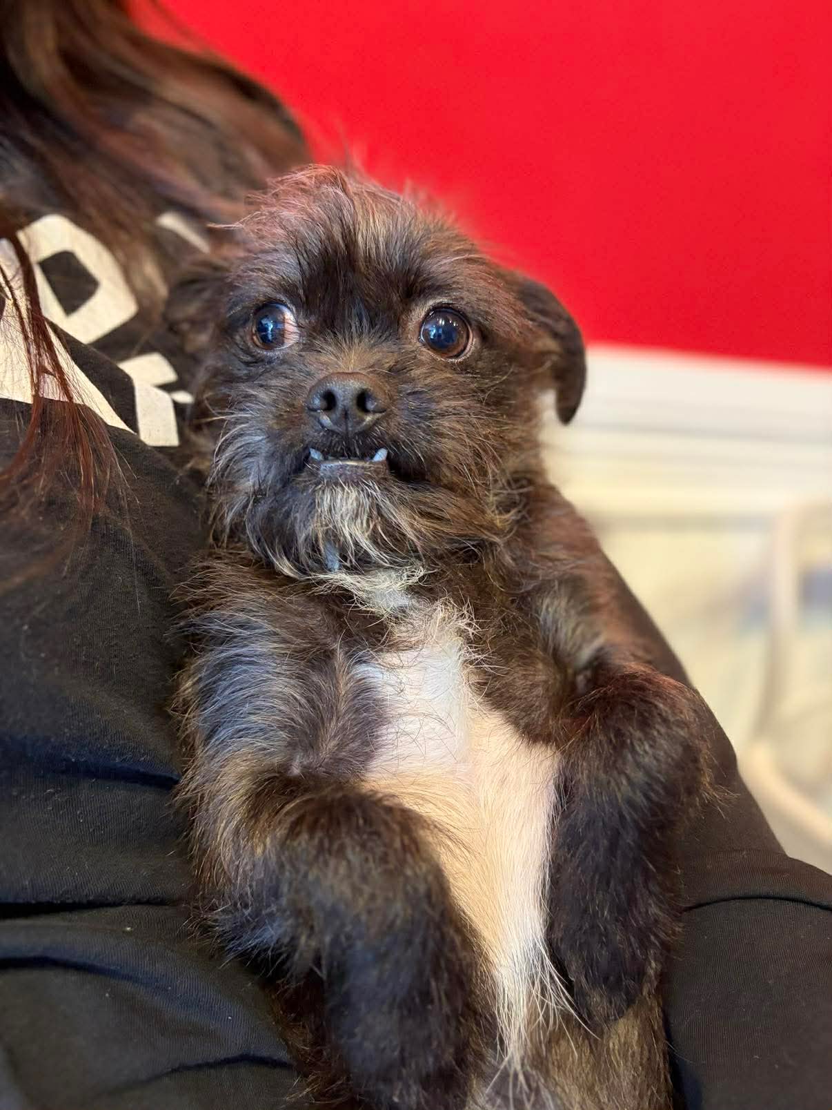 Meet Sprout — a small, scruffy sidekick with big personality. When Sprout arrived at his foster home, he may have thought life was already “as good as it gets.” But we know there’s a forever family out there who will make this little guy even happier — and wigglier — than he ever imagined. We believe he is a Brussels Griffon mix with the most adorable underbite sprinkled in. With his scruffy good looks and bright, knowing eyes, Sprout will quickly wiggle his way into your heart … and lap. He loves to snuggle and be held, but don’t underestimate this 9-pound wiry clown. This tiny terrier doesn’t think his size should limit him in any way. Going on walks, playing fetch, and tearing around the yard with his foster brother are his jam. Sprout is incredibly sweet and playful — he adores cuddles, soft blankets, being held, and chasing after his wide selection of toys. He does wonderfully with other dogs and is smart and eager to learn. He knows how to sit politely, is mastering the art of the crate, and walks nicely on leash. After being left behind, Sprout is more than ready for a forever home where he’s chosen every day — a place full of snuggles, cozy blankets, and people who can’t get enough of his adorable face and spirited personality.