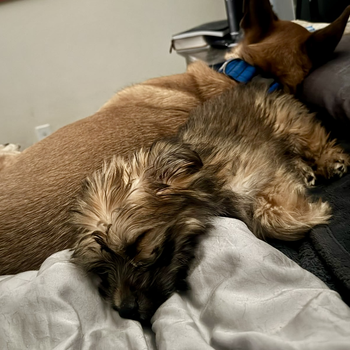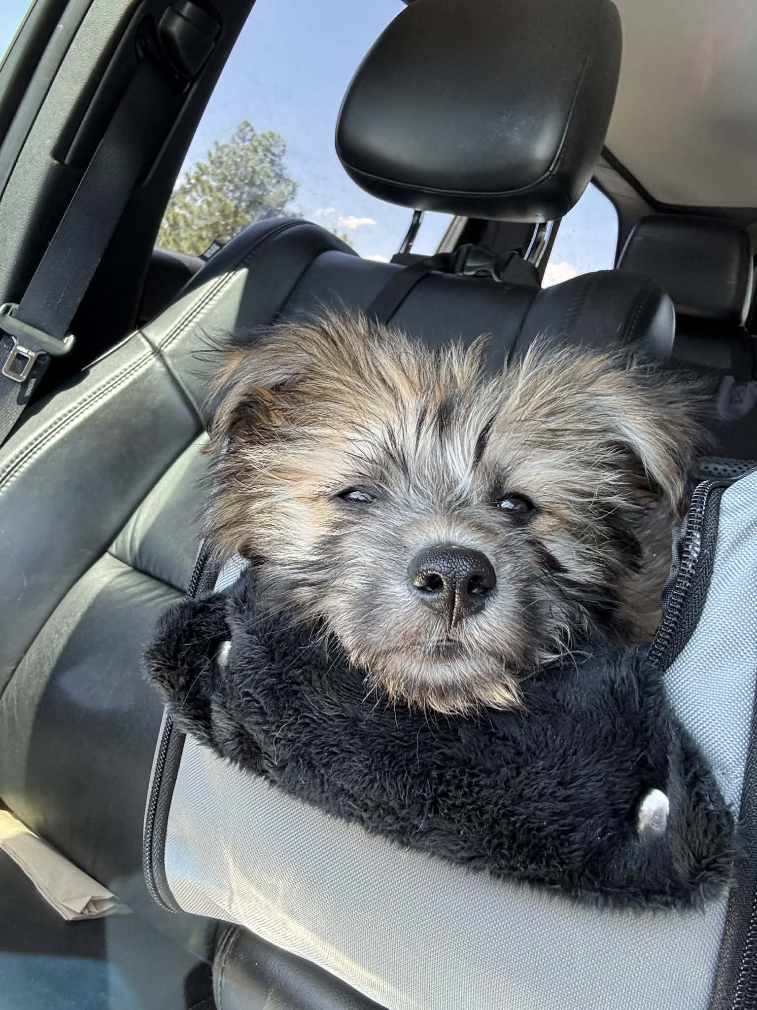 This little adventurer is all about making friends—humans, dogs, you name it. He adores snuggling up with his canine buddies just as much as he loves exploring new sights and smells. Whether he’s trotting along on a mini adventure or curling up for a cozy nap, Stanley brings joy wherever he goes.