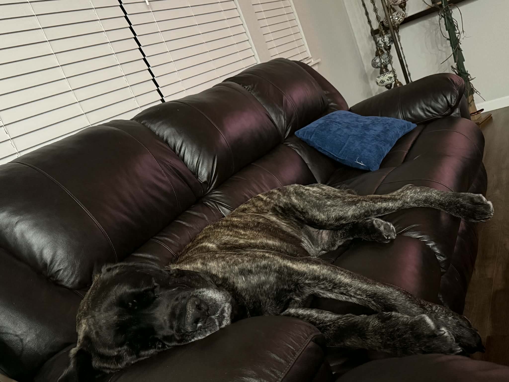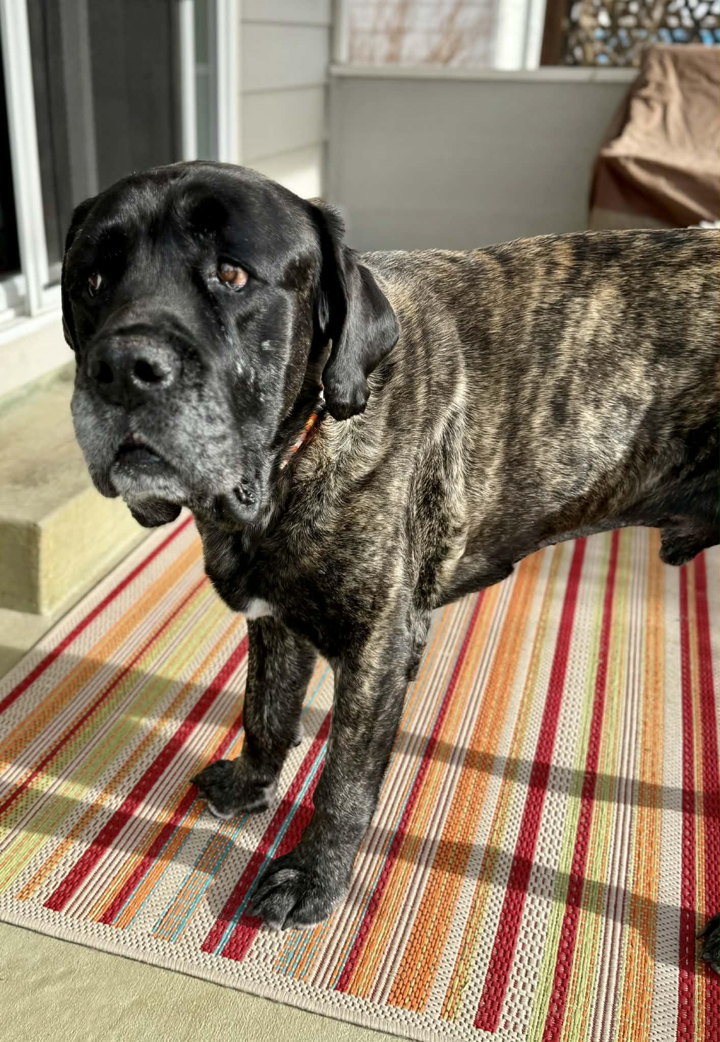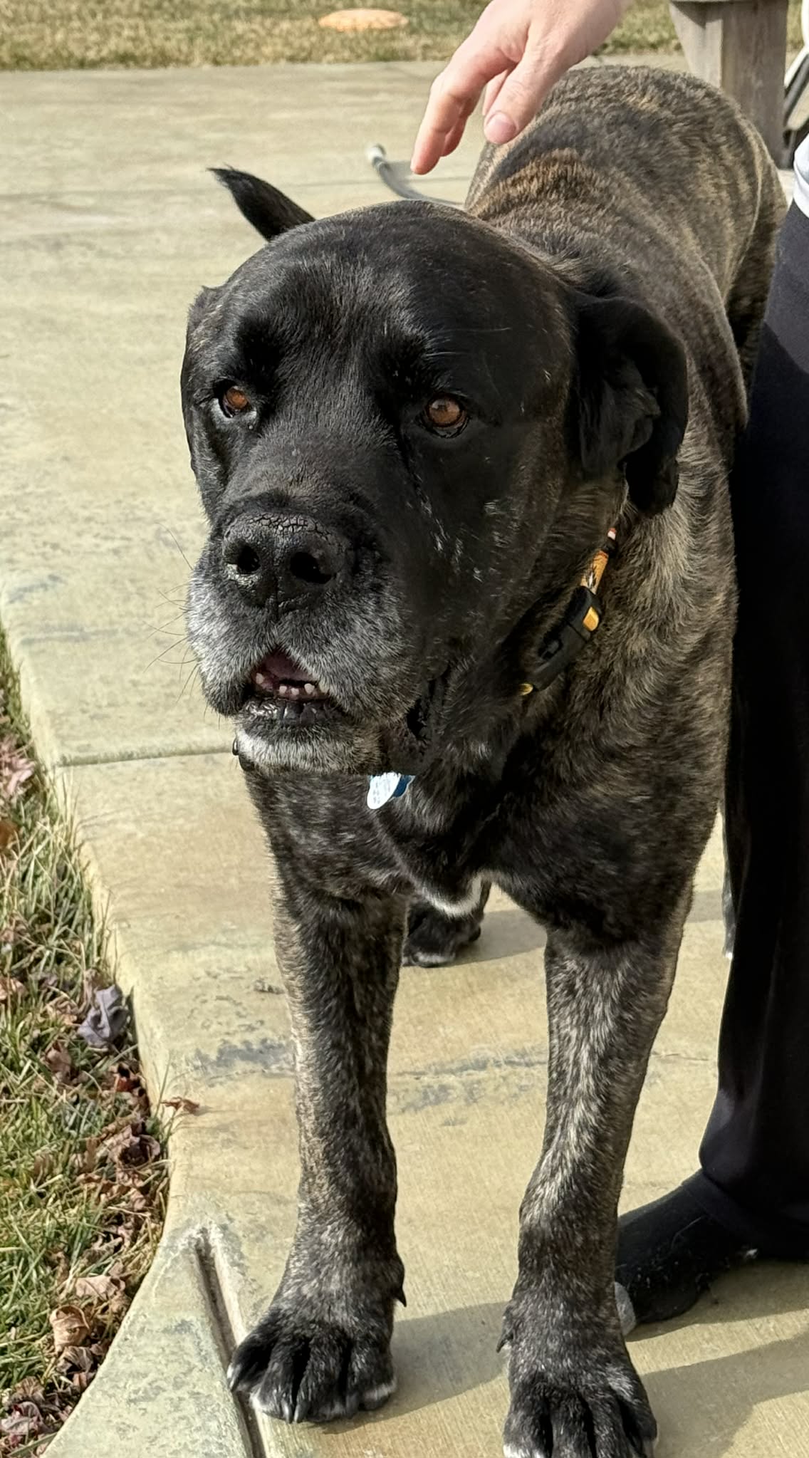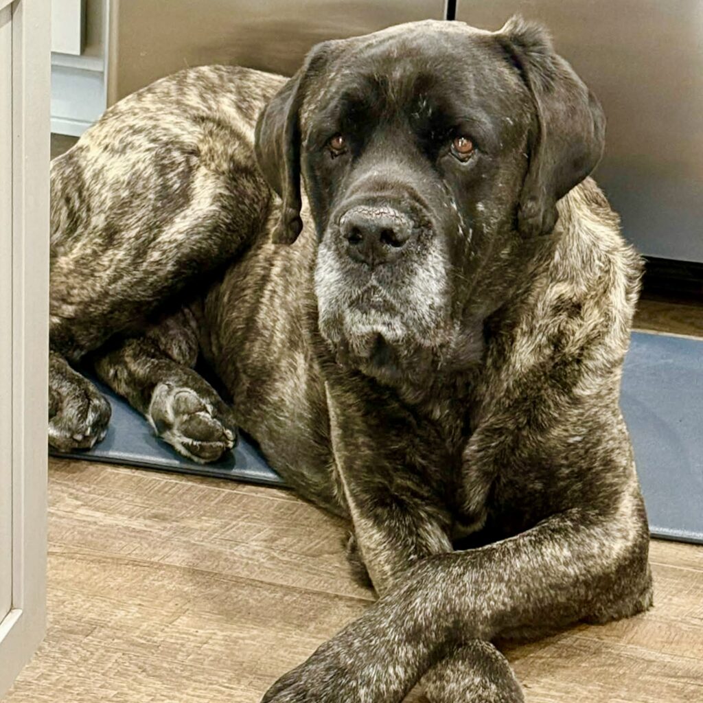 Tank is a big, lovable couch potato who lost his home through no fault of his own and is ready for a fresh start. True to his mastiff roots, he’s lazy, slobbery, and happiest lounging by your side (on the couch). He’s friendly with dogs and cats, enjoys meeting new people, and has great house manners. Tank is an easygoing, gentle giant looking for a soft couch and a forever family to call his own. 🐾. Tank is a lean 135 lbs with a hefty bone structure.