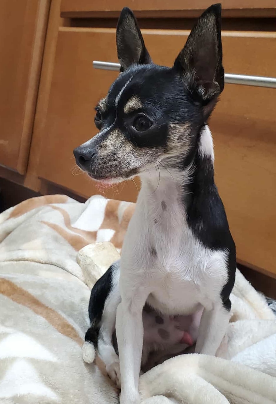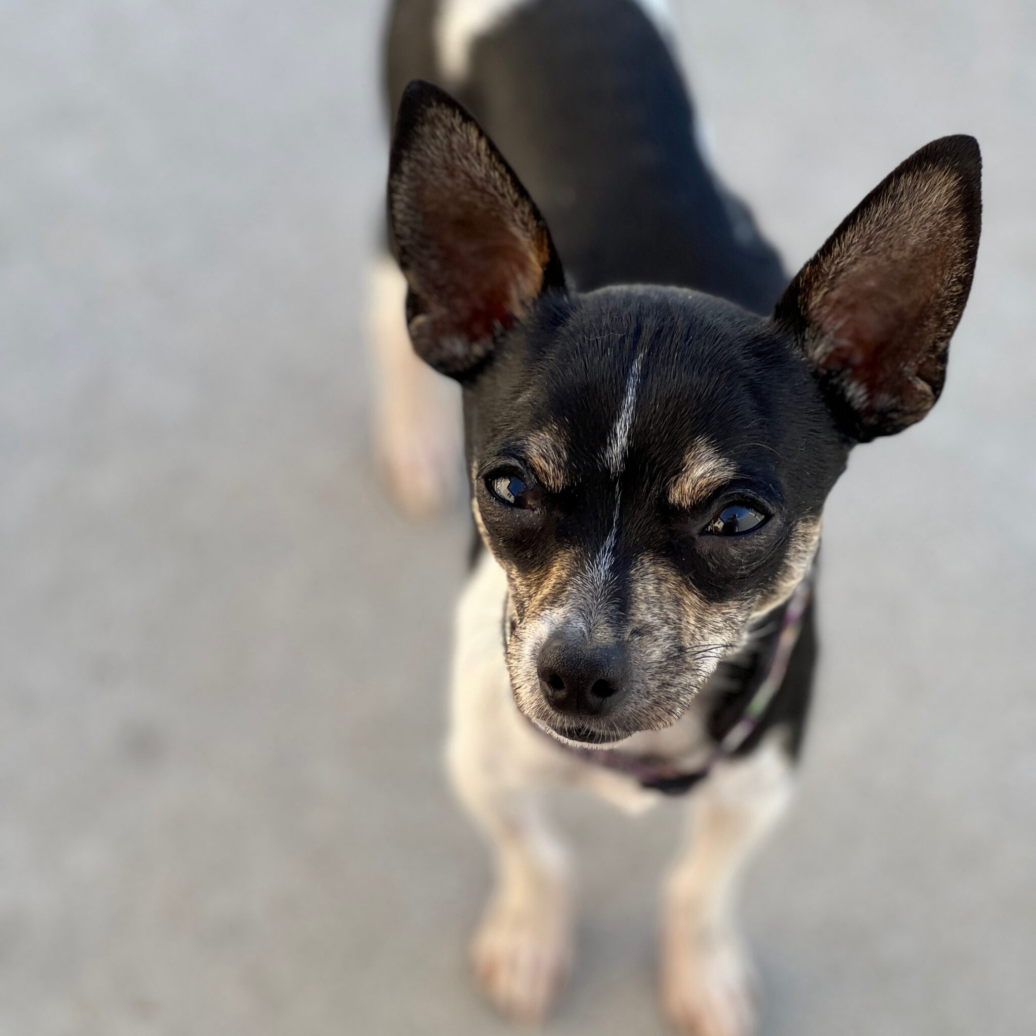 Tito the tiny teacup. Tito is a 3.6 lbs, 2 year old, Chihuahua mix. Contrary to the bad rap Chichis often get, he’s a happy, friendly little dude! Tito is great with dogs, too. He rides well in the car, walks well on leash, we really can’t think of anything bad to say…..except sometimes he marks things but he’s tiny so it’s ok. Tito will do well in a variety of homes. Due to his tiny size, we prefer a home without young kiddos — for his own safety. Tito came to MHCR pretty underweight, he should be around 4 lbs once’s he’s filled in.