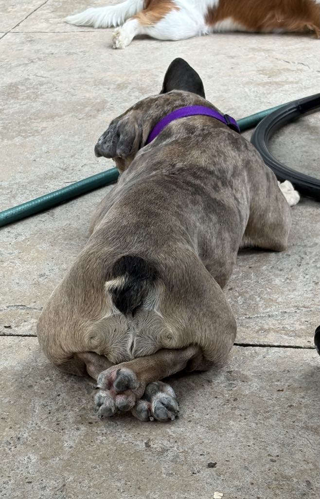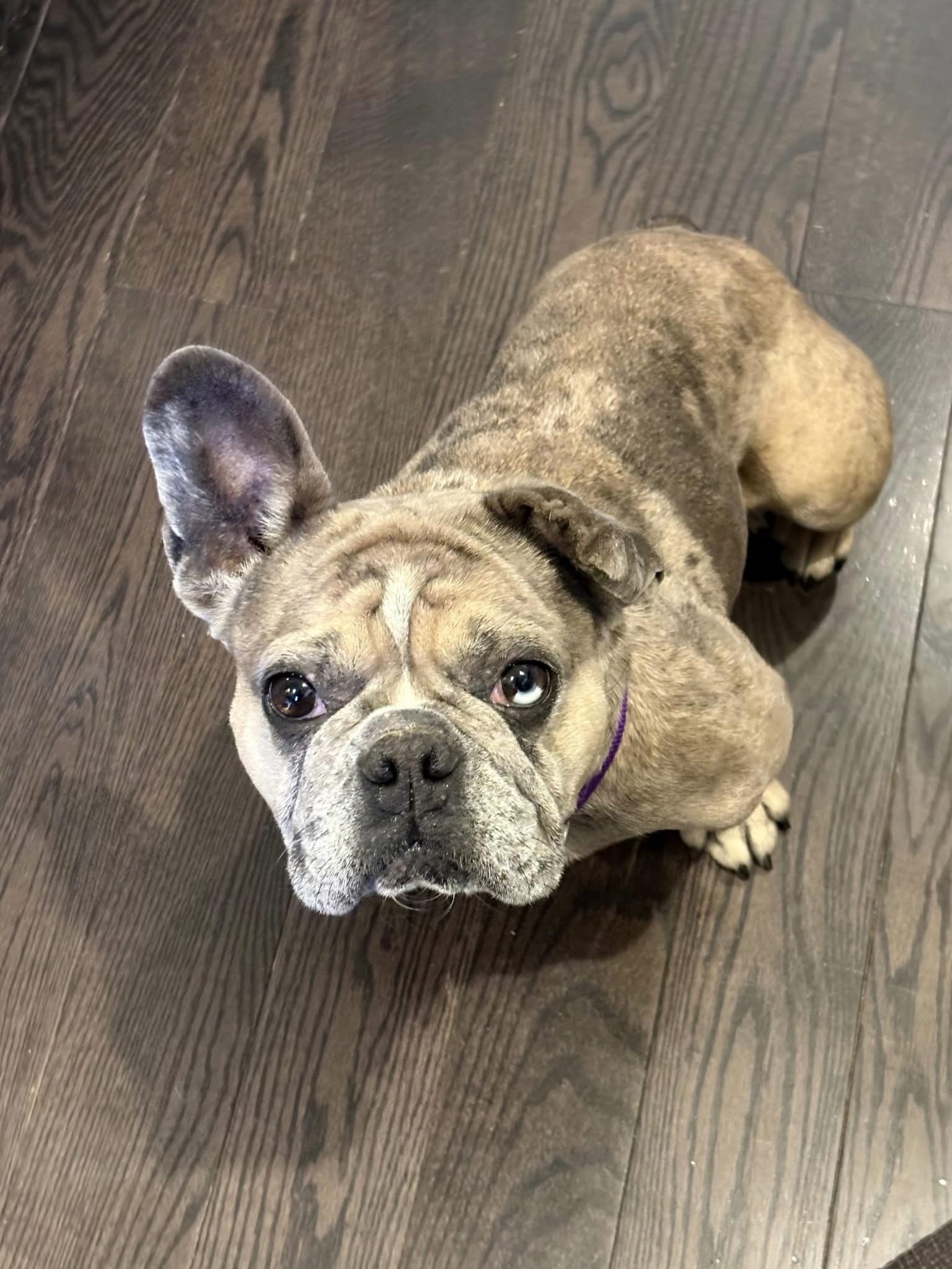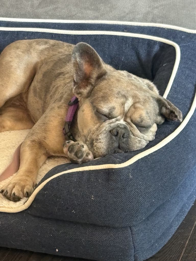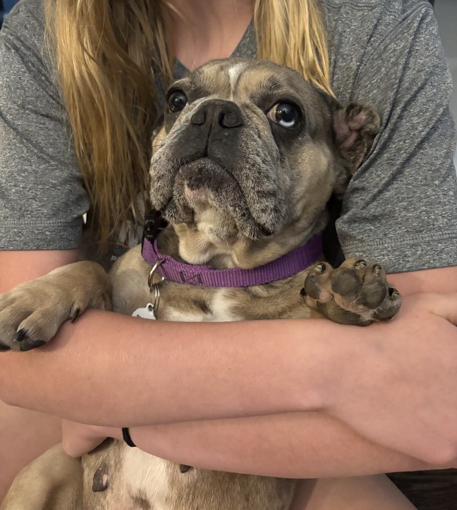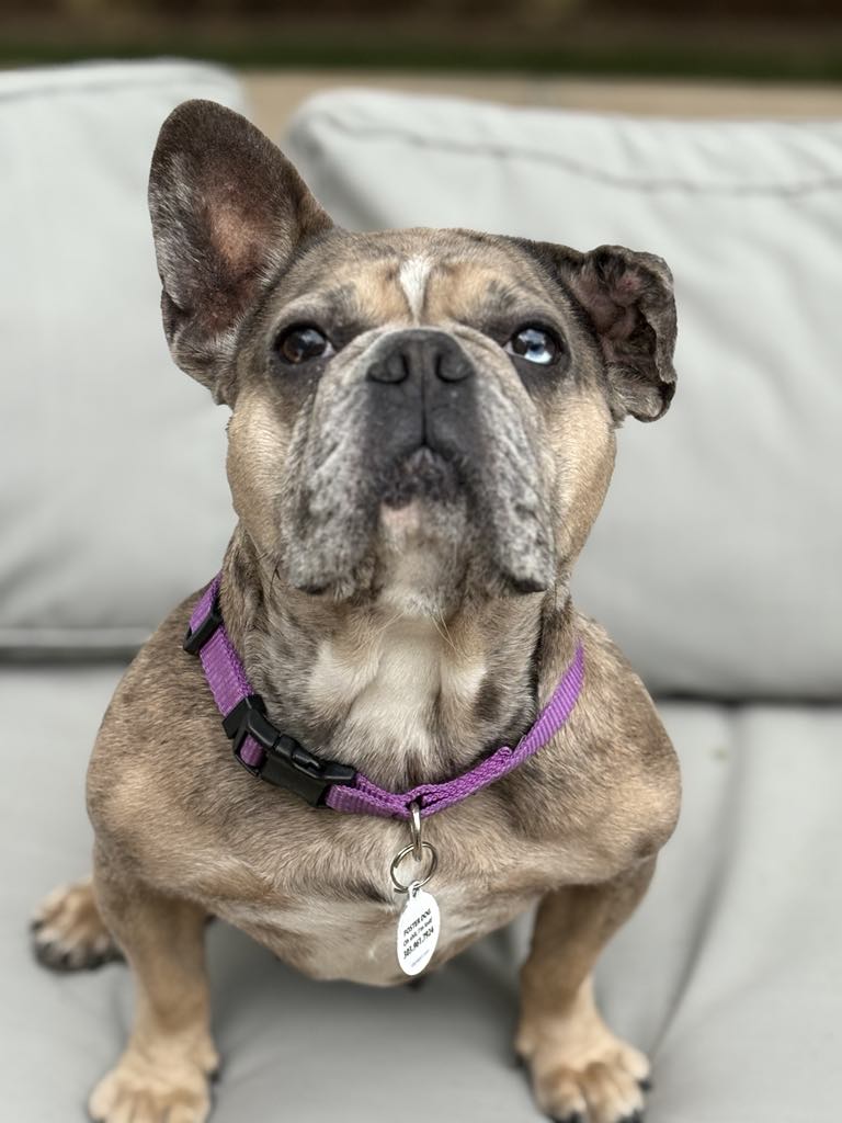 Waffles is a wonderful, 4 year old, 30 lbs Frenchie! She’s a low-energy girl content with a short walk every day or just some backyard play time. She LOVES her humans and she’s great with kiddos. Waffles also enjoys all things hoses — watering the plants is the best job ever. She crates beautifully and does very well with her house training when kept on a good schedule. Waffles would be fine in a home with another dog — as long as it’s not the confrontational type. However, she’d be perfectly content as the only dog, too. She’s a snuggly girl and would love couch privs in her new home. Waffles was adopted a month ago and unfortunately lost her home due to no fault of her own. She was a very valued family member and her prior adoptive mom agrees she deserves nothing but the best.