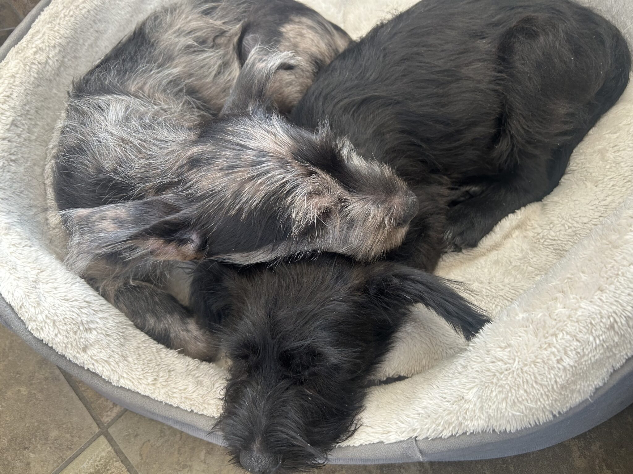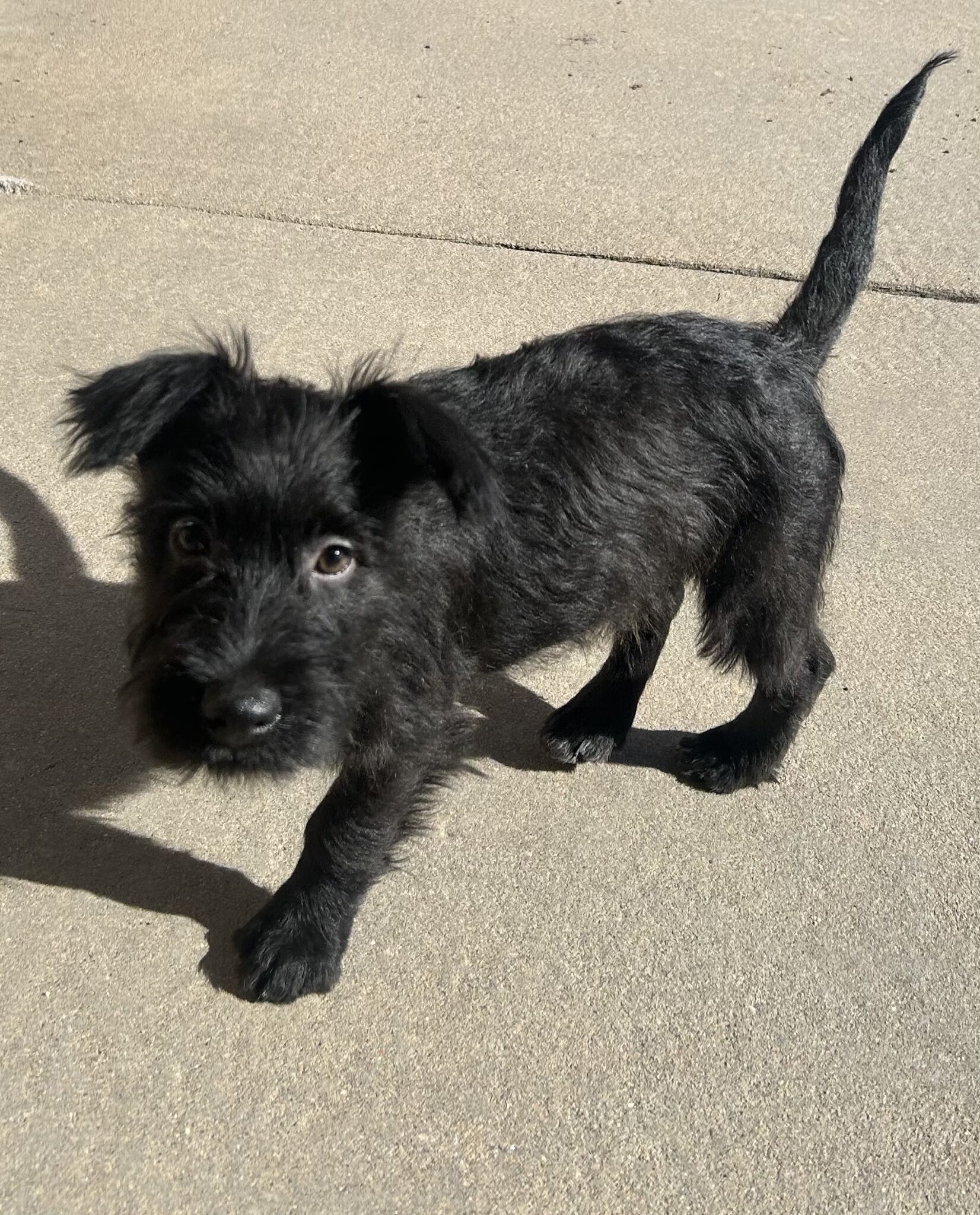 What has wonky ears, wiry fur, and is wiggly all over? Waylon! Waylon is a 3 month old, male, Schnauzer mix, with what we can’t be sure. He’s around 10 lbs already — so we suspect he will be in the 40-50 lbs range as an adult. Waylon is a happy, friendly, curious pup. He’s good with dogs and cats and has been around older kiddos. Waylon is learning all the basics of home living while in foster care and is off to a great start.