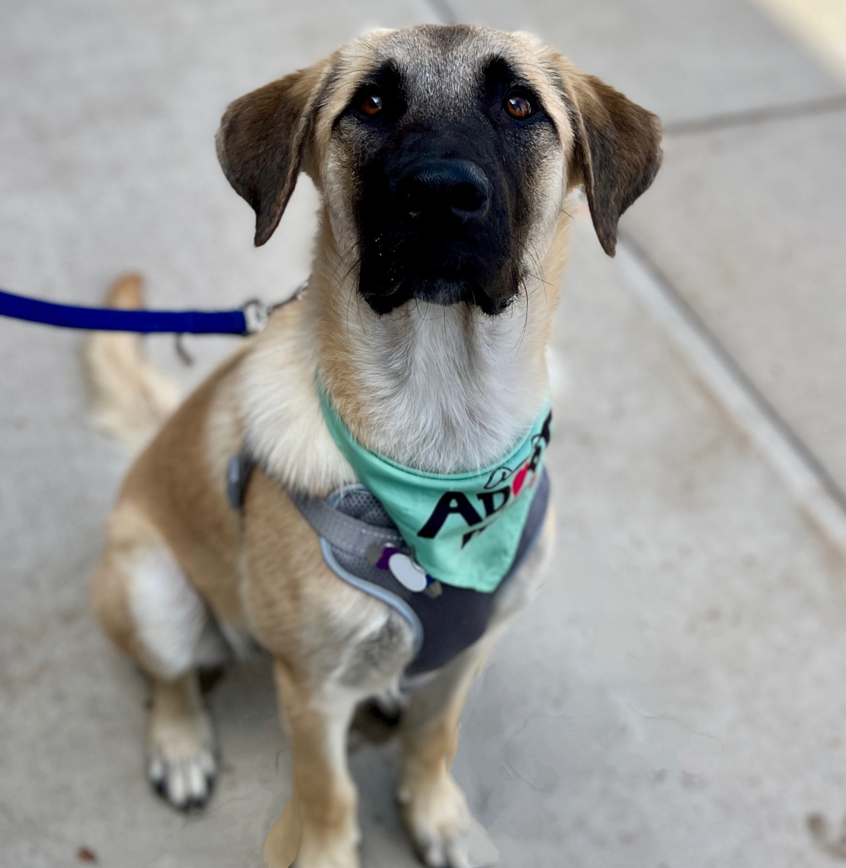 Zeki’s name means intelligent in Turkish, but right now his resume reads more class clown than honor student. At about a year old, this Anatolian Shepherd mix is proving to be a wonderful family pet! Zeki is a dog friendly boy, loves kiddos, and even does well with cats. He will thrive in a structured home with a large, fenced in yard and plenty of things to stimulate his developing brain. Zeki isn’t a big fan of crates — it’s simply not in his breed’s nature. Although he isn’t quite trust-worthy free roam, so his adoptive parents should continue to refine his crate skills. Zeki is presently around 65-70 lbs, yet likely not entirely fully grown, he shouldn’t get too much larger. Zeki walks well on a leash and greets strangers with a smile.
