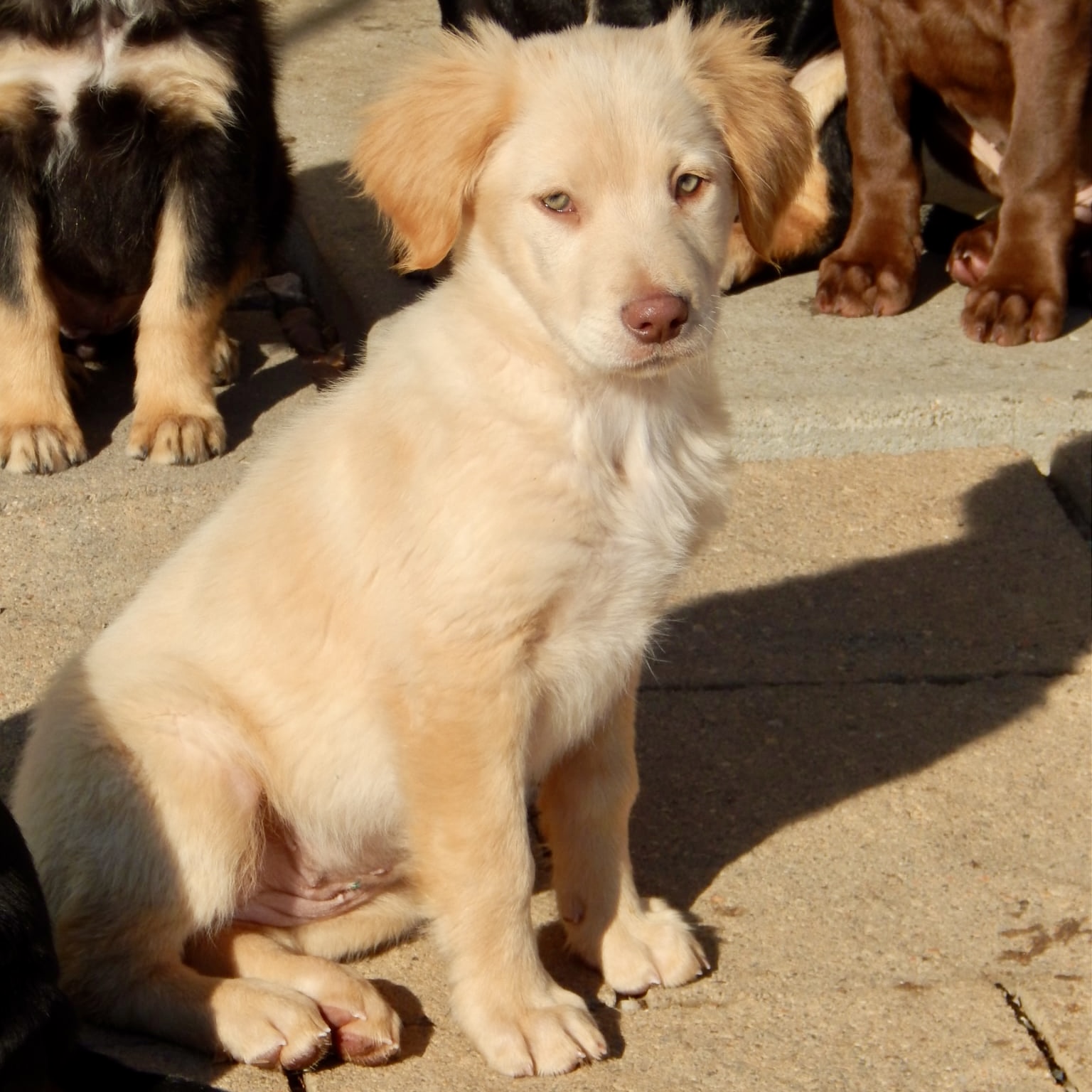 Cranberry is an adorable, strawberry blonde, girl that is around 9 weeks old. She was found with a group of adult dogs and a handful of pups on the streets of Texas. We aren’t exactly sure which pup belonged to which adult dogs, but one thing is for sure, this girl got the beauty!