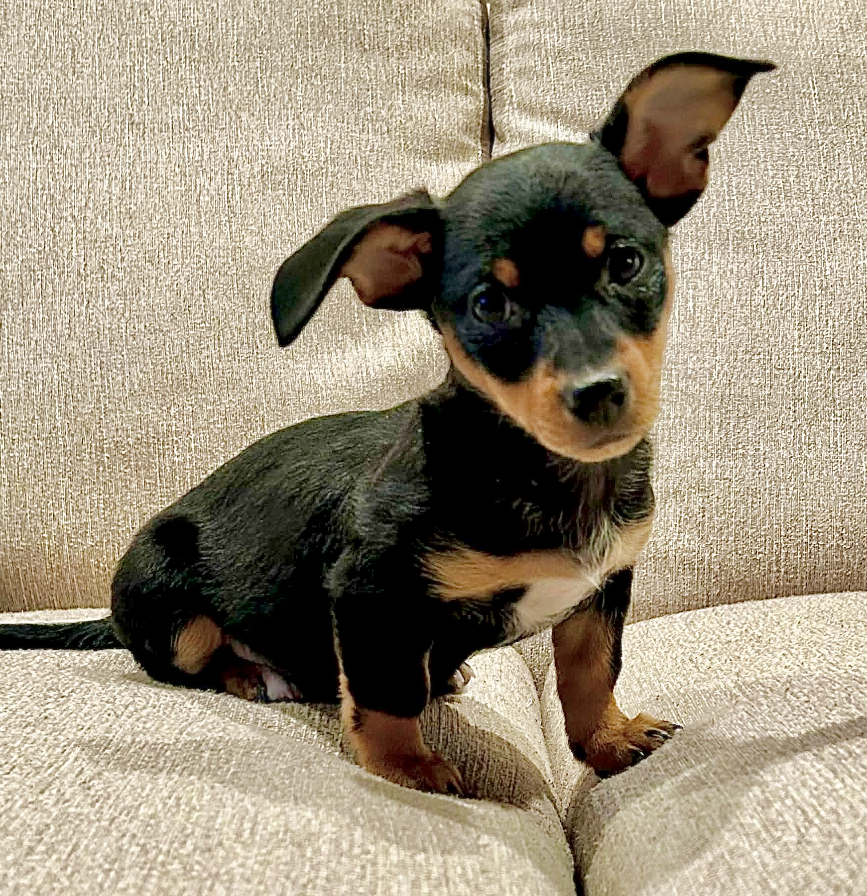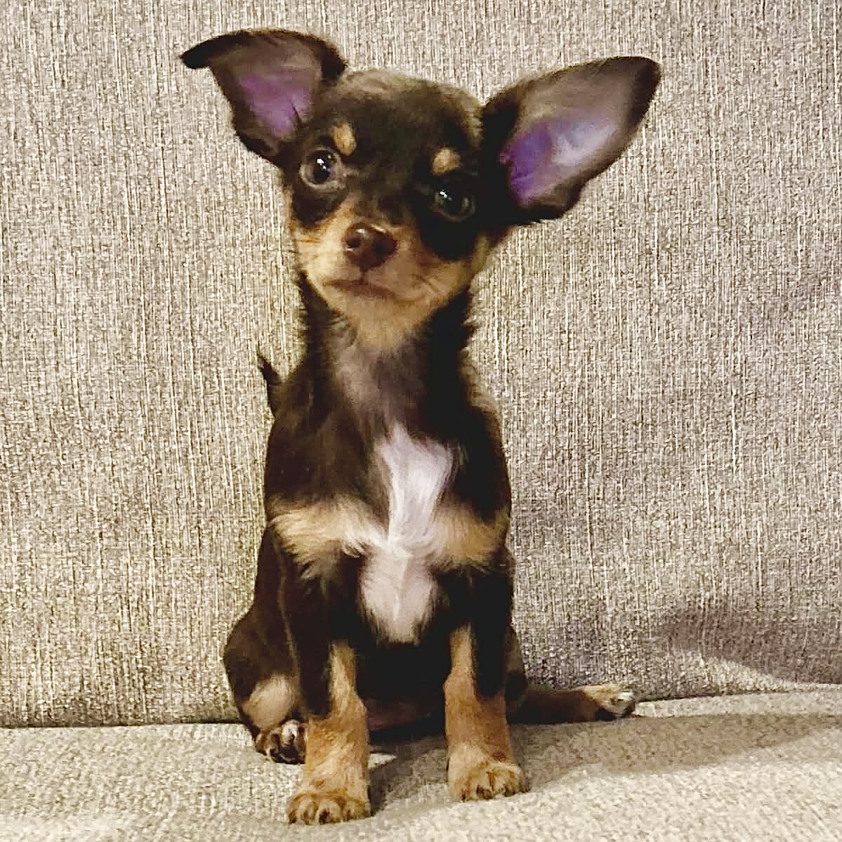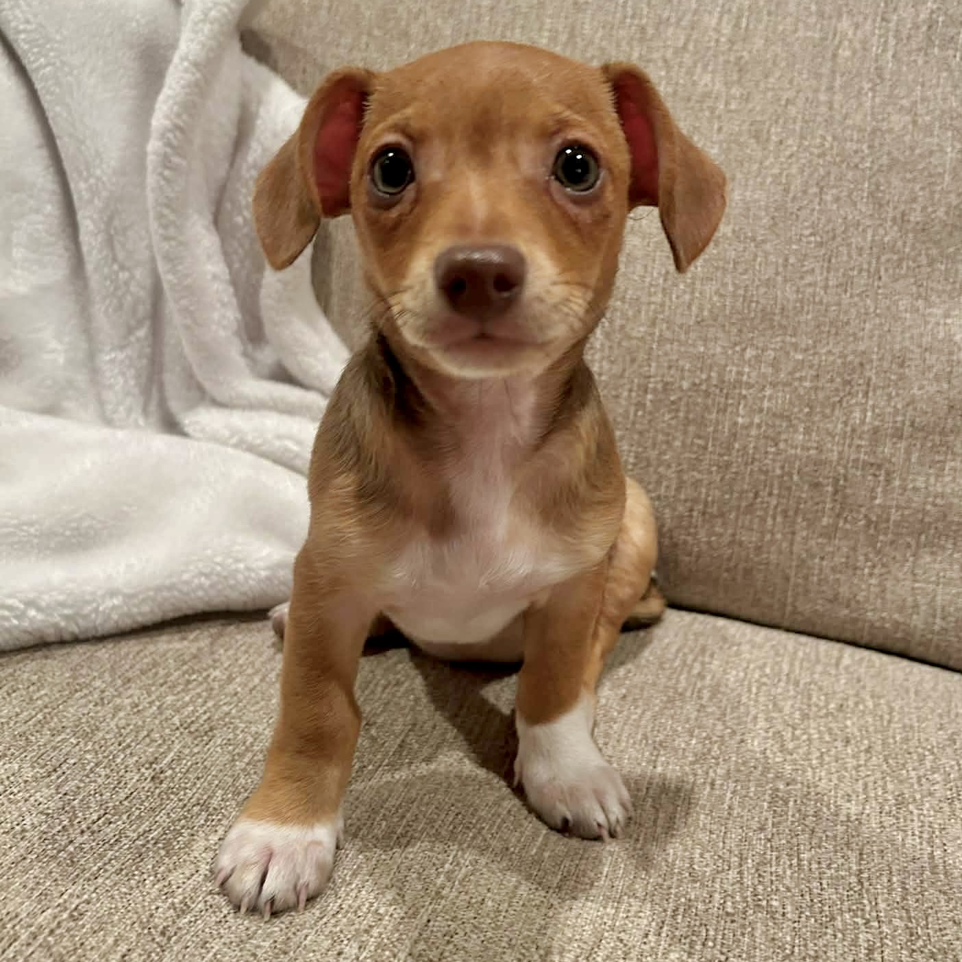 Monica is tiny but mighty! This 10 week old, 2.7 lbs, Chiweenie is an adventurous girl with a dash of independence and a pinch or playfulness. She’s sure to liven up any family!