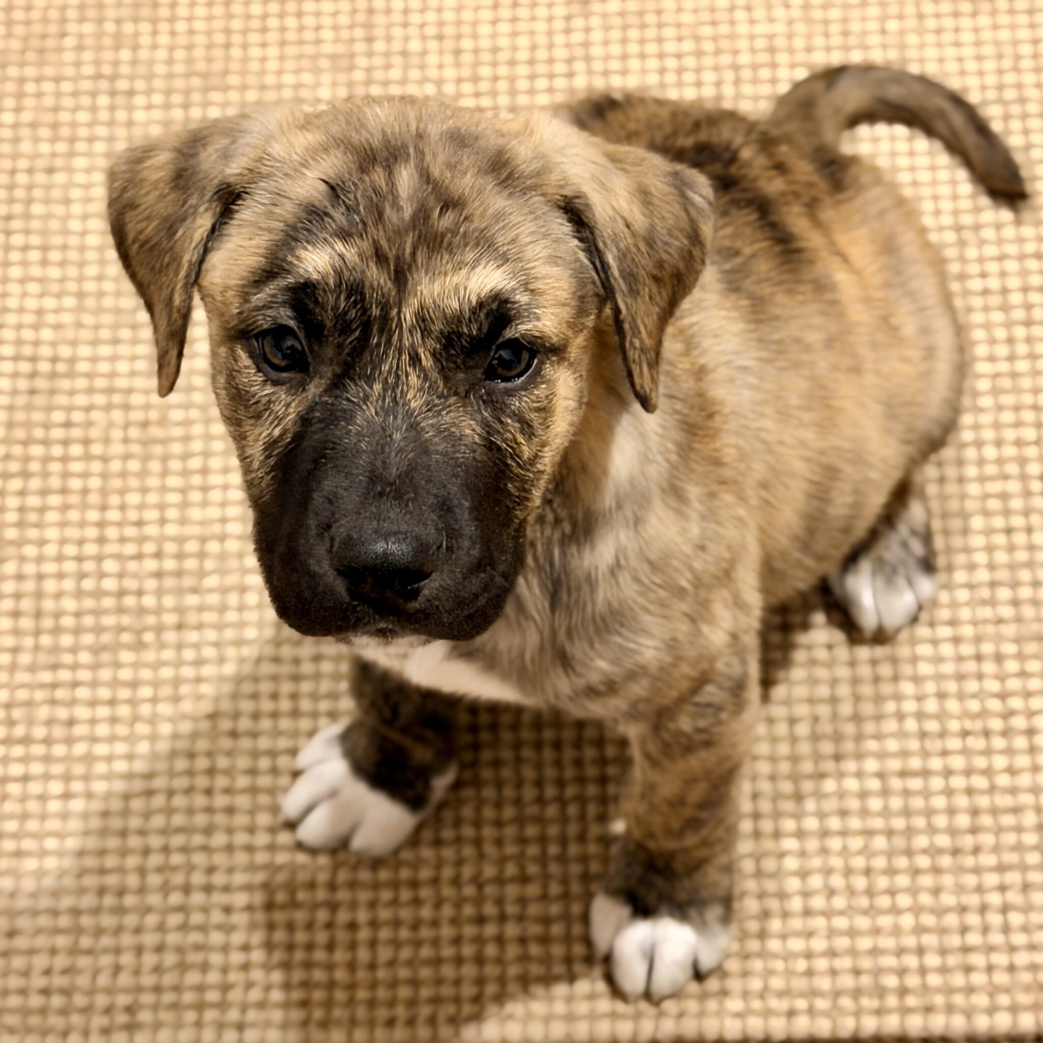 Kit Kat is a fuzzy wuzzy! This guy has a beautiful, deep brindle, kinda fluffy coat. He’s a looker and he knows it. Kit Kat is also on the smaller side of the litter. But what he lacks in size he makes up for in personality. He’s a lover with his peeps but is also […]